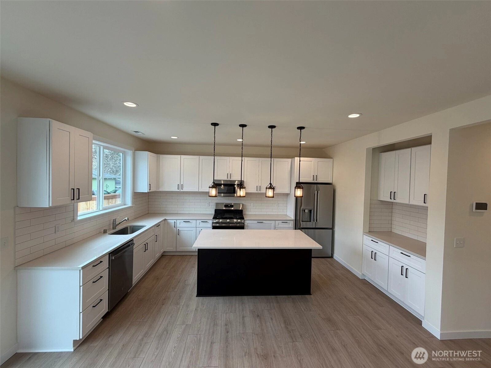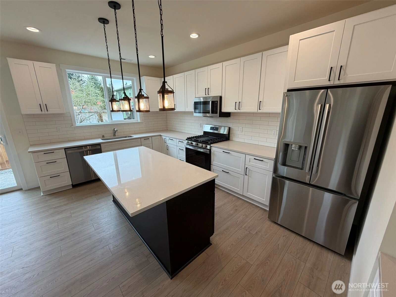 NEW CONSTRUCTION in SeaTac! Rare opportunity on a huge lot with outstanding future potential for a DADU, pool, sport court, gardens, and more. Tucked away on a quiet dead-end lane, with the street scheduled to be fully repaved—offering privacy, minimal traffic, and long-term appeal.This 2,468 SF modern home showcases thoughtful design and quality craftsmanship throughout. The covered front porch welcomes you into a cozy living room and an open-concept great room featuring a gas fireplace—perfect for everyday living and entertaining. The stylish kitchen is a standout, offering a large island, butler’s pantry, and a spacious dining area that opens directly to the patio, creating seamless indoor/outdoor living with expansive back and side yards. The main level also includes a powder room and a functional mudroom for added convenience. Elegant LVP flooring and high-end finishes are featured throughout the main living areas, providing both durability and modern style. Upstairs, enjoy a generous primary suite, four additional bedrooms, a full bath, and a dedicated laundry room—ideal for today’s flexible living needs. The home is complete with a two-car garage equipped with an EV charger, adding convenience for electric vehicle owners and future-ready living. Ideally located near Sea-Tac Airport, major freeways, restaurants, shopping, and everyday amenities, offering excellent accessibility while still feeling tucked away. Home ready for occupancy in early March.