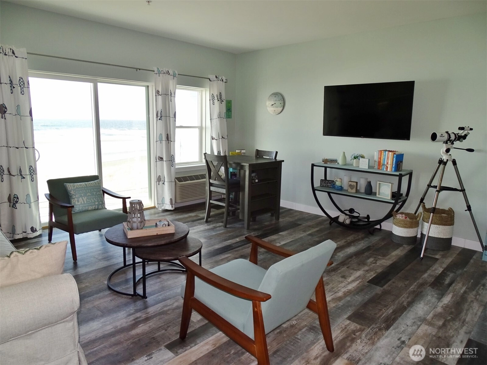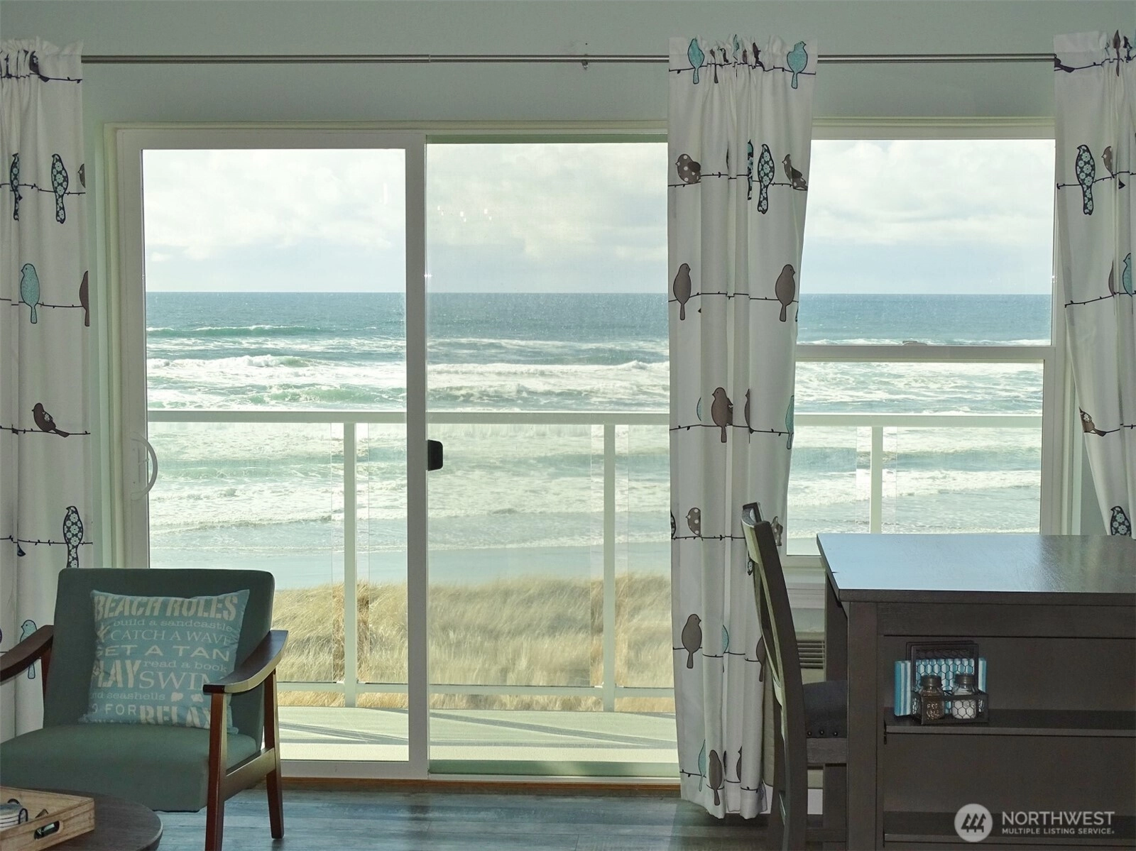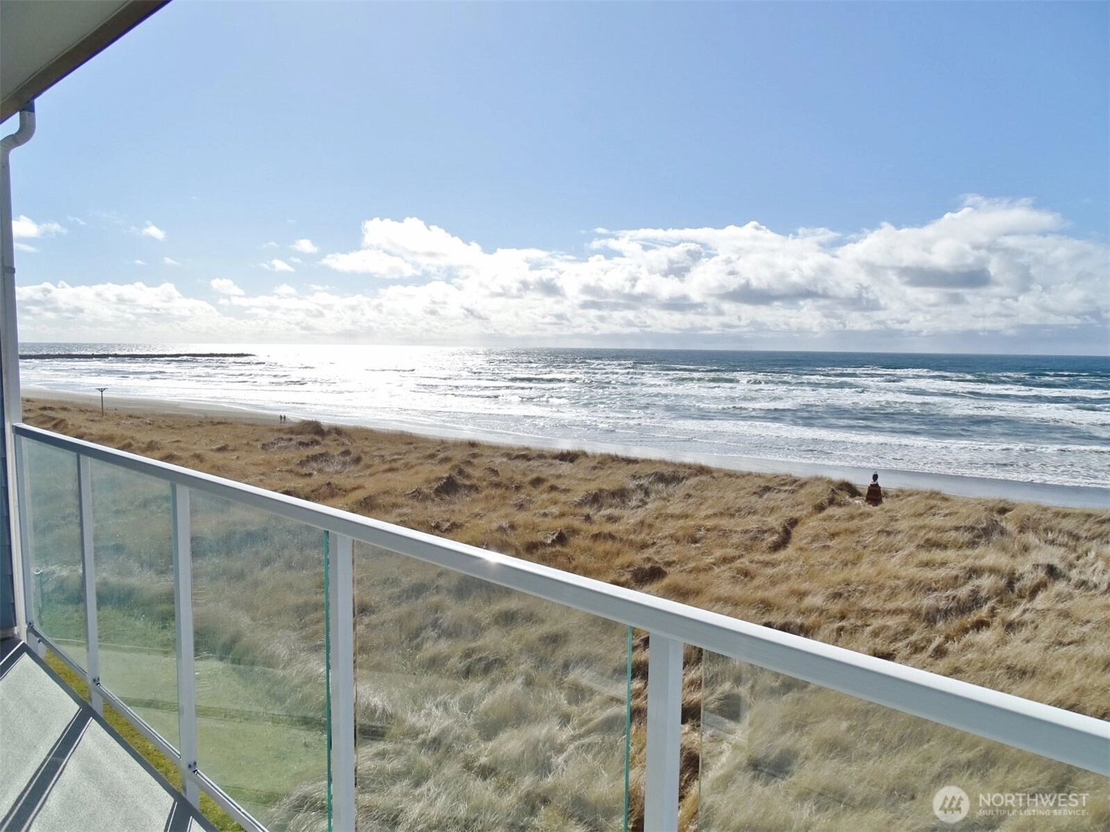 4th-Floor OCEAN VIEW/FRONT Condo ~ Beautifully and Stylishly FURNISHED and REMODELED in 2022! Watch the crashing waves of the Pacific Ocean, along with the gorgeous Sunsets and storms. Relax with the classy, beach-themed decor and furniture. All new upgraded LVP flooring thru-out (with cork underlayment). Open Great Room design with a slider to the Balcony/Deck. All new Kitchen quartz counters, Posheen cabinets, tile backsplash, Stainless Steel appliances, and a Full-length Eating Bar. Closet with a new stackable washer/dryer. Large Open Bedroom. All new Bathroom with a beautiful tiled walk-in shower. Located in the Ocean Crest South building, which features an Elevator, 2 access stairs, fire sprinklers, Enclosed Outdoor Hallways. Special Assessments are PAID. Unit #S42