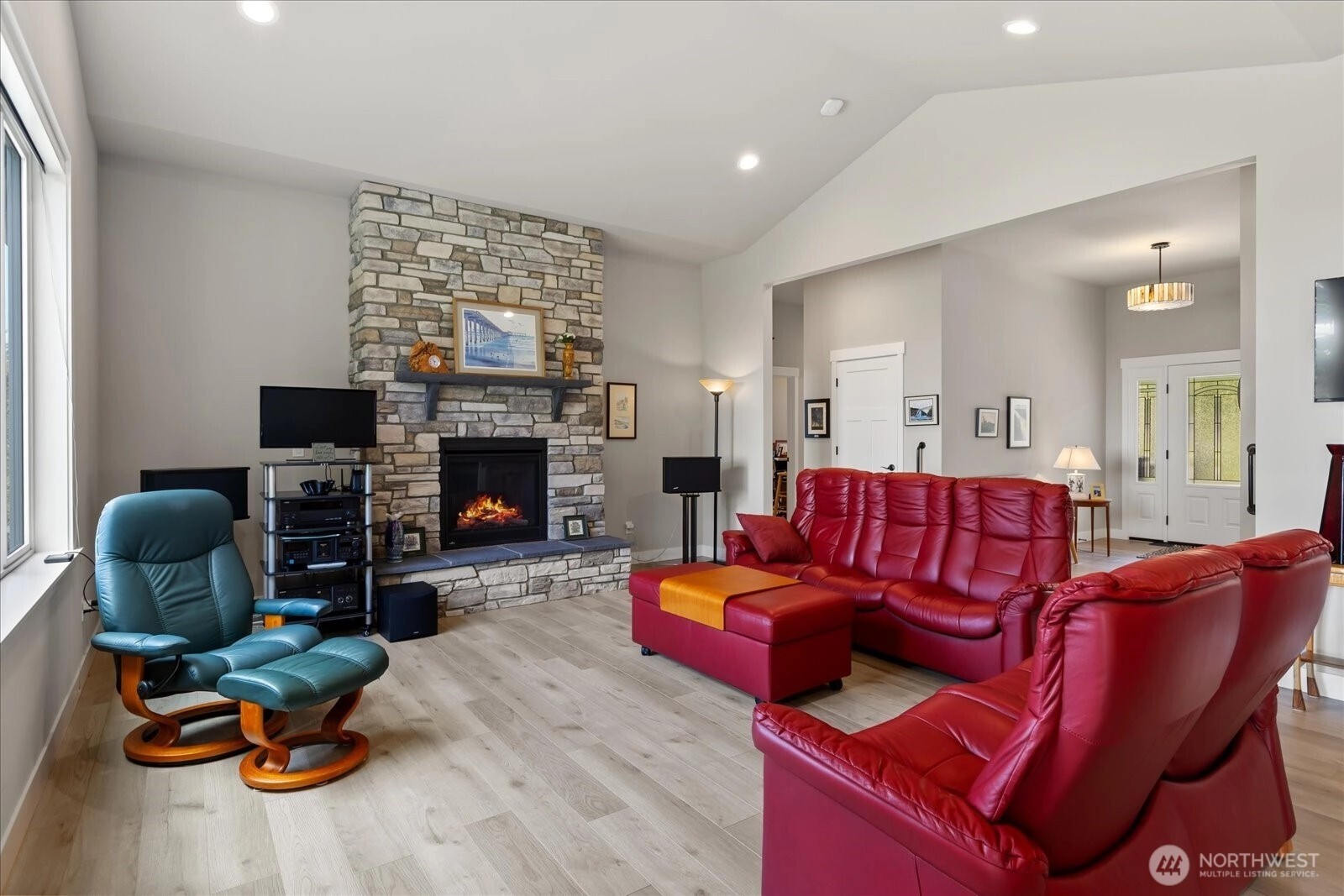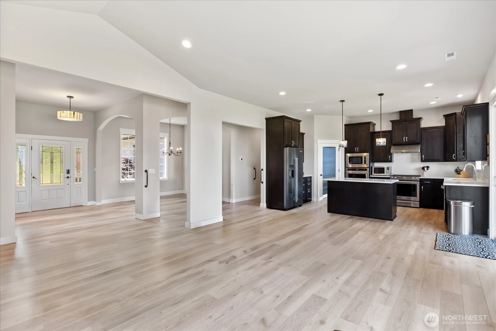 Better than brand new, this impeccably finished single-level rambler combines effortless everyday living with thoughtful upgrades inside and out. The spacious layout offers a serene primary suite with ensuite, two additional bedrooms, and an ample bonus room—ideal for media, office, or guest overflow. A true chef’s kitchen anchors the home with a large island and generous walk-in pantry, perfect for entertaining and daily meal prep.Remote-controlled window coverings run throughout the home, including blackout shades in the primary for complete privacy and restful sleep. Step outside to professionally landscaped grounds featuring a custom lookout deck and a beautifully designed paver pathway that wraps around the home, creating easy, attractive access. An accessible ramp with entry railings welcomes you at the front, while a deck off the great room adds motorized shades, railings, and a ramp to the backyard for seamless indoor-outdoor living.Car enthusiasts and hobbyists will love the oversized 3-bay garage with RV-height and standard doors, epoxy flooring, and dedicated heat and AC for year-round comfort. A whole-home Generac generator provides peace of mind, ensuring uninterrupted power and comfort no matter the weather.