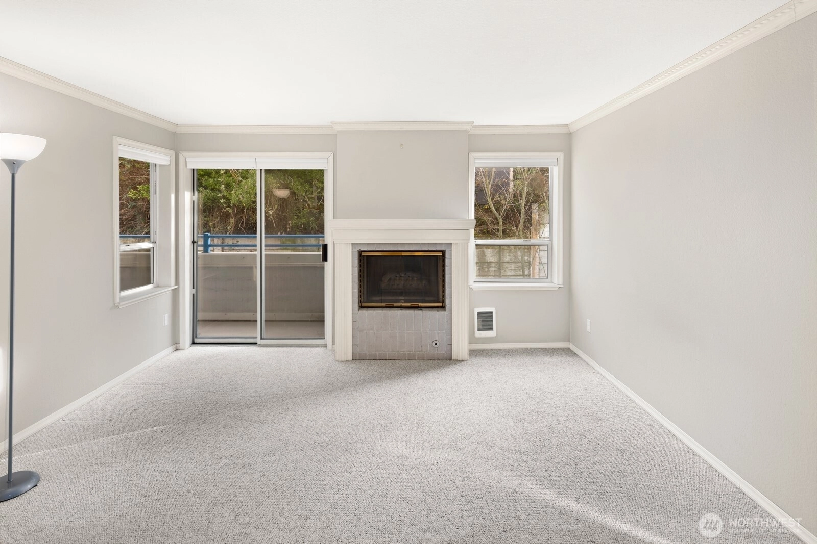 With its comfortable & functional living spaces, this top-floor unit offers numerous conveniences to include gas fireplace, unit laundry room & private deck accessed via both the living room & bedroom. Cute kitchen is open to the living area with eat-in bar & granite counter tops. The large bedroom offers a walk-in closet with walk-thru vanity and private full bath. Enjoy elevator, lobby, common-area rec & exercise room plus an assigned unit parking space in the secure garage! Great Queen Anne location close to Whole Foods, the Interbay Golf Course & Myrtle Edwards Park with easy access to Downtown, Ballard, I-5 & Lake Union!