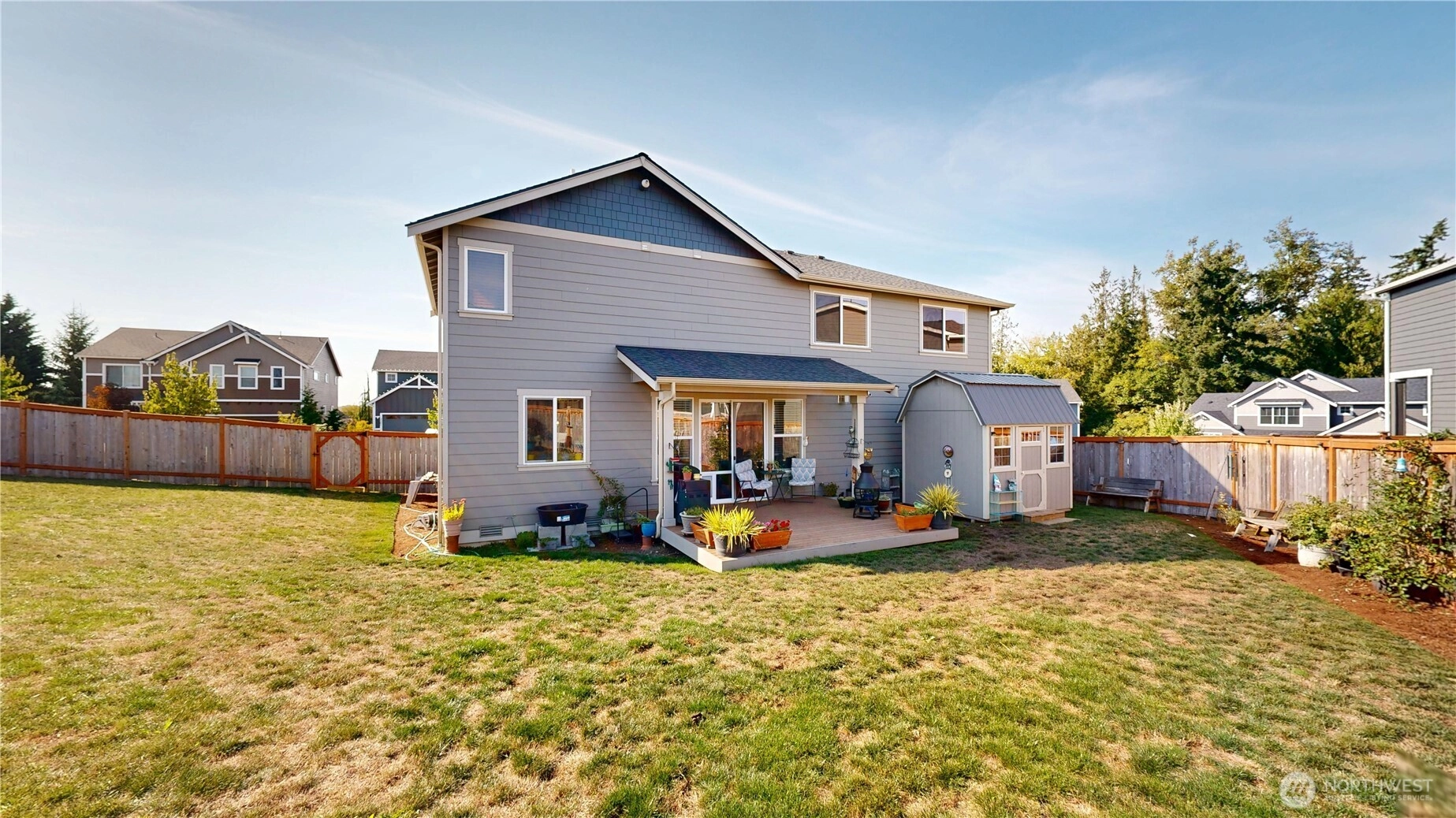 Check out this amazing like-new two-story home before it is gone! 2,061 square feet spread out through 4 bedrooms and 2.5 bathrooms. Kitchen features quartz countertops and stainless steel appliances. Durable engineered hard surfaces throughout the bottom floor with kitchen, living room, dining room, 9 foot ceilings, and a gas fireplace. Upstairs you will find freshly cleaned wall-to-wall carpets and a spacious open loft with all four bedrooms and two bathrooms. This home has an energy efficient tankless water heater and an air conditioner for the the summer time. Backyard is fully fenced featuring a composite deck with a shed for additional storage. Close to schools, shopping, and amenities this home is what you are looking for!
