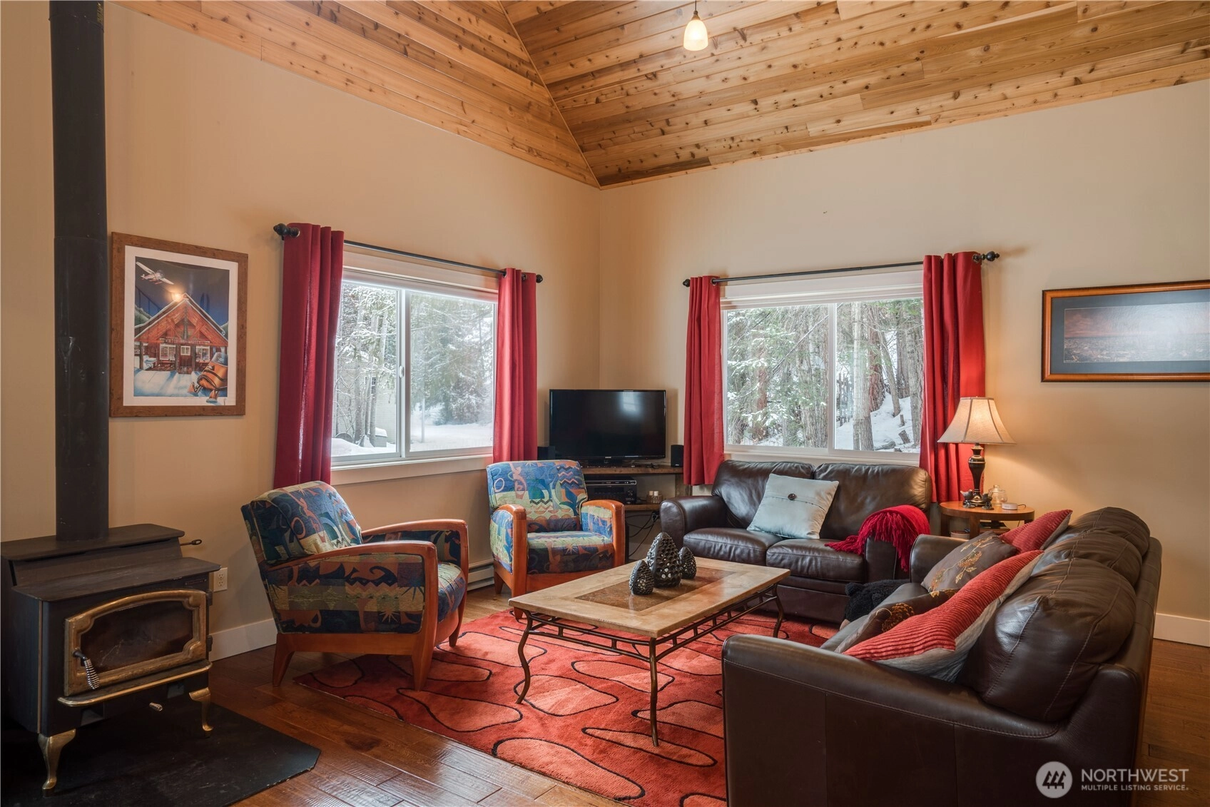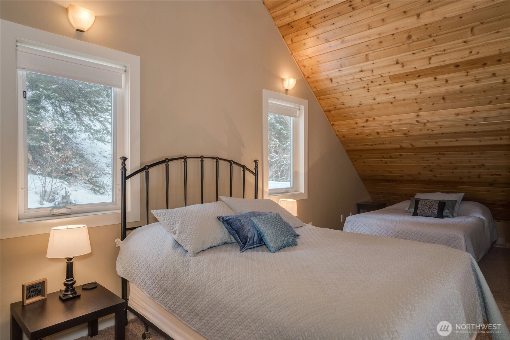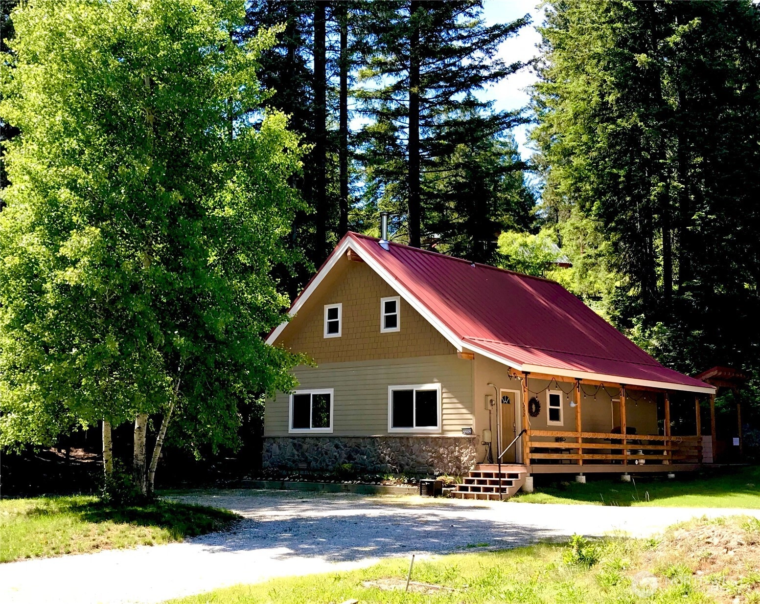Welcome to Bluebird Corner, a charming mountain cabin with a transferable short-term rental permit for up to six guests—offering exceptional flexibility for personal enjoyment and built-in income potential. Step inside to warm wood floors, expansive pine ceilings, and an open, light-filled living space anchored by a freestanding wood stove. The kitchen is well-appointed with granite countertops, double wall ovens, and a generous workspace—perfect for everyday living or entertaining. The open dining area comfortably seats eight and flows seamlessly into the living room, creating a wonderful gathering space. The main level features two comfortable bedrooms with a full bath between them. An open staircase leads to a spacious loft with a queen and a double bed, a private bath, and flexible space ideal for a home office, reading nook, or play area. Outdoor living is just as appealing, with a covered, private hot tub and a generous yard for relaxing, playing, or gardening. Adding to the property’s versatility is a detached garage with bonus space and an adorable bunkroom—perfect for overflow guests, hobbies, or a private retreat. Year-round recreation is right at your doorstep, with access to nearby trails and snowmobiling from the driveway. Both Bavarian Leavenworth and Stevens Pass are a scenic 30-minute drive, and the charming town of Plain is only minutes away. Make this your idyllic mountain retreat with rental income to boot!