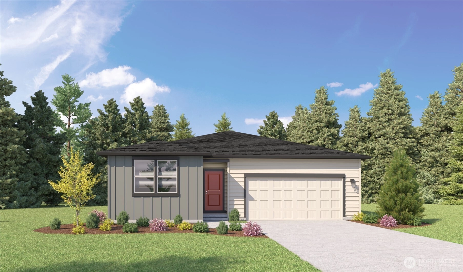 Looking for a peaceful, tranquil, and relaxing place to call home with a Pacific Northwest backdrop of mountains & trees? Look no further than the beautiful new community in Buckley called Blueberry Farm by D.R. Horton. The Kerry plan is our popular rambler design. This homesite offers a gorgeous backdrop with sunsets off your great room windows every evening. Everything you need on one floor with an open concept design, 3 big bedrooms, & modern finishes throughout. Landscaping, fencing, A/C, EV car charging & smart home features all included. Ask about preferred lender incentives and below market interest rates for qualified buyers! Enjoy a stroll through the manicured sidewalks of the community or the on-site nature trail with a groomed trail over a creek and into foothills with views. Minutes from downtown Buckley shopping, public parks, as well as the Foothills Trail. Buyers must register their broker on-site at their first visit, including open houses.