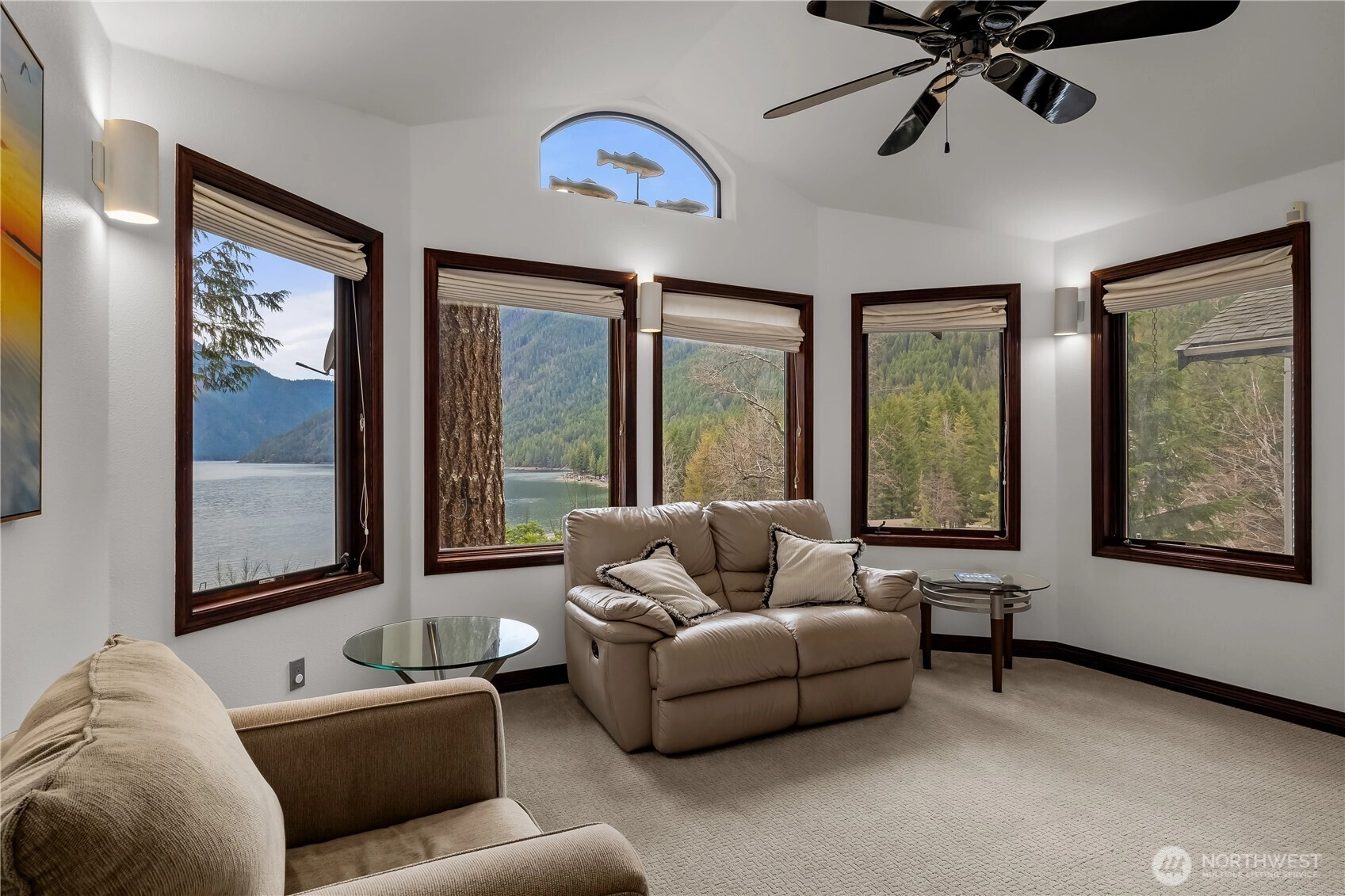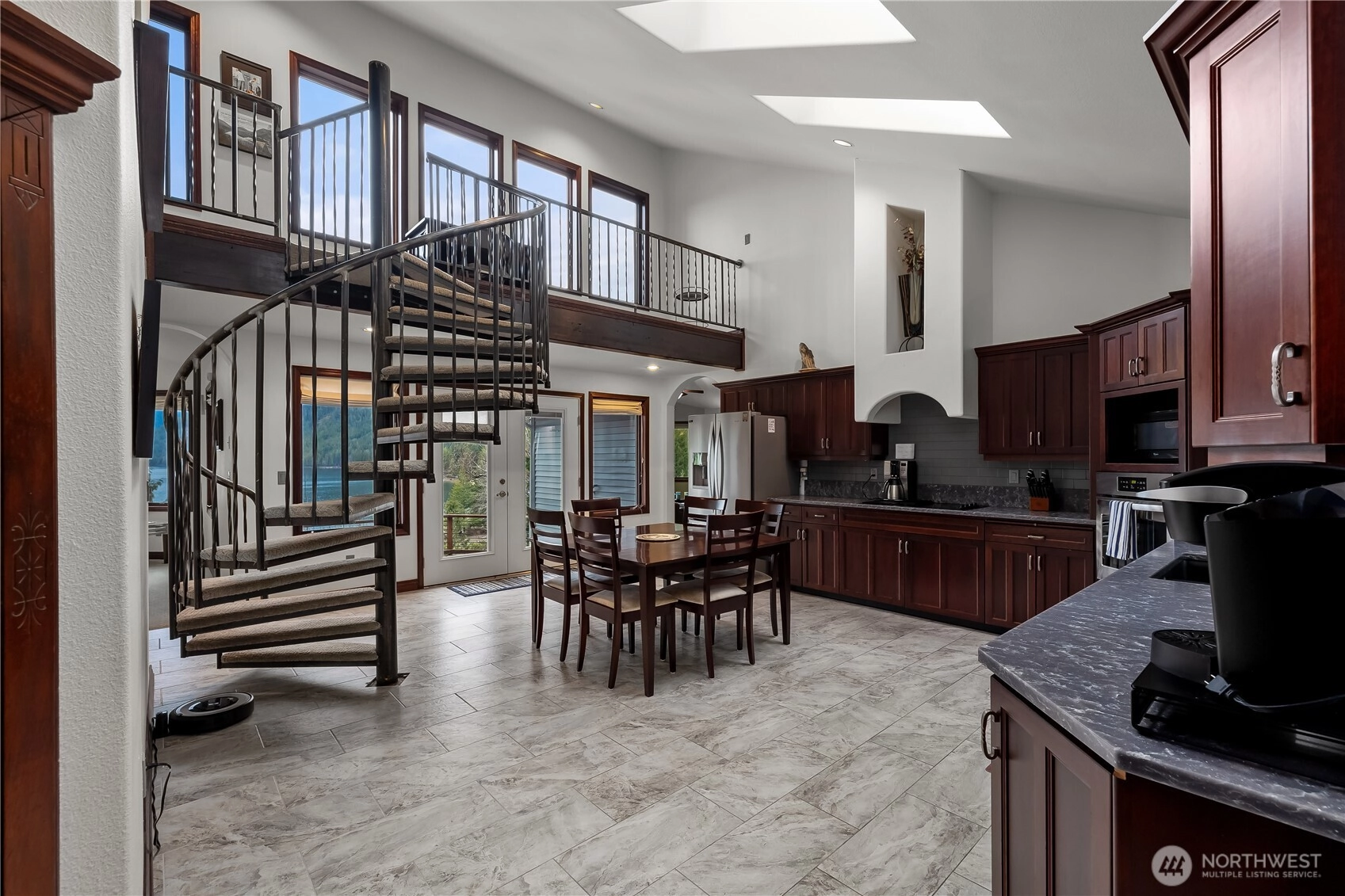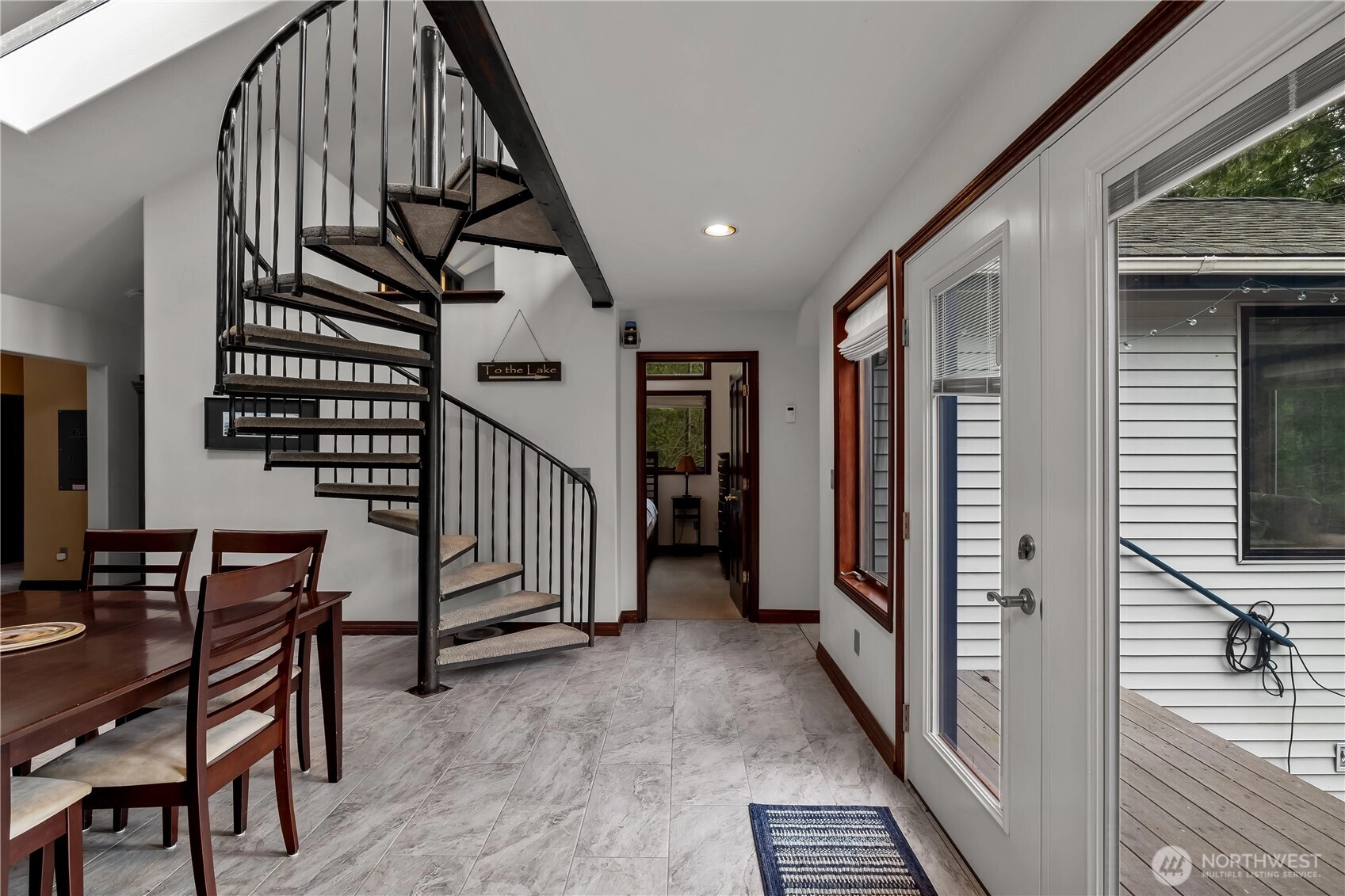 Stunning waterfront 2BD/1.5BA home on Lake Cushman with spectacular views! A stairway leads to a private deck and new dock for easy lake access. Features include a newly remodeled kitchen, gas fireplace, radiant heated floors, recessed lighting, skylights, and a large lake-facing deck. A spiral staircase leads to a view bridge—ideal for an office or flex space. Brand-new professionally installed retaining wall (approx. $200,000 investment) adds long-term stability and peace of mind. Sold fully furnished and currently operating as a successful Airbnb. Close to hiking trails with easy access to Staircase, Mt. Ellinor, Mt. Rose, and Big Creek Campground.