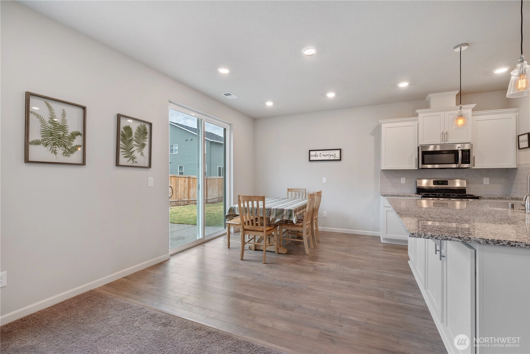 This beautiful home, built in 2022, offers over 2,300 square feet of thoughtfully designed living space with privacy out front overlooking the Mount Solo walking trail. The main level features nine-foot ceilings, a wide and welcoming entry, a den/office, and an open layout ideal for everyday living and entertaining. The kitchen includes white cabinetry paired with granite countertops and flows into the main living area with a gas fireplace. Upstairs you’ll find a spacious bonus room and a generous primary suite with French doors, a large primary bathroom, and an oversized walk-in closet. Additional highlights include a large backyard with patio, foxwood blinds throughout, forced-air heat pump, Honeywell smart thermostat, Wi-Fi-guaranteed technology, Ring doorbell, Ring alarm system, and Flow by Moen leak detection. The community features **Altrusa Park** with a basketball court and walking trails throughout. Conveniently located approximately 6 miles to medical facilities, 3.5 miles to grocery stores, and 3.8 miles to Willow Grove Park and boat launch, offering access to popular fishing and outdoor recreation.