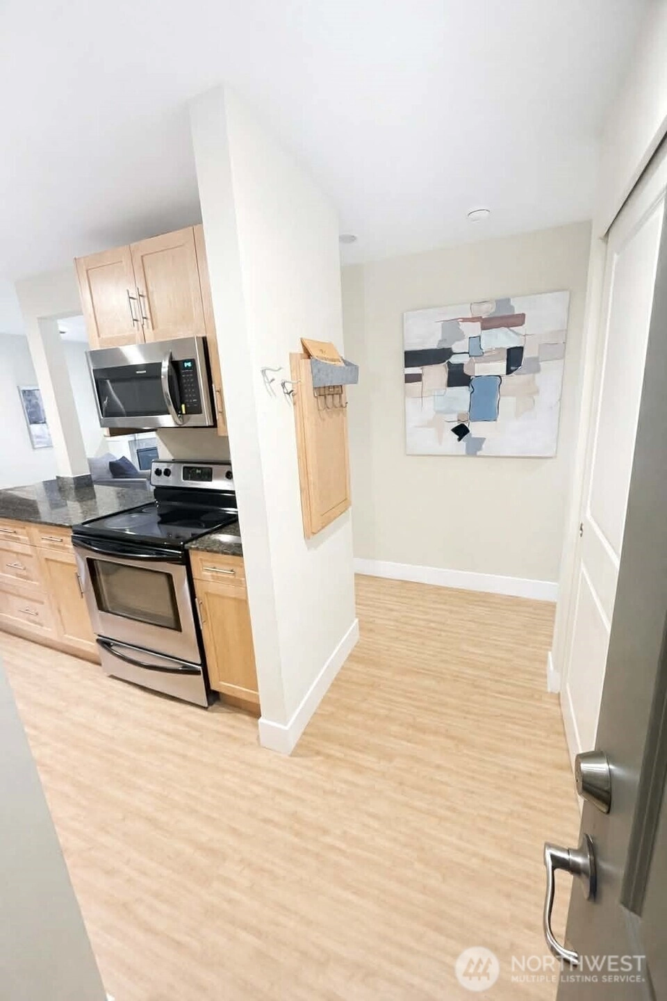 Wonderful opportunity to live in the coveted community at Axis Condominiums, only minutes to the new Link Light Rail with easy access to I-5, 405, and I-90. Well maintained clubhouse and swimming pool for summer enjoyment. Ground level, gated entry onto second floor. Open concept living includes a spacious kitchen with granite counters and eating space. Living room leads to covered balcony with room for patio furniture and barbeque. Bedroom is inviting with large window for natural light and generous closet. Washer and dryer are well appointed in the hallway closet. Full bathroom with tile floor and shower. Dedicated storage unit in main of building. Close to bountiful shopping and large selection of restaurants. Professionally cleaned and ready to move in.