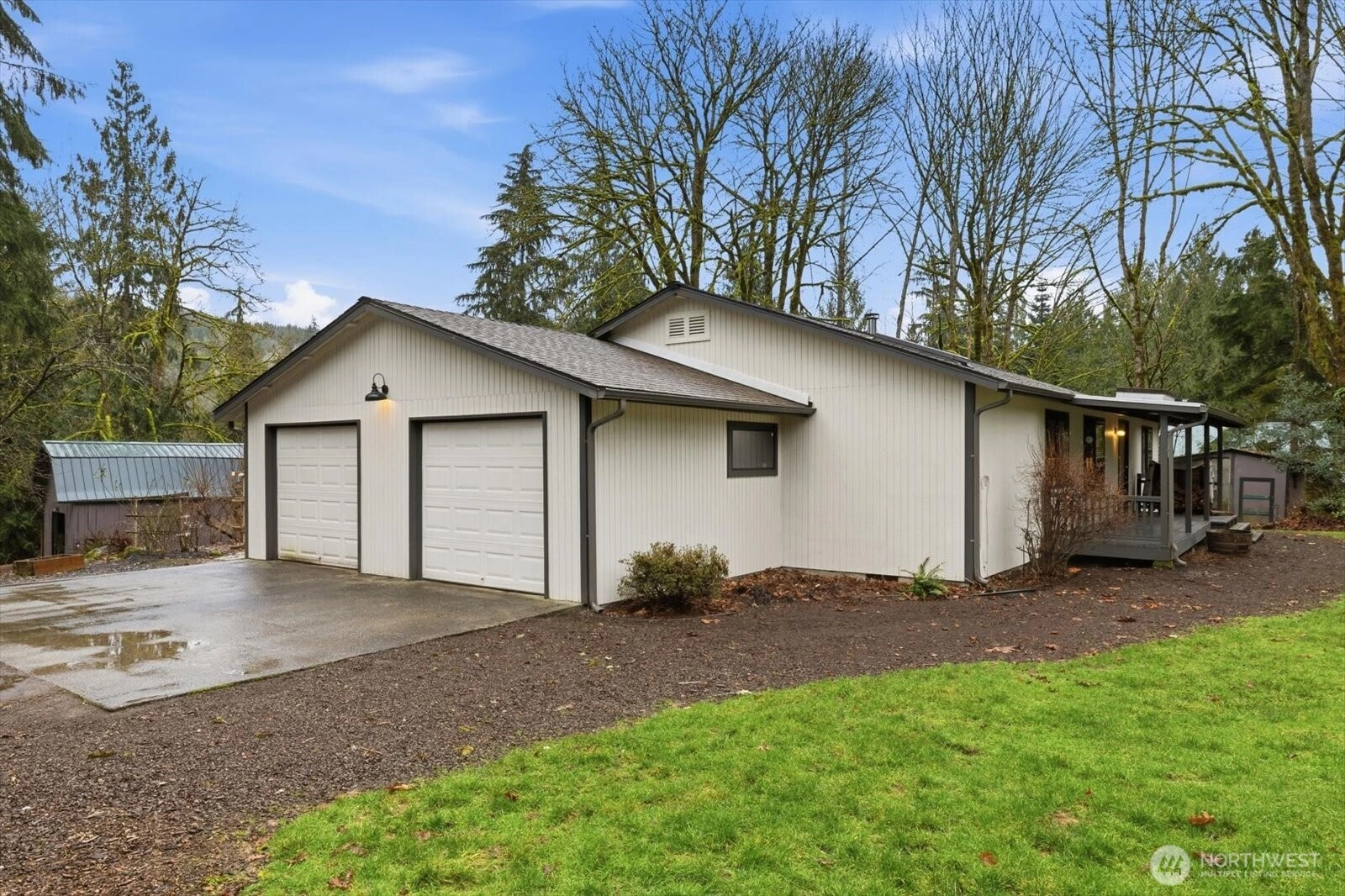 An exceptional opportunity for those seeking a self-sustaining lifestyle, this well-established hobby farm is thoughtfully set up and ready to use from day one. Ideal for goats or horses, the property includes multiple paddocks with cross-fenced pastures, fully fenced grassy fields, lean-to shelters, and dedicated hay & dry log storage—designed for year-round usability with no mud or mess. With approximately 2 acres of grazing space and Marckworth Forest just minutes away, trail riding & outdoor exploration are always within reach. The main home offers an open floor plan filled w/natural light from multiple skylights, complemented by new bamboo flooring, updated lighting, fresh interior & exterior paint. new hot/cold PEX water lines throughout. Stay cozy year-round w/a wood stove & newer electric heaters w/thermostats. The land is rich with raised garden beds, apple, Asian pear, Bartlett pear, tart cherry, grafted plum trees, blueberries, strawberries, lavender, hydrangeas, asparagus, and more—perfect for fresh harvests & preserving. Additional features include a chicken coop, dog run, greenhouse, multiple sheds, a large shop adaptable for horse stalls, a detached dwelling unit ideal for office or studio use, and a larger secondary dwelling perfect for glamping or recreation. Enjoy peaceful country living w/wide-open spaces, while the charm, dining & culture of Duvall & Carnation are just mins away. Storage galore for vehicles, RVs, boats & trailers—this property has it all.