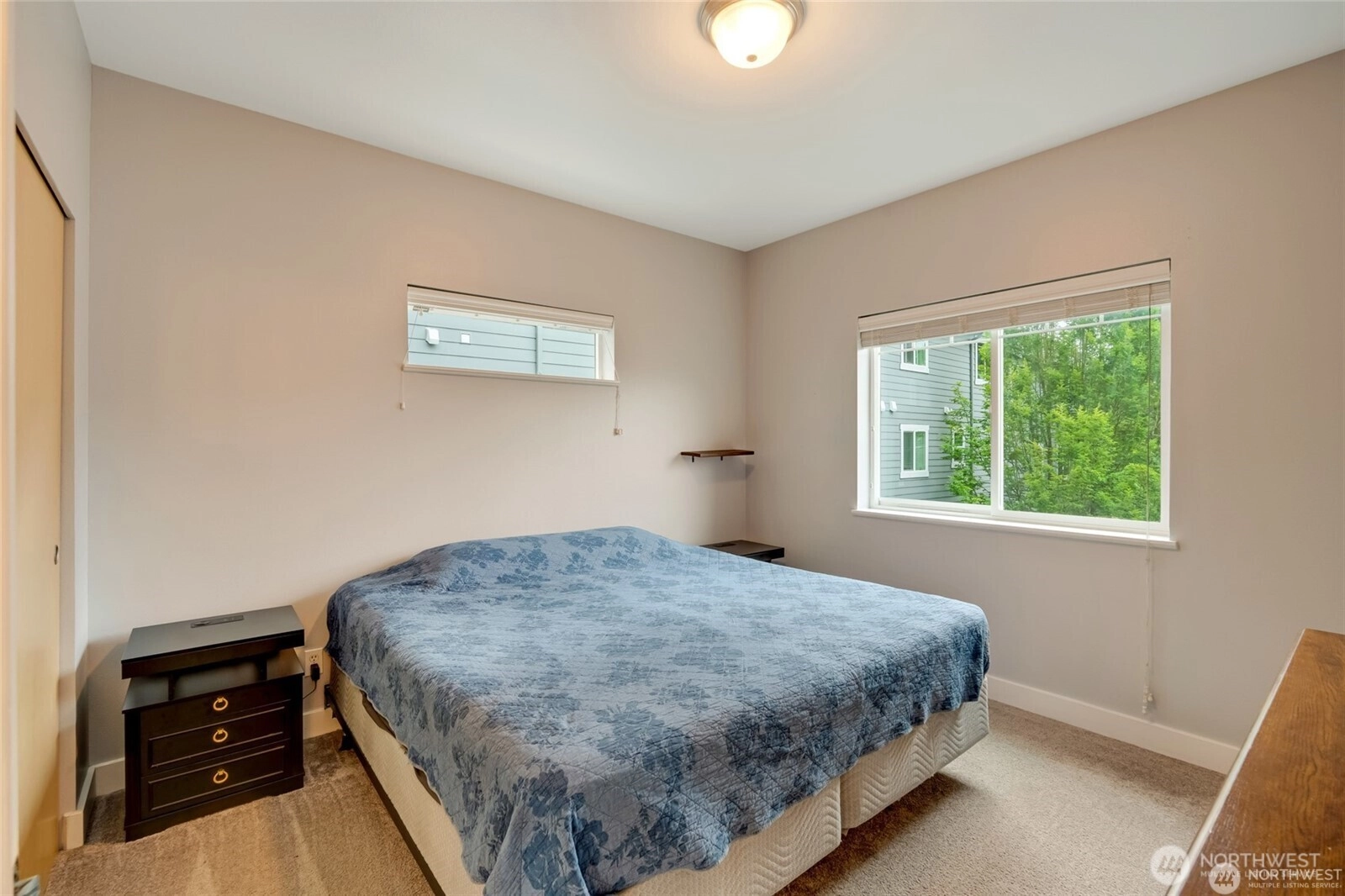 Move in ready top-floor 2BR/2BA end unit at Hidden Greens with scenic golf course views. Vaulted ceilings, bright natural light, and a private balcony create an inviting living space. Open-concept layout features granite counters, a double vanity in the spacious primary suite, and in-unit washer and dryer. Recent updates include luxury vinyl flooring, new trim, doors, appliances, and a new water heater. Covered parking included. Pet-friendly community with convenient access to major commuting routes, public transit, I-5, and Boeing. A top-floor unit offering comfort, functionality, and convenience. Pet Friendly. HOA covers water, sewer & garbage. FHA & VA eligible through lender approval.