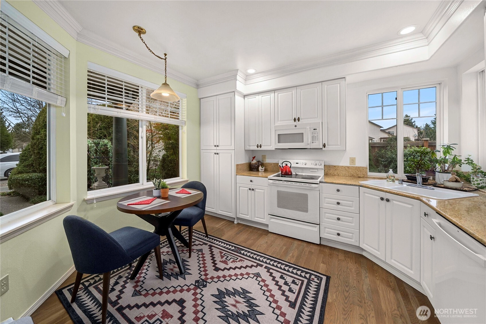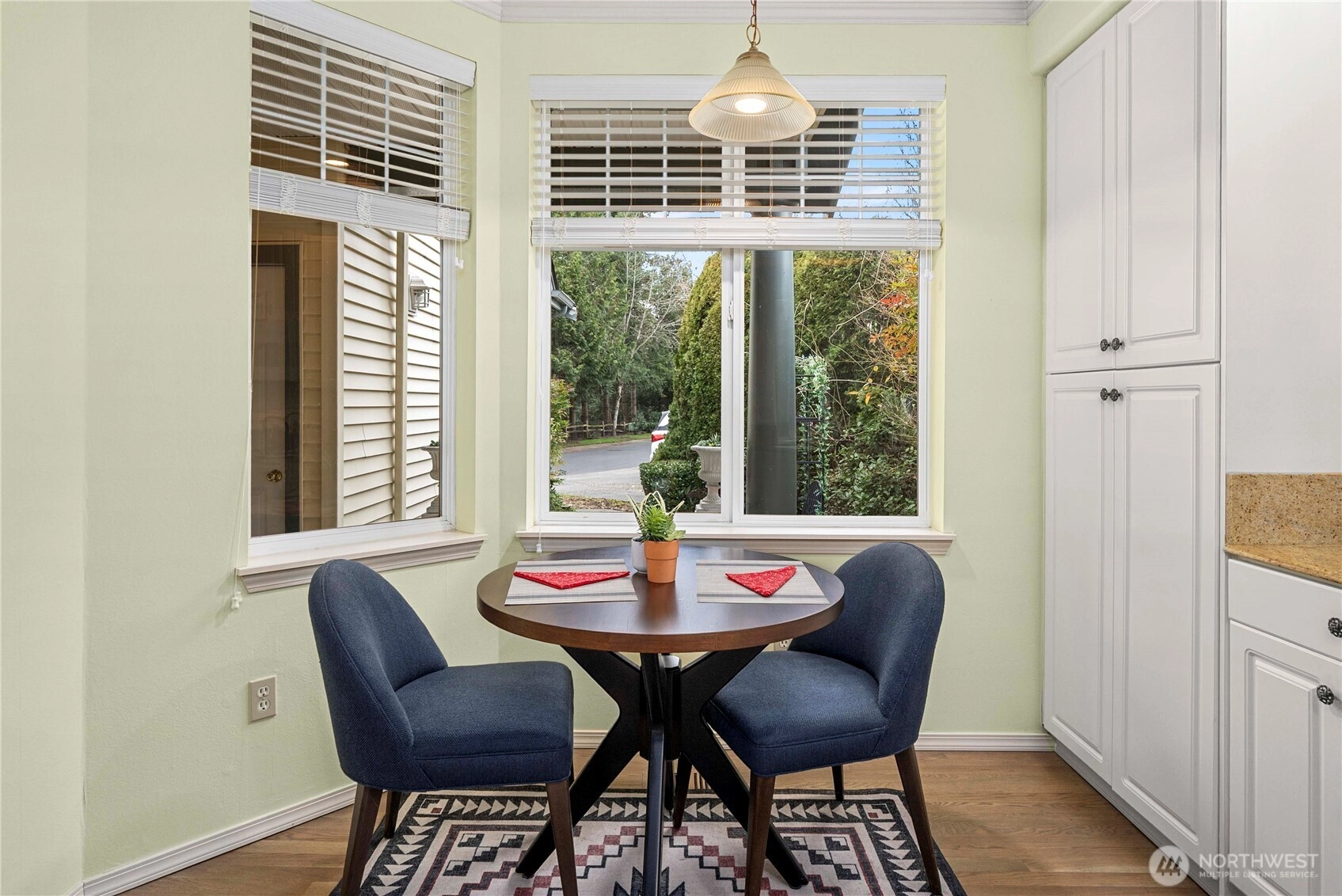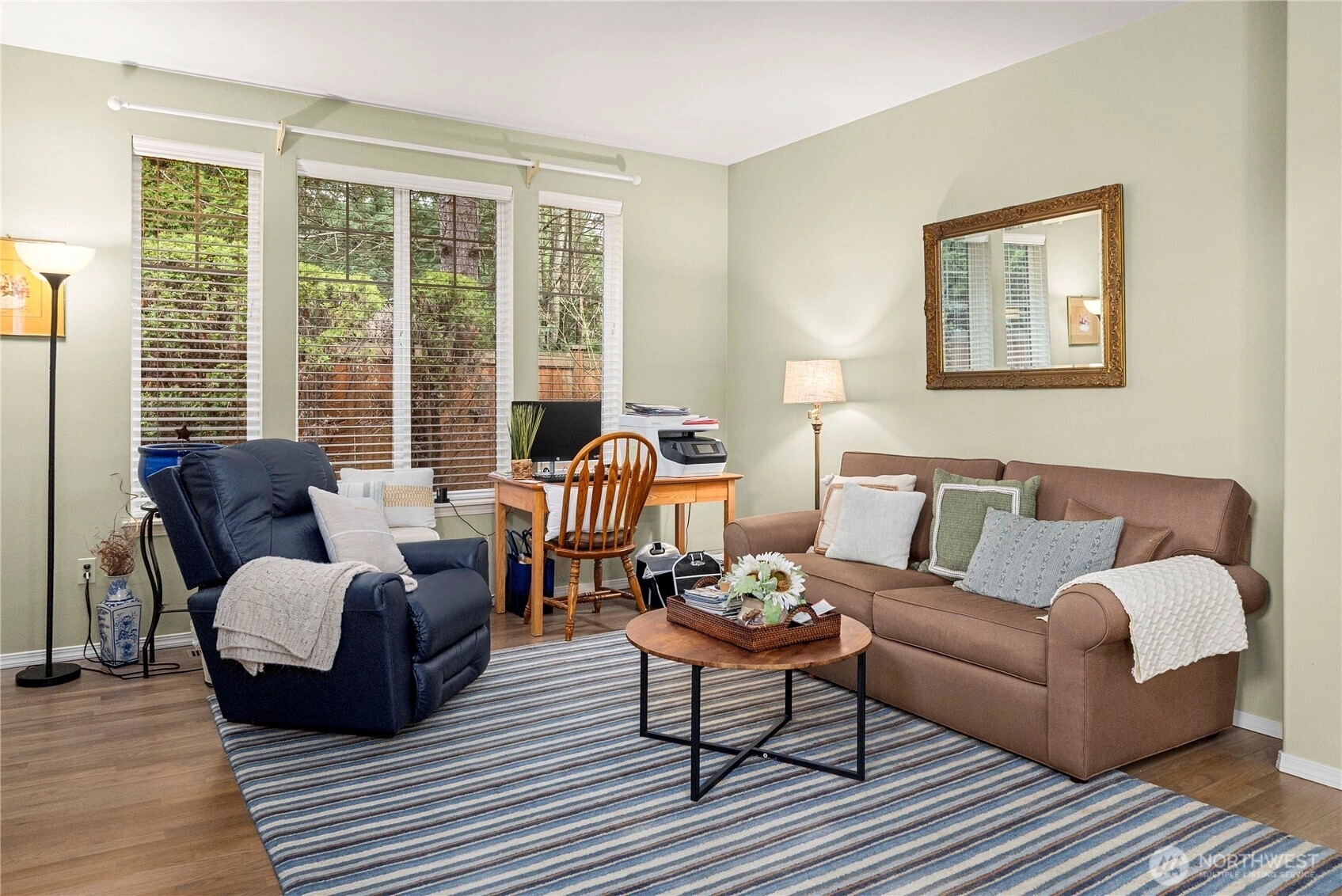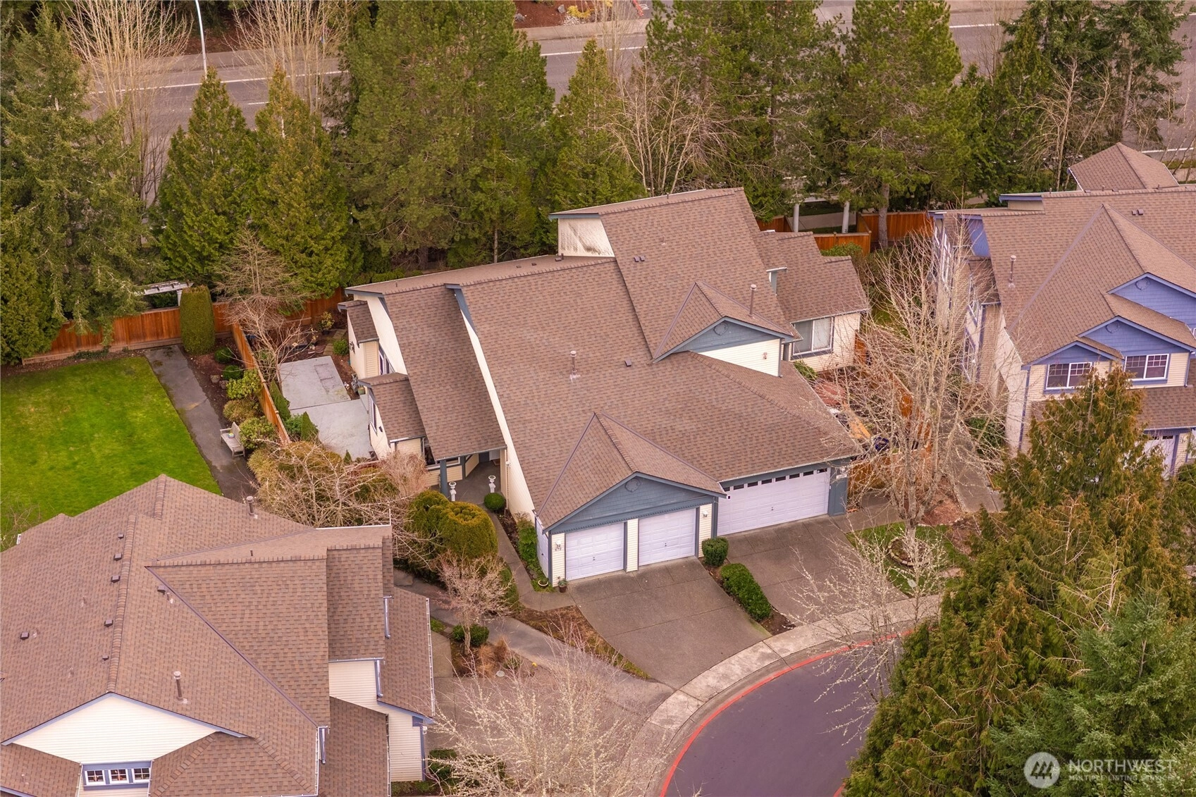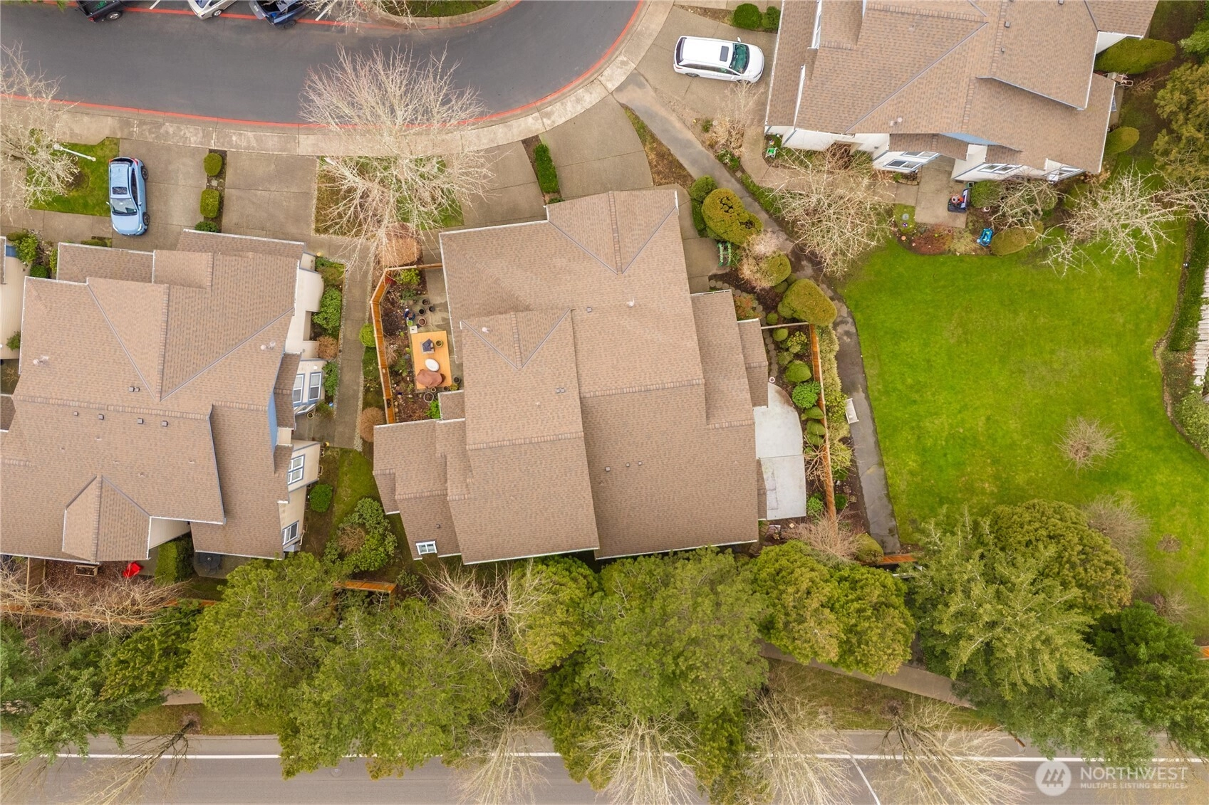 Rare rambler-style living in sought-after Peachtree Lane—where convenience does the heavy lifting. Stroll to nearby shops, errands, and coffee, then come home to easy single-level living and an open-concept layout. This well maintained and upgraded home is ready for it's new owner. Bright and airy kitchen offers plentiful cabinetry and counterspace. Generous eating space flows into the great room with a cozy gas fireplace for winter nights, plus sliders to a private patio made for grilling and string lights, set beside peaceful greenspace. You'll love the recently refinished hardwood flooring through the main floor. Spacious primary suite wows with a beautifully updated bath and a large walk-in closet. Second bedroom also features a walk-in closet. Enjoy your own 2-car garage with extra storage, plus two driveway parking spots for guests. Greenspace off the patio-play area or walk the dog right next door. HOA includes exterior maintenance, landscaping, water, sewer, and garbage. Fenced yard, private clubhouse and pool, and approx. Great commuter location- 10 minutes to Coal Creek Pkwy.