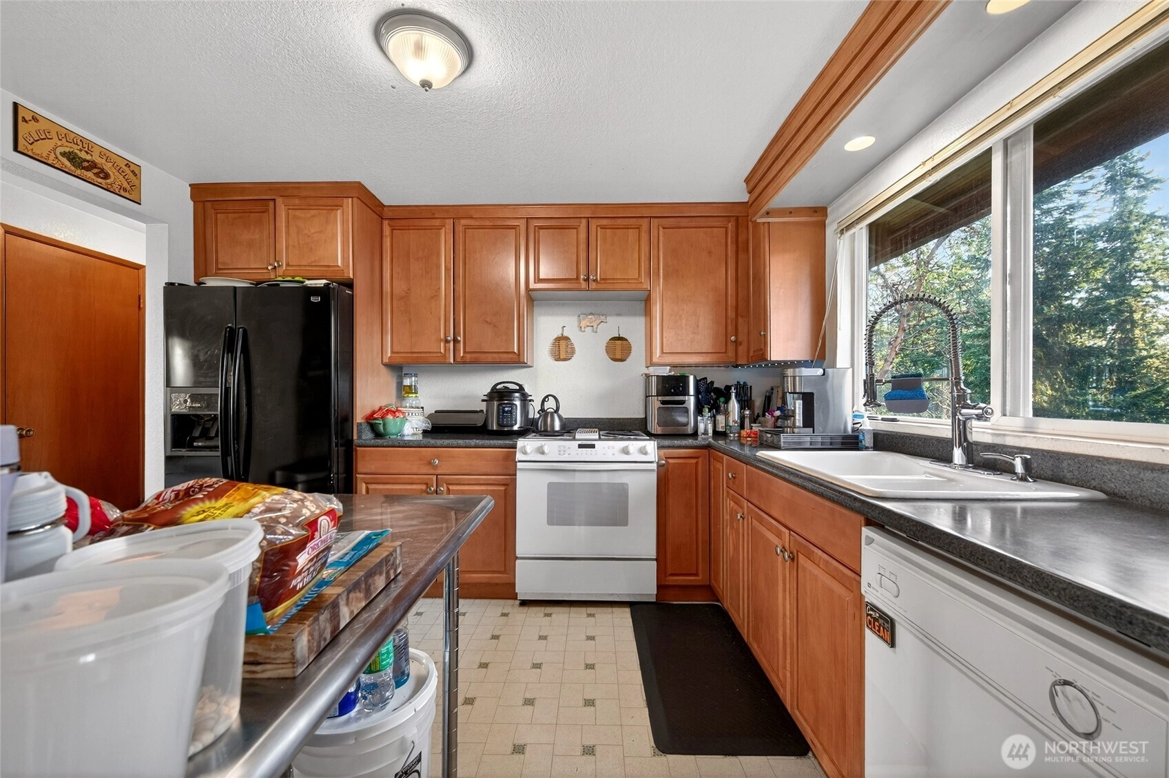 Nestled at the end of a quiet cul-de-sac in the desirable Richmond Highlands, this well-maintained home offers both privacy and opportunity. The exterior has been thoughtfully updated with over $85,000 in recent improvements, including a newer roof, windows, exterior paint, Trex front porch and deck, garage doors, upgraded gutter system, and new fencing providing peace of mind and strong curb appeal. Inside, the home features three bedrooms, two and a half bathrooms, and two fireplaces. The interior presents a blank canvas, allowing buyers to personalize finishes and design to suit their taste. The lower level offers a spacious bonus room, half bath, laundry area with ample storage, office area, and a full-size sliding door that opens to the covered patio ideal for flexible living or entertaining. Enjoy expansive views of the southern skyline from the property. The yard provides space for additional storage, RV or boat parking. An oversized garage offers several hundred additional square feet, creating further possibilities for expansion or workshop use. OPEN HOUSE THIS SATURDAY 1/31/26 @ 11:30-1:30PM Conveniently located near top-rated schools, Richmond Beach parks, and local amenities, this home combines a prime location with exceptional upside.