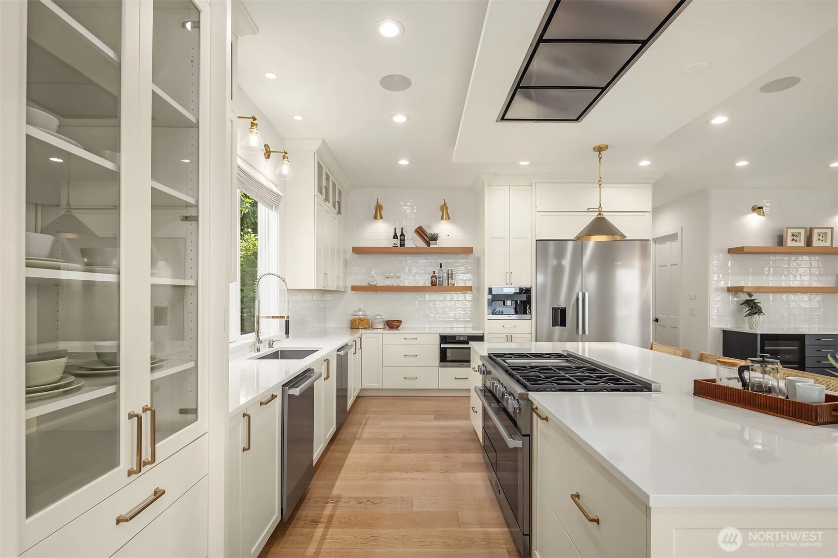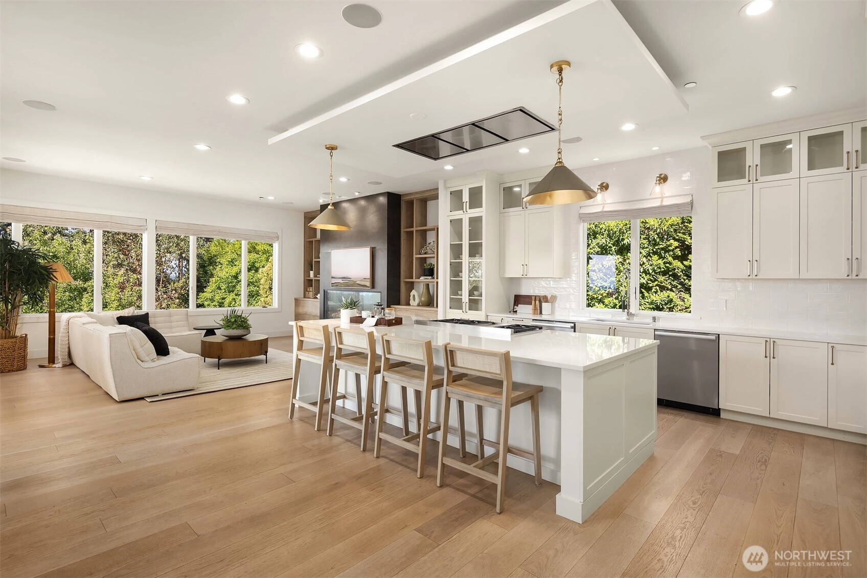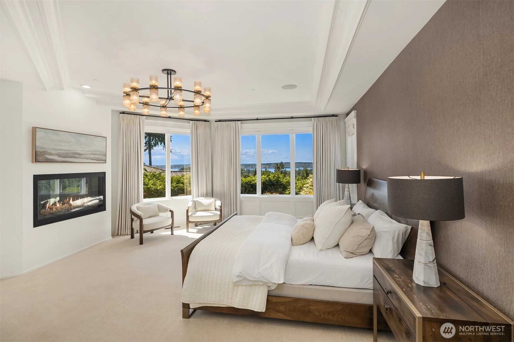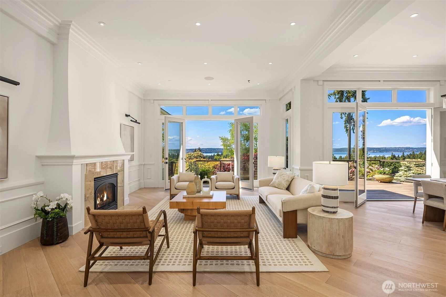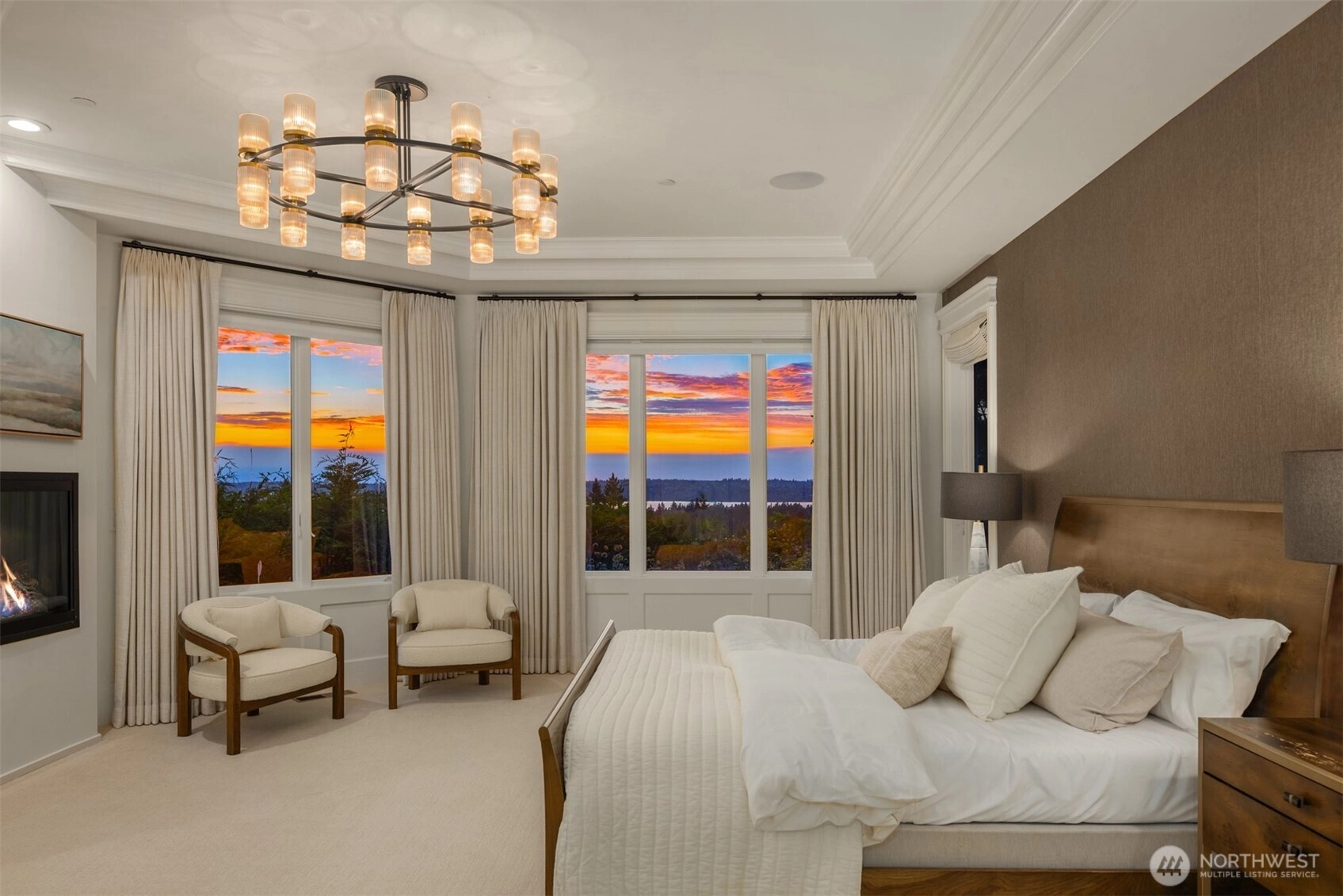 Experience breathtaking sunsets and sweeping vistas from this stunning Clyde Hill luxury home. Enjoy panoramic views of mountains, lake, and skyline that invigorate your days in this beautifully renovated daylight rambler. A 2022 renovation transformed this residence into a move-in ready home. The main floor is an open layout connecting bright, spacious living areas. The gourmet kitchen is a masterpiece of design and function. The family room provides spectacular views. The primary suite includes a fireplace, spa-inspired bath and a Nordstrom-worthy walk-in closet. Downstairs, three ensuite beds, a large theater with custom seating, a rec room with wet bar, a wine cellar and a second laundry room. The highlight: a full generational living suite/ADU featuring its own kitchen and private single-car garage. Relish two levels of outdoor entertaining spaces overlooking mature landscaping, a charming fountain, and a perfectly sized backyard. This is the pinnacle of Clyde Hill living just minutes from Bellevue, Seattle, parks and more.