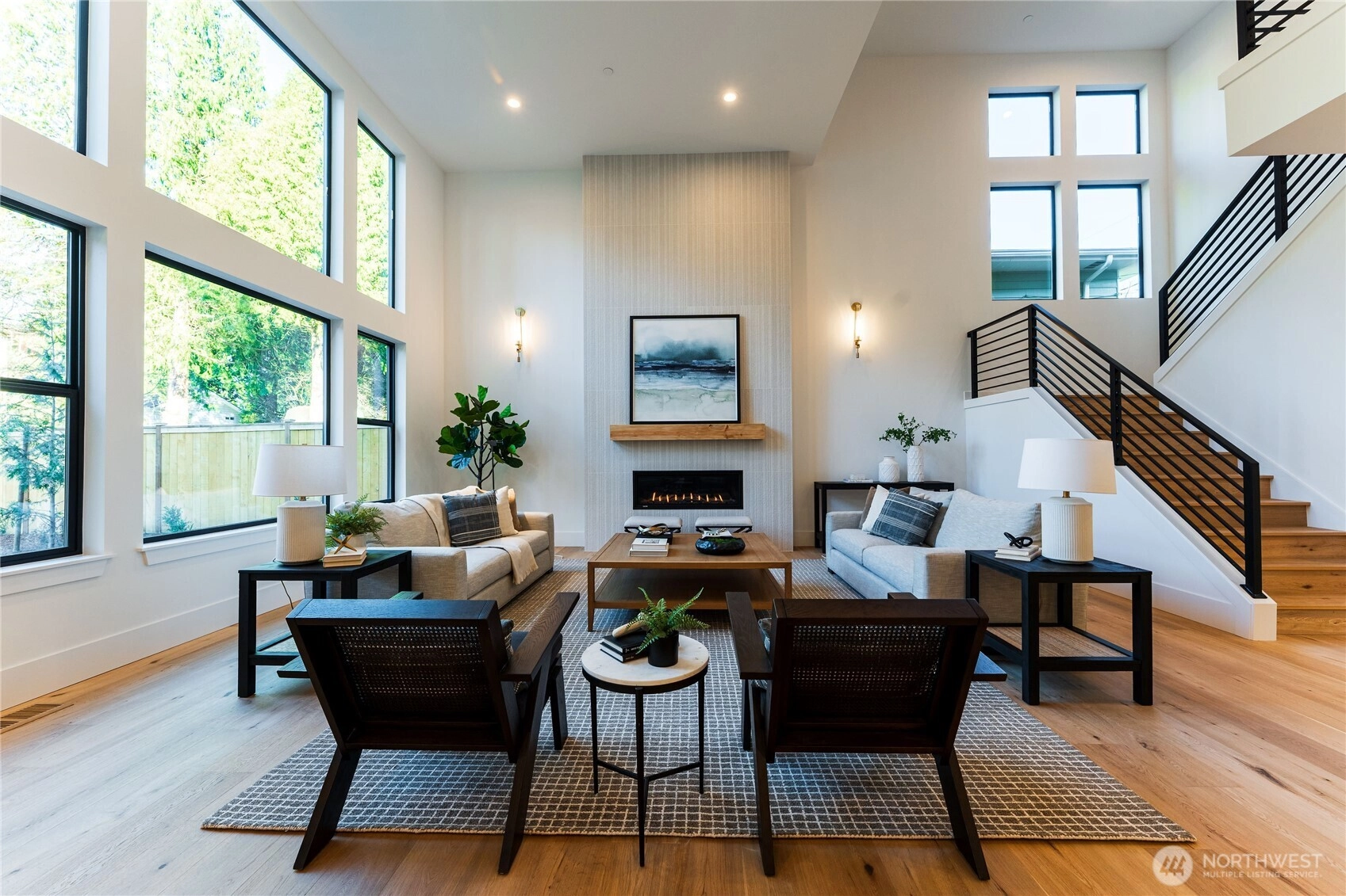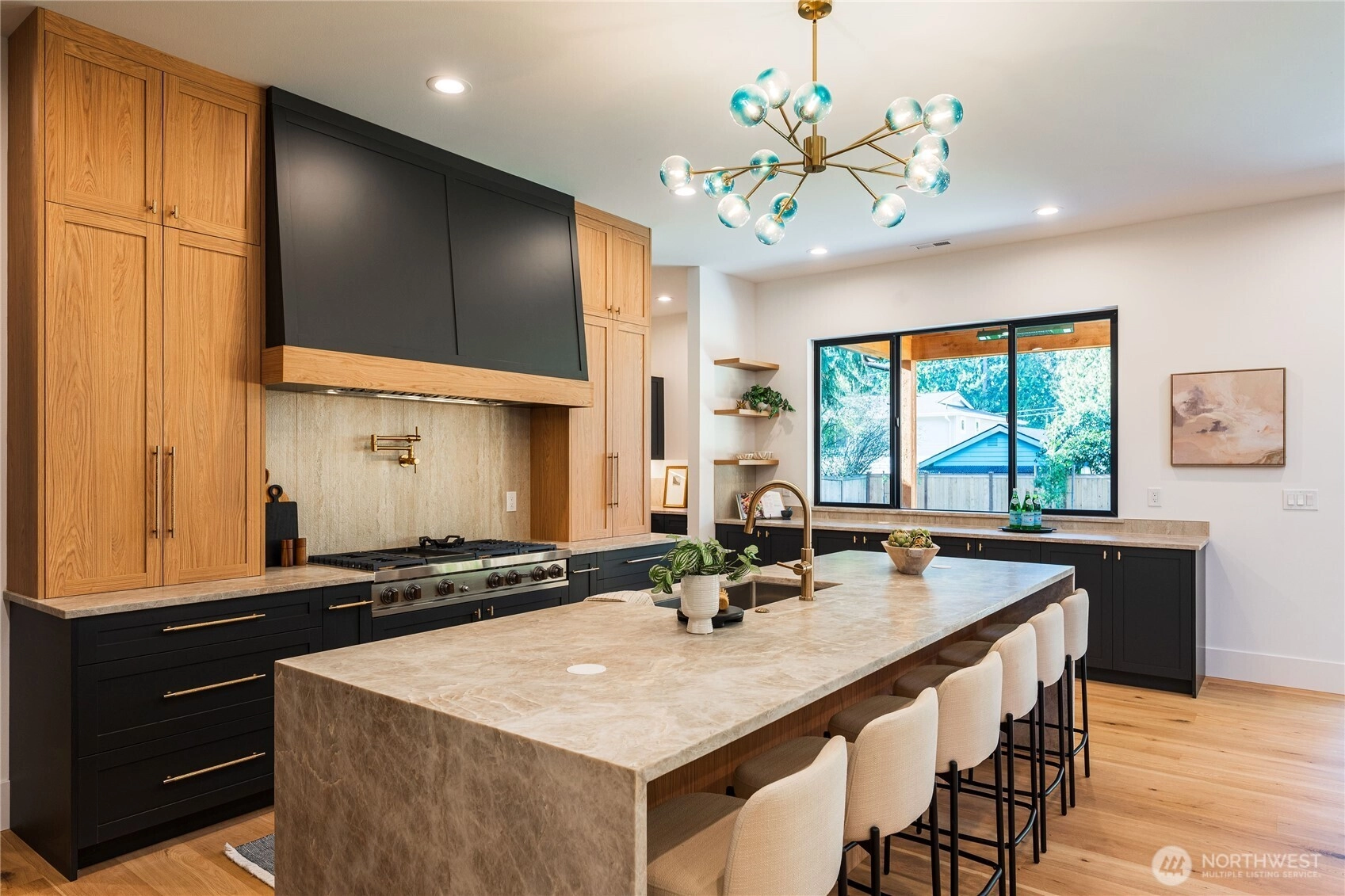 Welcome to a stunning contemporary masterpiece in South Juanita where design meets functionality. You are greeted by dramatic, two-story volume ceilings in the great room, creating an airy ambiance that begs for gatherings. The culinary center is a showstopper, boasting Dacor appliances and natural quartzite Taj Mahal, supported by a convenient second working kitchen to keep your main space pristine while hosting. Step through sliding glass doors to your private outdoor sanctuary, featuring a covered patio with infrared heaters that allow for alfresco dining in any season. Upstairs, the primary suite serves as a spa-like escape with a deep soaking tub, massive shower and heated floor. With a coveted main-floor guest suite, solar panels, metal roof, and a location within the acclaimed Lake Washington School District, this home offers an uncompromising lifestyle of modern elegance.