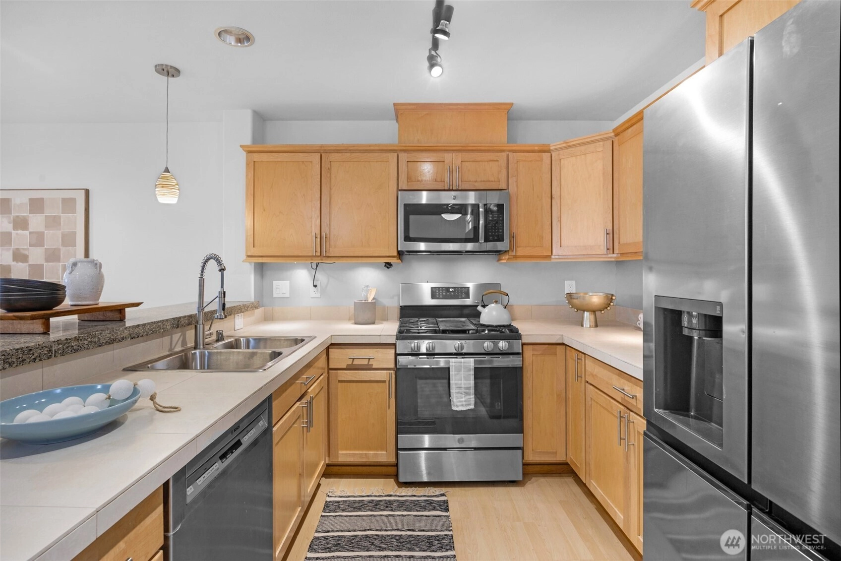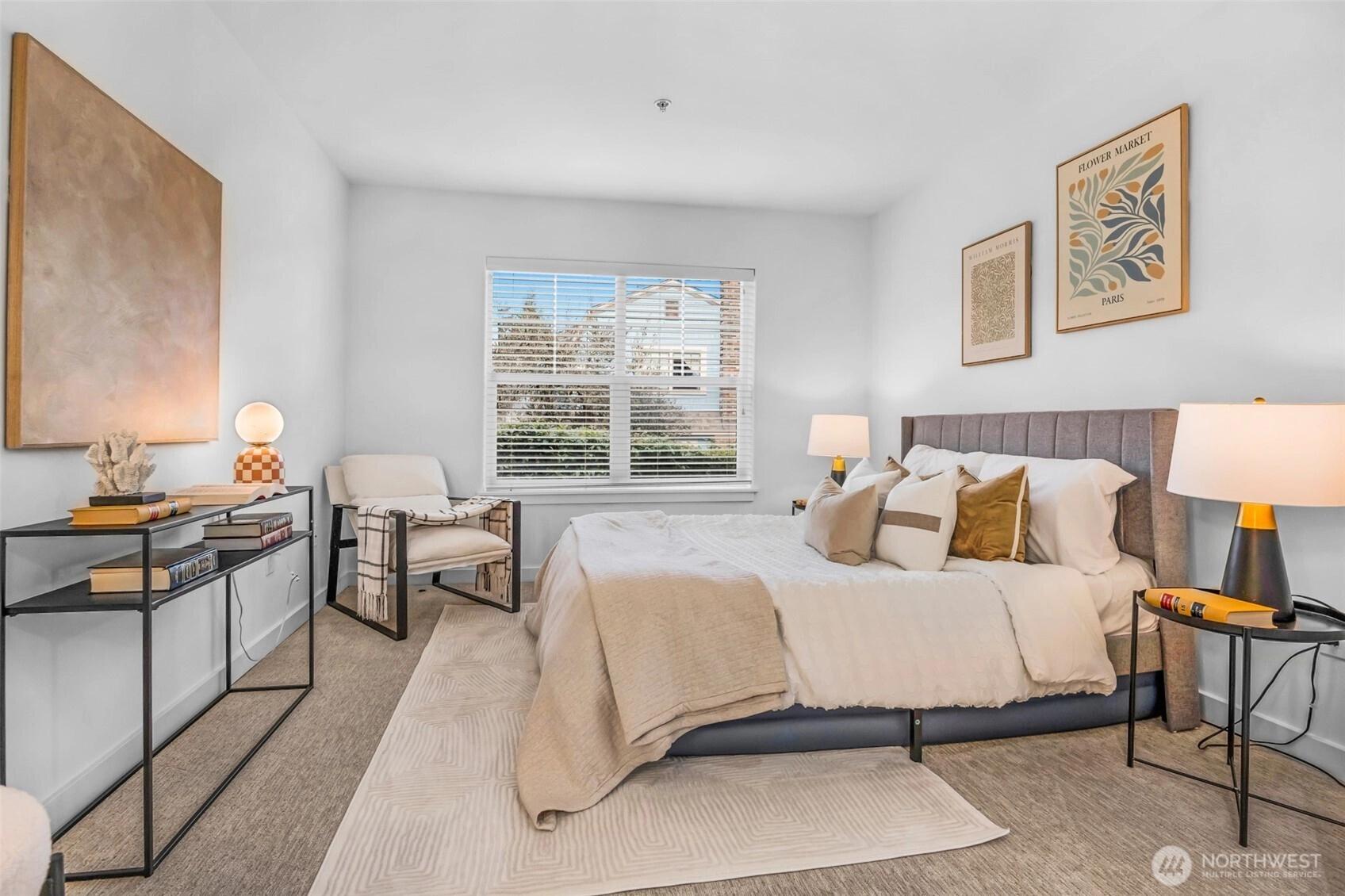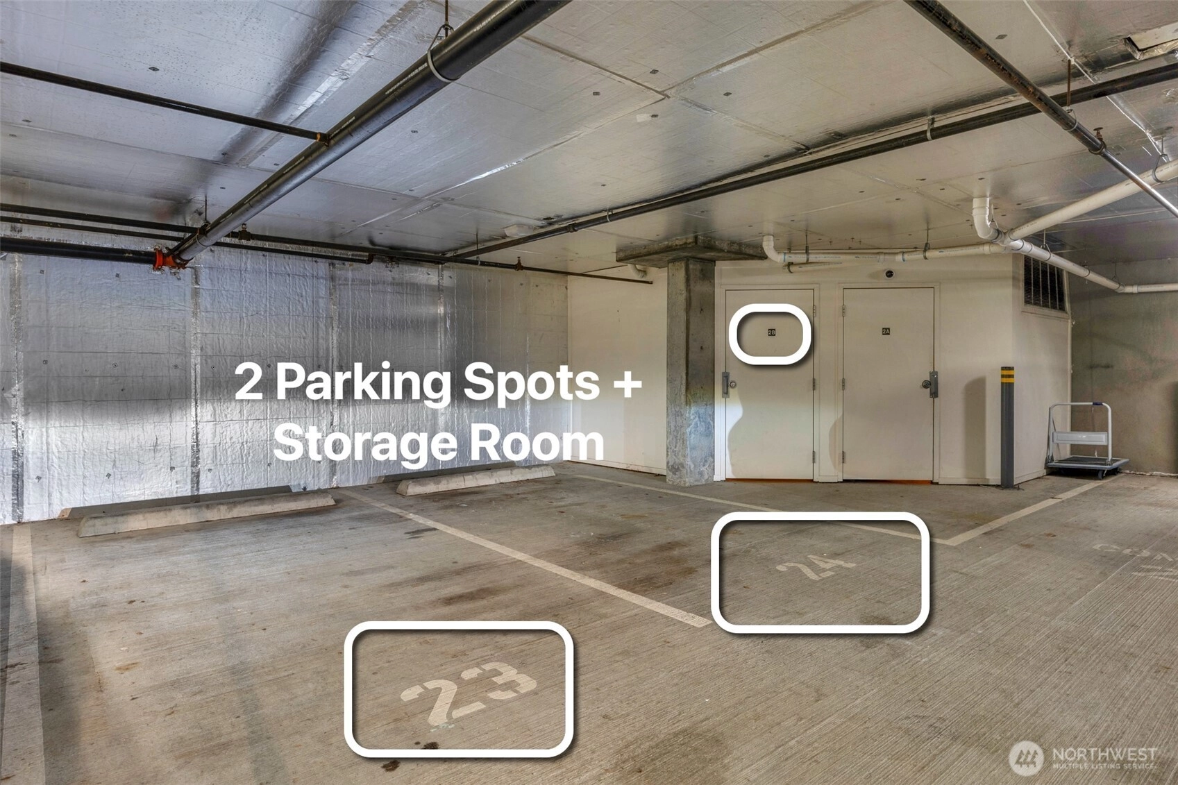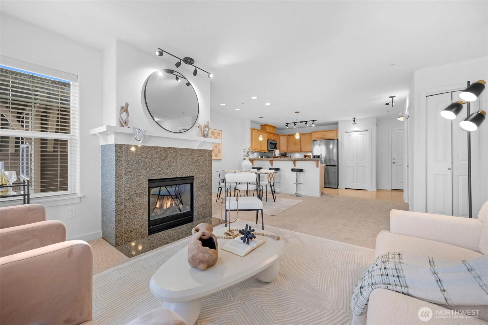 Wake up to sparkling Lake Union and downtown Seattle views from your own private 4th floor deck on Queen Anne's coveted east slope. Set on a quiet, tree-lined street, This luxury, boutique building (only 15 units) offers a calm, neighborhood feel just minutes from vibrant city life below. Morning sun pours into this bright and open east facing home. This spacious end-unit features an open layout with gas fireplace, primary w/walk-in closet & bath & a deck that truly extends your living space—perfect for morning coffee while watching the city wake up or unwinding as the skyline lights come on. Residents here enjoy a well-run, meticulously maintained building, thanks to an active, caring HOA community that prioritizes upkeep, safety, and pride of ownership. Thoughtful amenities include elevator, secure lobby & garage entrance. A rare bonus in this close in QA neighborhood: 2 secure garage parking spaces #23 & #24 and right next to your dedicated storage room #2B—an ideal setup for everyday convenience, gear, & Metro Market runs. Get gardening, walk to the Queen Pea P-Patch community garden at Trolley Hill Park. All of this in a pet-friendly, no rental cap building with easy access to transit, South Lake Union, downtown, and the top of the hill. Walk to work, Amazon Spheres about a mile down the hill! Urban living with a neighborhood soul.