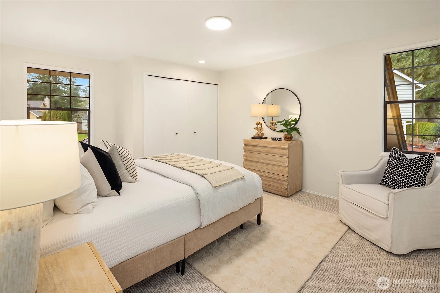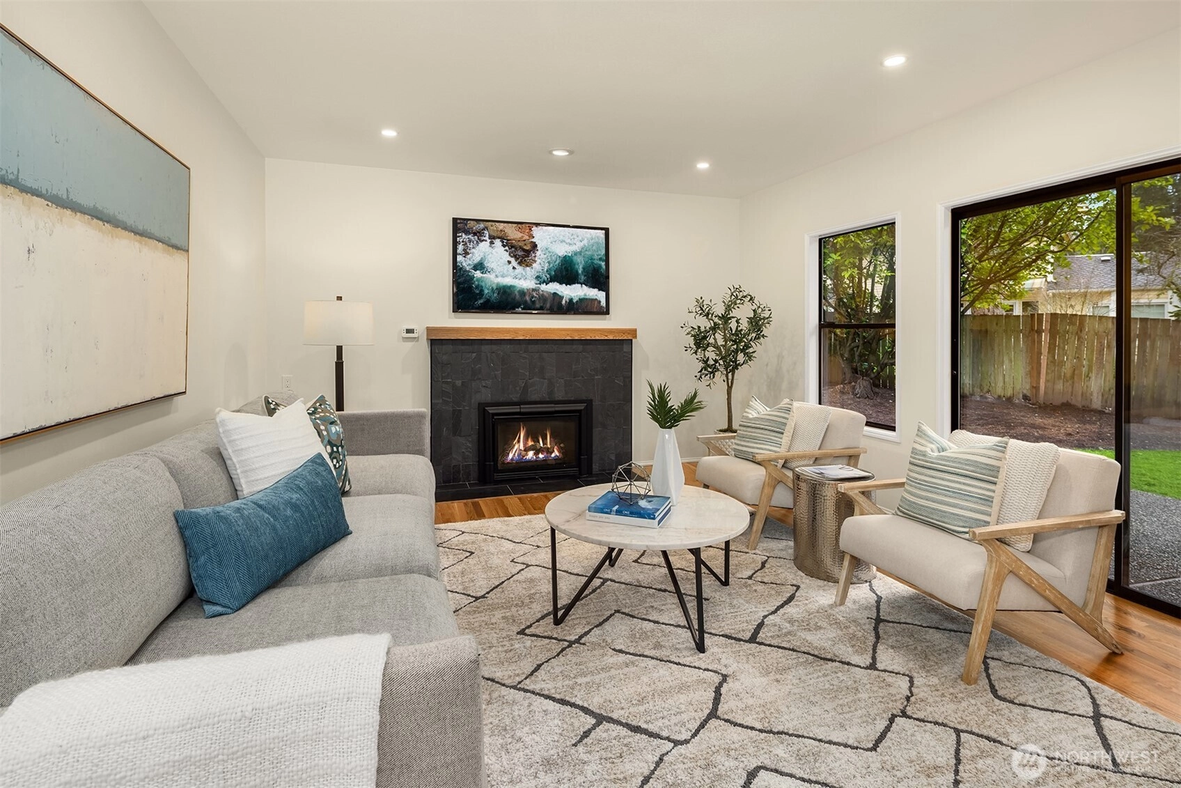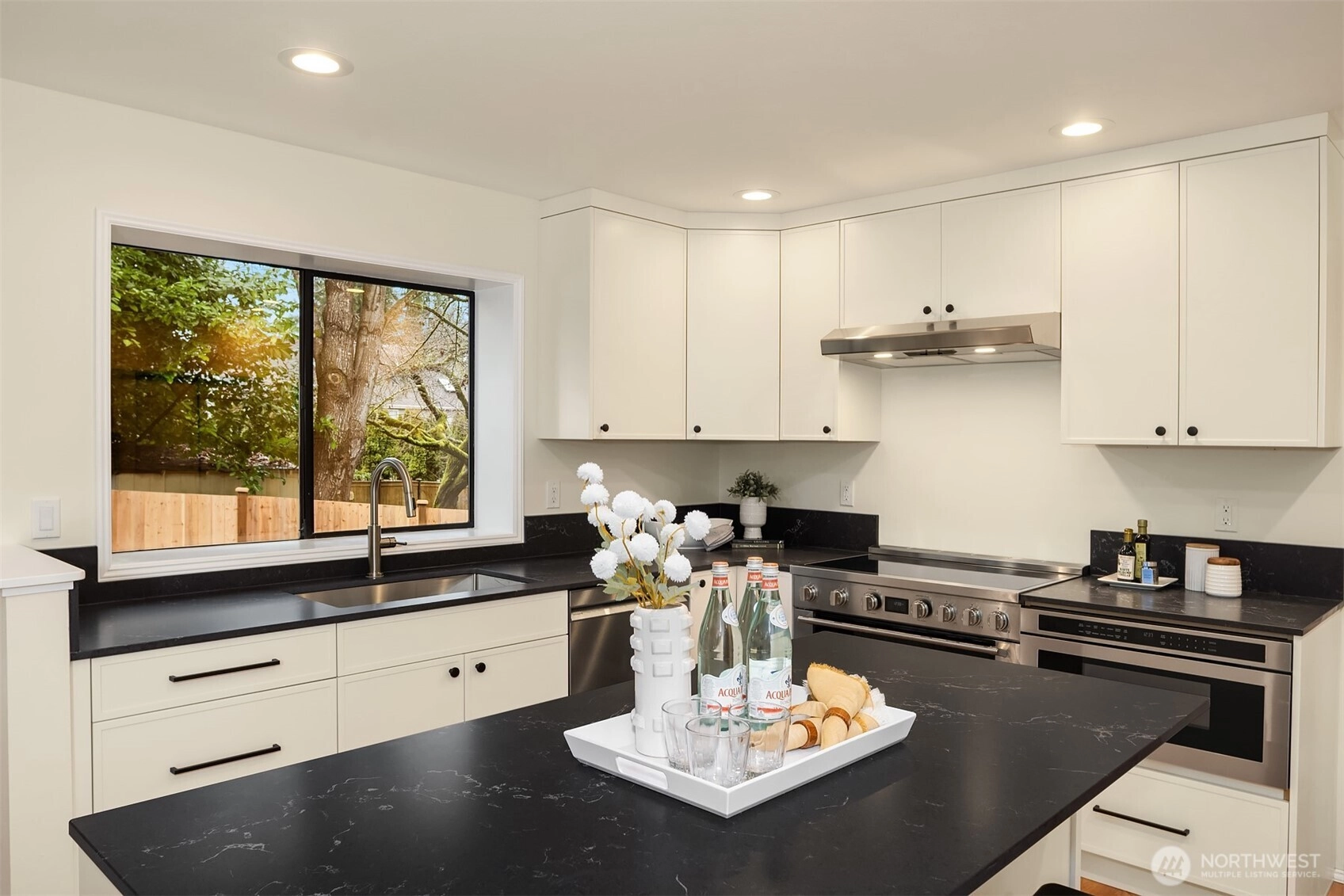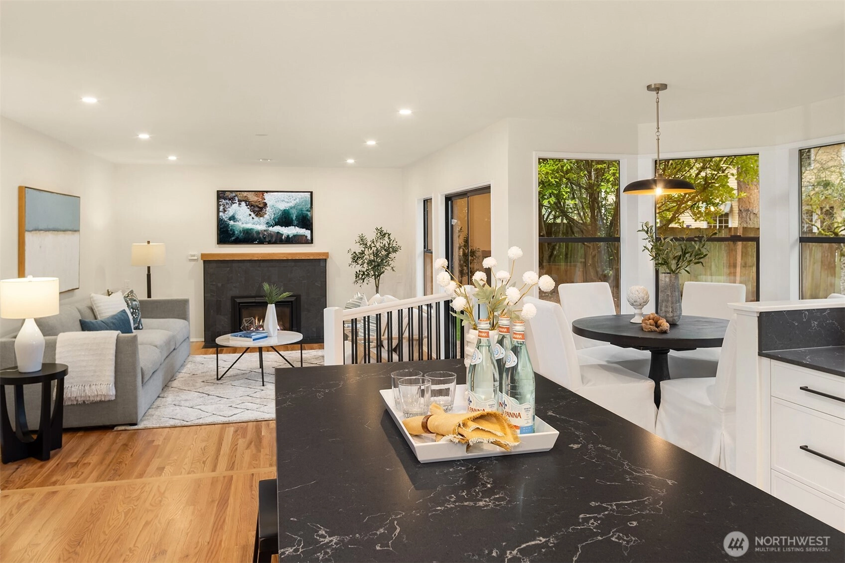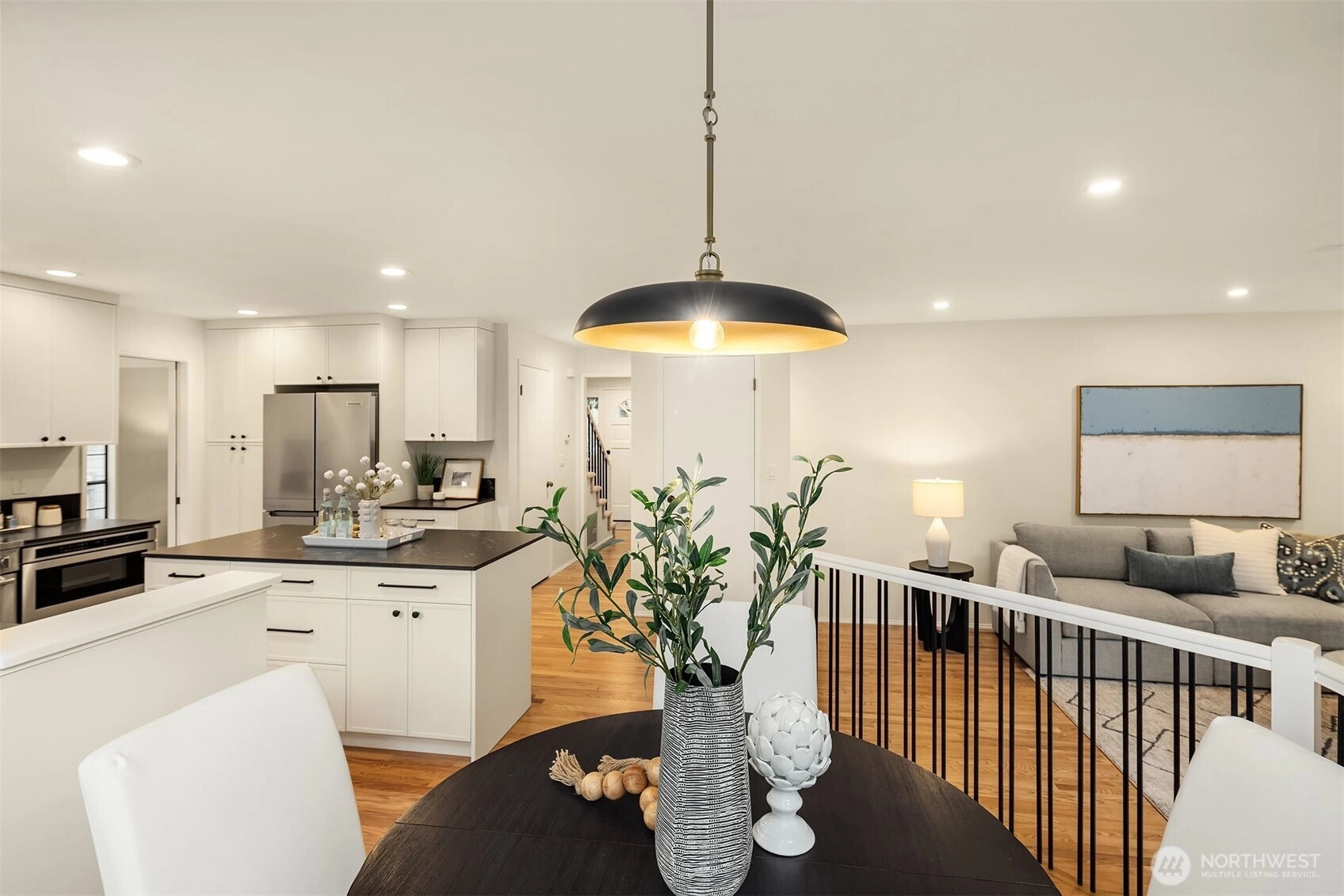 Perfectly situated on a quiet cul-de-sac in Redmond’s coveted English Hill neighborhood, this meticulously remodeled Burnstead-built home blends clean lines with warm, comfortable living. The freshly painted interior is flooded with natural light, creating a bright, open, and inviting atmosphere throughout the home. Thoughtful updates elevate every space, including gorgeous hardwood floors with a contemporary matte finish, new plush carpet, and designer lighting, plus a 50-year Presidential roof for long-term peace of mind. The refined kitchen features slim shaker custom cabinetry, quartz countertops, and a 36” Electrolux induction range paired with a high-end stainless steel appliance package. The kitchen opens seamlessly to a sunlit eat-in nook and flows into the family room, anchored by a cozy gas fireplace, perfect for game days. Upstairs, the spacious primary suite offers a reading nook by a charming bay window and a large walk-in closet. The stunning five-piece bath includes a deep soaking tub and a spacious shower, creating the perfect retreat after a long day. 3 more bedrooms complete the upper level, with the oversized fourth bedroom offering flexible use as a bonus room. Outdoors, enjoy a fully fenced yard with a patio ready for grilling, relaxing, and effortless entertaining. Ideally located close to parks, dining, and major tech campuses. You are just a short walk to Sunrise Elementary, within the top-rated Northshore SD.