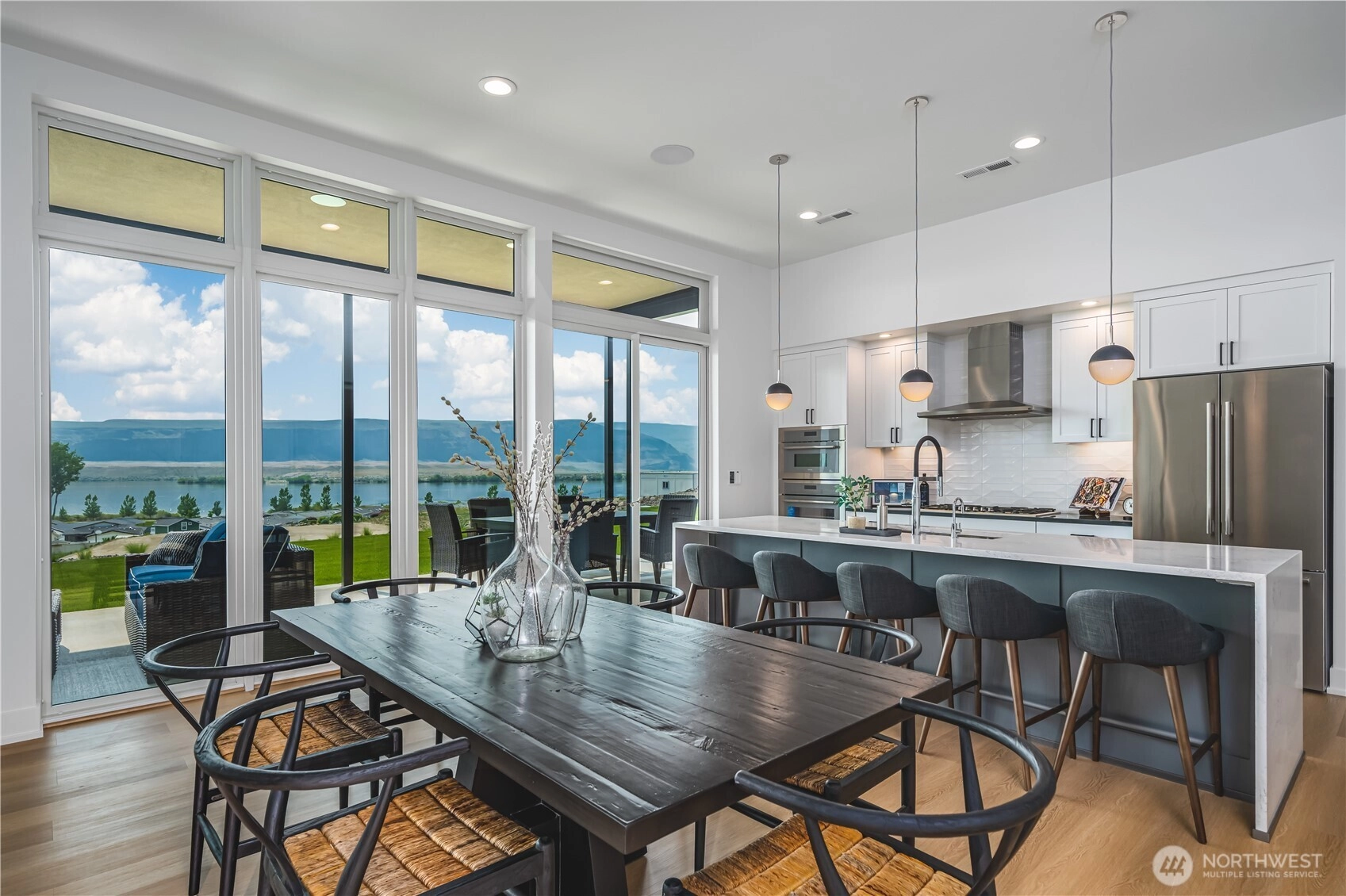 Experience modern luxury at Crescent Ridge, the Northwest’s premier destination with breathtaking Columbia River and basalt cliff views. An expansive great room with soaring 10’6” ceilings and floor-to-ceiling windows creates the perfect space for entertaining. The chef’s kitchen boasts a grand island, custom cabinetry, and pantry. The primary suite features a spa-inspired bath and a generous walk-in closet. A stylish den with scenic views is ideal for remote work, while the oversized garage accommodates a boat, golf cart & gear. Resort-style amenities include a pool, spa, fitness center, pickleball courts and bistro/event space.