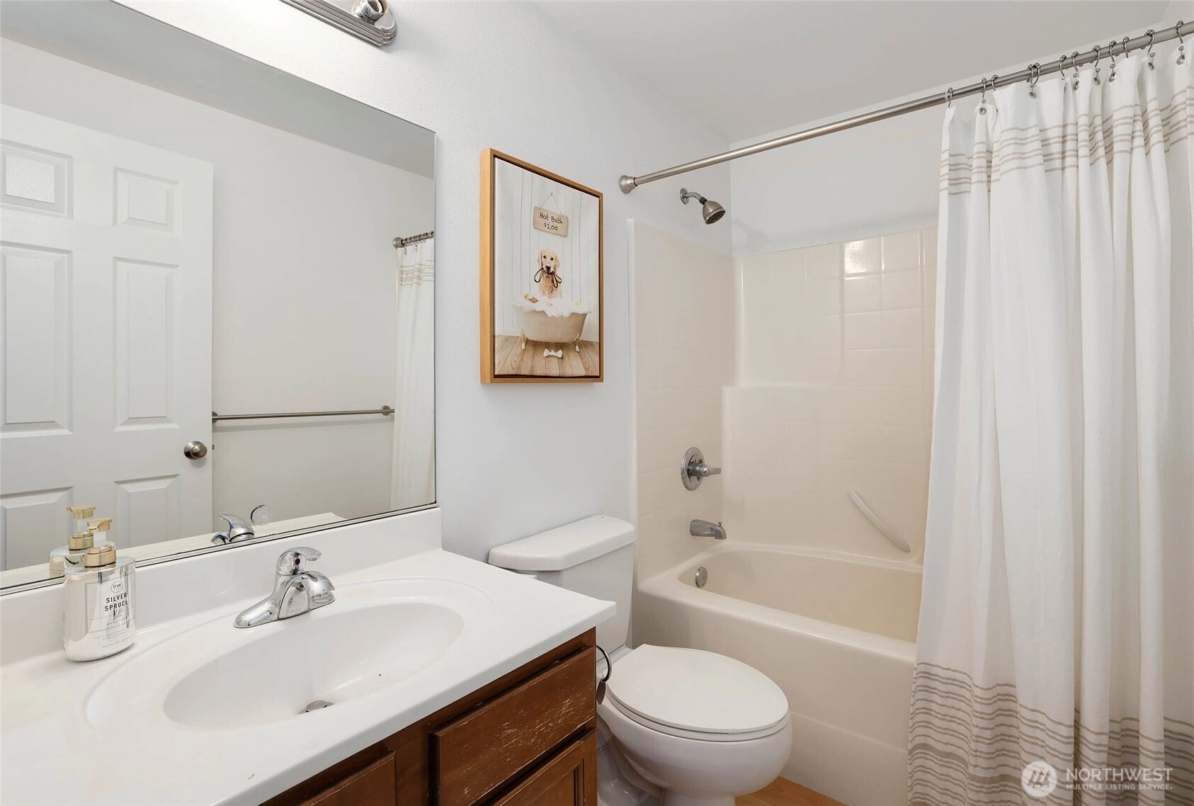 Welcome to this charming 3-bedroom, 1.75-bath home in desirable Steilacoom, offering a warm and comfortable layout. Fresh paint and brand-new carpet throughout create a clean, move-in-ready feel from the moment you enter. The spacious living room features a cozy wood-burning fireplace, creating an inviting spot to relax or gather. The kitchen includes stainless steel appliances and convenient access to the laundry room, making everyday routines easy. The generously sized primary suite is thoughtfully set apart, featuring an en-suite bath and a walk-in closet for added comfort. Two additional bedrooms and a full bath are located on the opposite side of the home, providing a balanced and functional layout. Step outside to enjoy the patio and partially fenced yard, ideal for outdoor dining or quiet moments. An attached garage adds everyday convenience. Situated across from Cherrydale Park and close to JBLM, schools, and local amenities, this home offers a wonderful blend of comfort and location. No HOA!