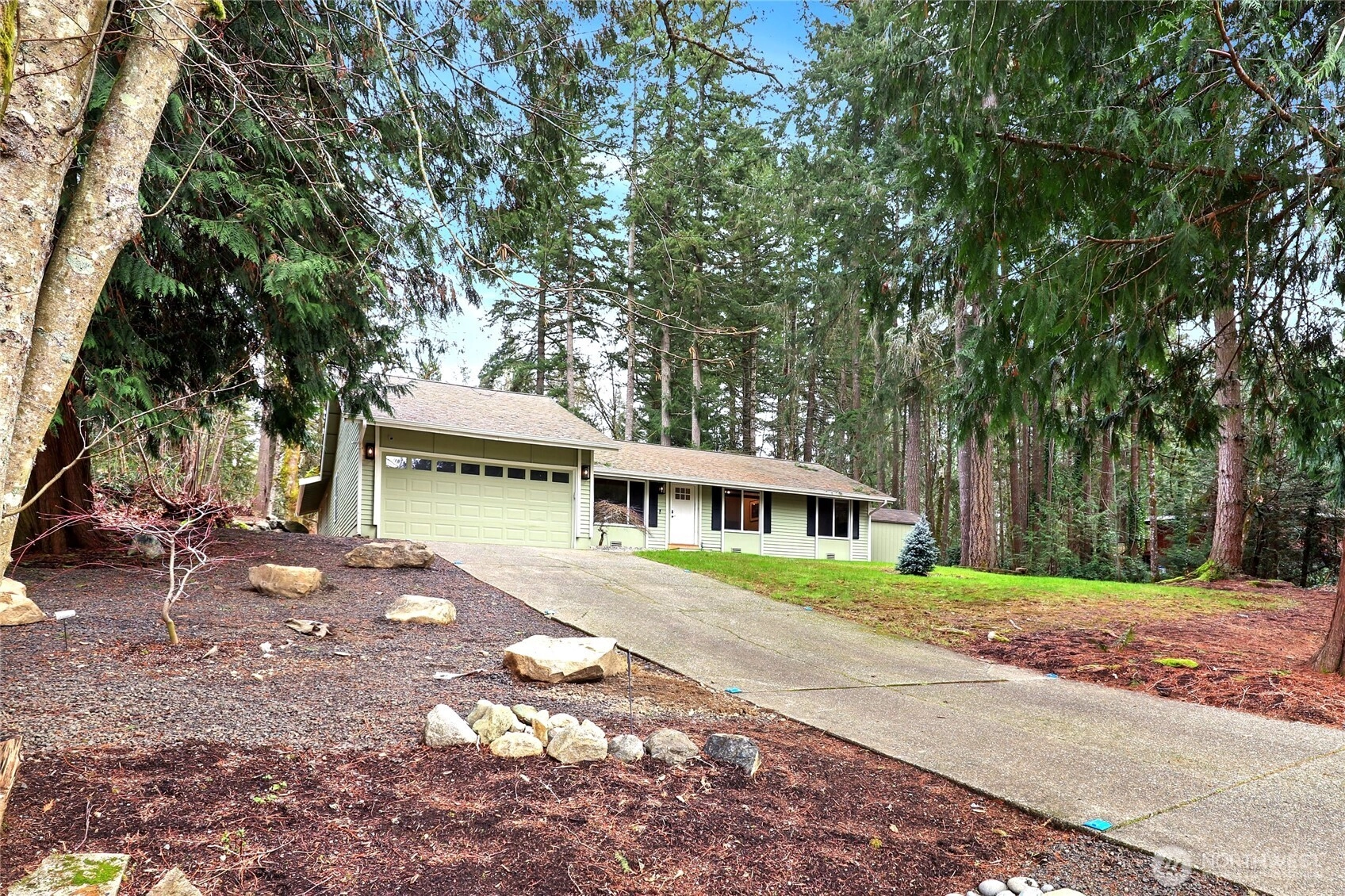 Set on a shy acre in a peaceful neighborhood, this beautifully remodeled rambler combines thoughtful design with modern comfort. Light and bright throughout, the open layout offers an easy flow between living spaces, creating an ideal setting for everyday living and entertaining. The gourmet kitchen is the centerpiece of the home, featuring upgraded appliances, modern fixtures, and a large island that provides abundant prep space, seating, and storage. Nearby, choose between the spacious great room or the cozier adjoining living area—both perfect for relaxing with a book or enjoying quiet moments. The well-designed primary suite offers a comfortable retreat with an updated bath, a dedicated water heater, and generous closet space. Two additional large bedrooms and a refreshed full bath sit on the opposite wing of the home, providing separation and functionality. Step outside to a patio surrounded by natural scenery, ideal for outdoor dining or simply unwinding. With convenient access to nearby shopping and everyday amenities, this inviting property presents a rare opportunity to enjoy space, style, and serenity. Schedule your showing today!