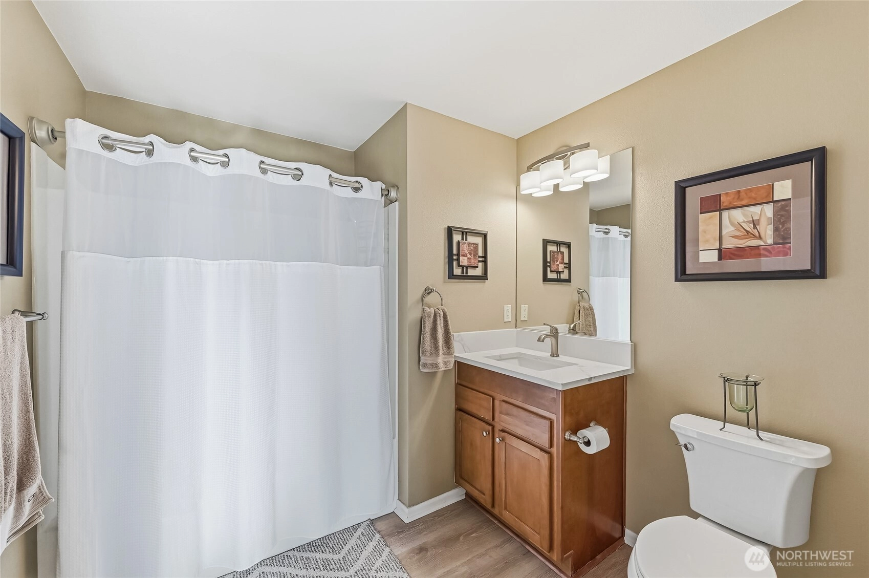 BETTER THAN NEW! Beautifully updated in 2022 this 3-bedroom top floor, corner unit is freshly appointed with today’s hottest finishes, designer colors and quality appliances. Gorgeous Luxury Vinyl Plank flooring and new paint flow throughout this light filled home (no carpet). The updated kitchen is truly a Chef’s Kiss with new quartz counters, custom backsplash, under cabinet lighting and newer stainless-steel appliances. Primary suite with beautiful, updated ensuite bath features a step-in shower, large vanity with quartz counters and a walk-in closet. The additional 2 bedrooms provide flexible bedroom, office or TV room options. They share a tastefully updated bath that can create a 2-bedroom guest suite for your long, or short term, guests. The spacious, south facing covered deck with sweeping territorial and big sky views is ideal for year-round BBQs, outdoor dining or just relaxing on a summer afternoon. In-unit laundry center with full sized, newer W&D. Private garage with direct access into the secure building plus an additional outdoor parking space. Elevator building has ZERO STAIRS. Meticulously maintained complex with plenty of guest parking and a lovely community garden and gathering space. HOA dues cover water, sewer garbage, building and elevator maintenance. Bring your four-legged friends, this is a pet friendly complex. Mere blocks to QFC, Starbucks, restaurants, shops, golf and the Redmond Ridge trail system. Sundance Glen is a 55+ age restricted community