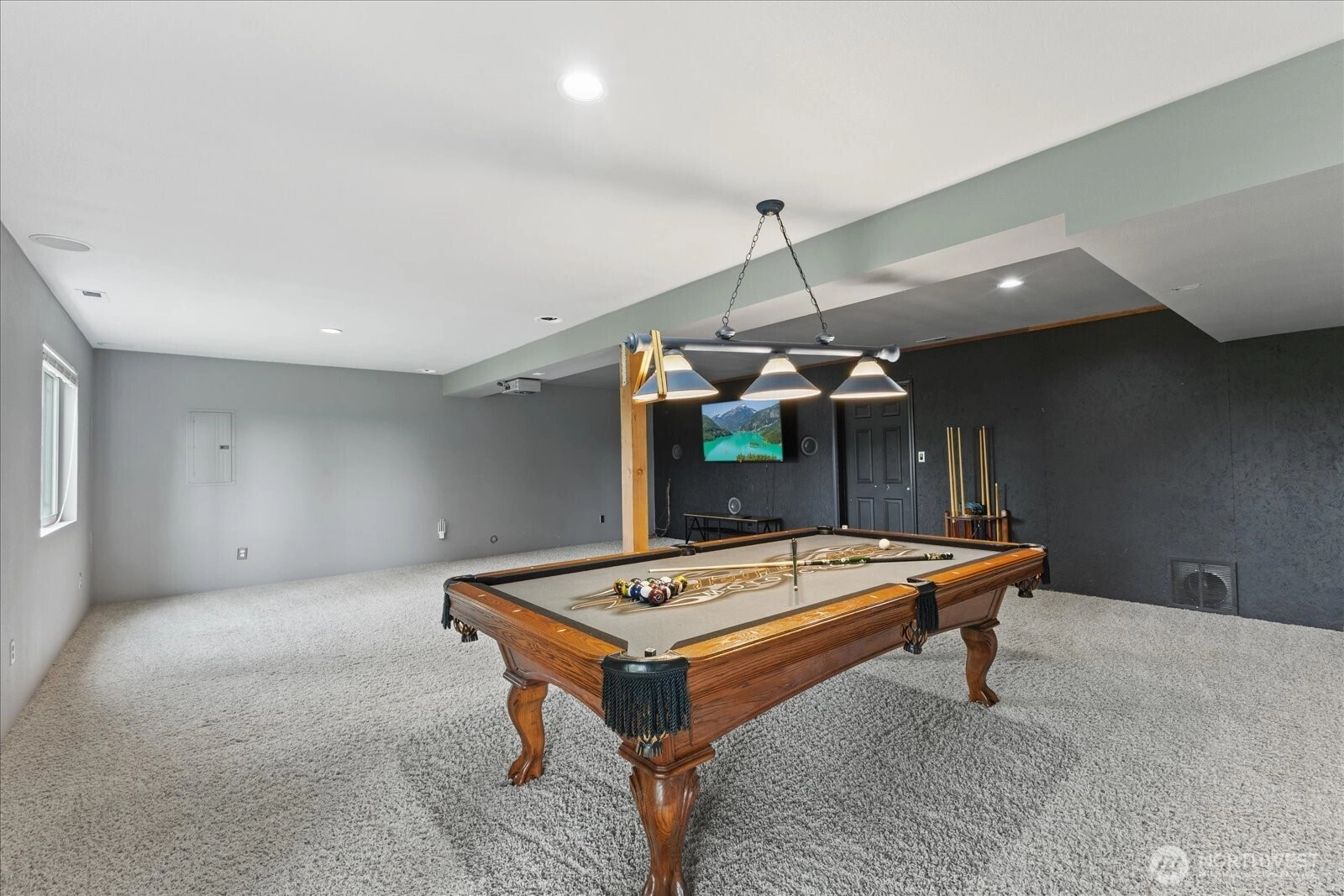 Discover this amazing, private, east-facing property at the end and top of the road overlooking Schwartz Lake. Fabulous views, breathtaking sunrises, and sunsets. The well-designed main floor features all current bedrooms, bathrooms, kitchen, dining, and living. Deck off dining area. The lower level has French doors access to the yard and features a huge 45' x 20' rec/game room/possible MIL/ media room/or even a new luxury primary bedroom! There’s an added partially finished bathroom and a large, 27' x 20' separate storage room. Substantial paved parking for multiple vehicles, RVs, and toys. The extra-wide 2-car garage has overhead storage and ample space for your workshop. Easy maintenance landscaping and a large detached shed with power. Riding mower negotiable