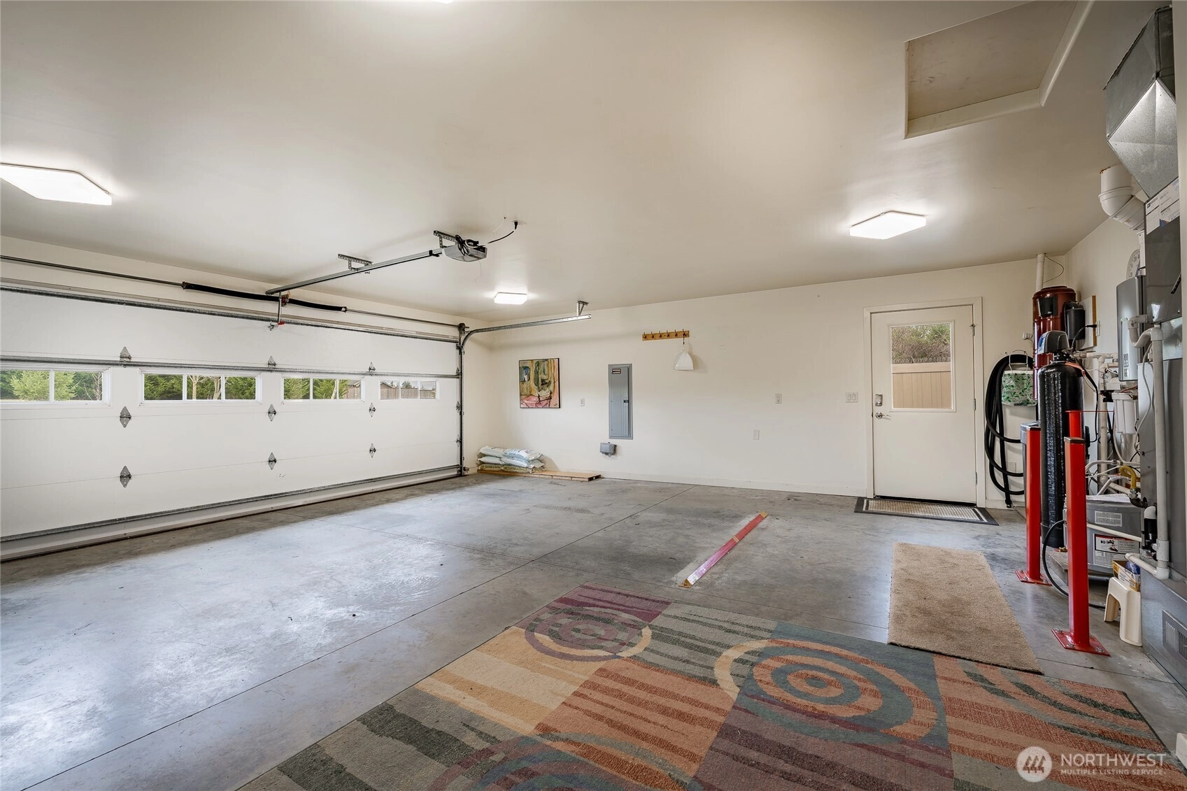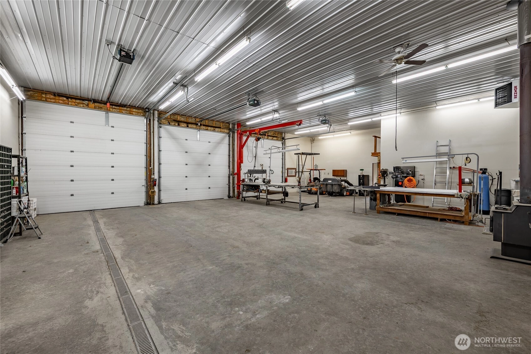 A RARE gem for shop enthusiasts! This incredible property boasts a massive 2,700-square-foot shop with a 4-bay garage—perfect for hobbyists, mechanics, or anyone needing serious workspace. Highlights include a mechanic’s dream setup with an oil pit, a motorized joist, overhead heating, a wood stove, air compressor, generator, RV dump, and even a covered barn area for equipment storage. It’s truly a workspace designed to impress! But that’s just the beginning—this property has so much more to offer. Sitting on nearly 5 acres, it includes a 665-square-foot attached ADU and an additional 655 square feet of overhead dry storage. The main home offers effortless single-level living with thoughtful details throughout. You’ll find two bedrooms and a flexible den space, including a primary suite with dual vanities, separate water closets, and generous closet storage. The second bedroom features a Murphy bed, making it perfect as a guest room or multi-functional space. The open-concept living area flows seamlessly into a fenced patio, providing a private retreat for outdoor enjoyment. The kitchen is a chef’s delight, offering ample storage, soft-close drawers, a walk-in pantry, and stunning picture windows that flood the space with morning light from the East. Thoughtful upgrades like a zero-step entry, whole-house generator, built-in vacuum system and AC. This property radiates pride of ownership and offers endless potential—don’t miss the chance to make it yours! A special gem.