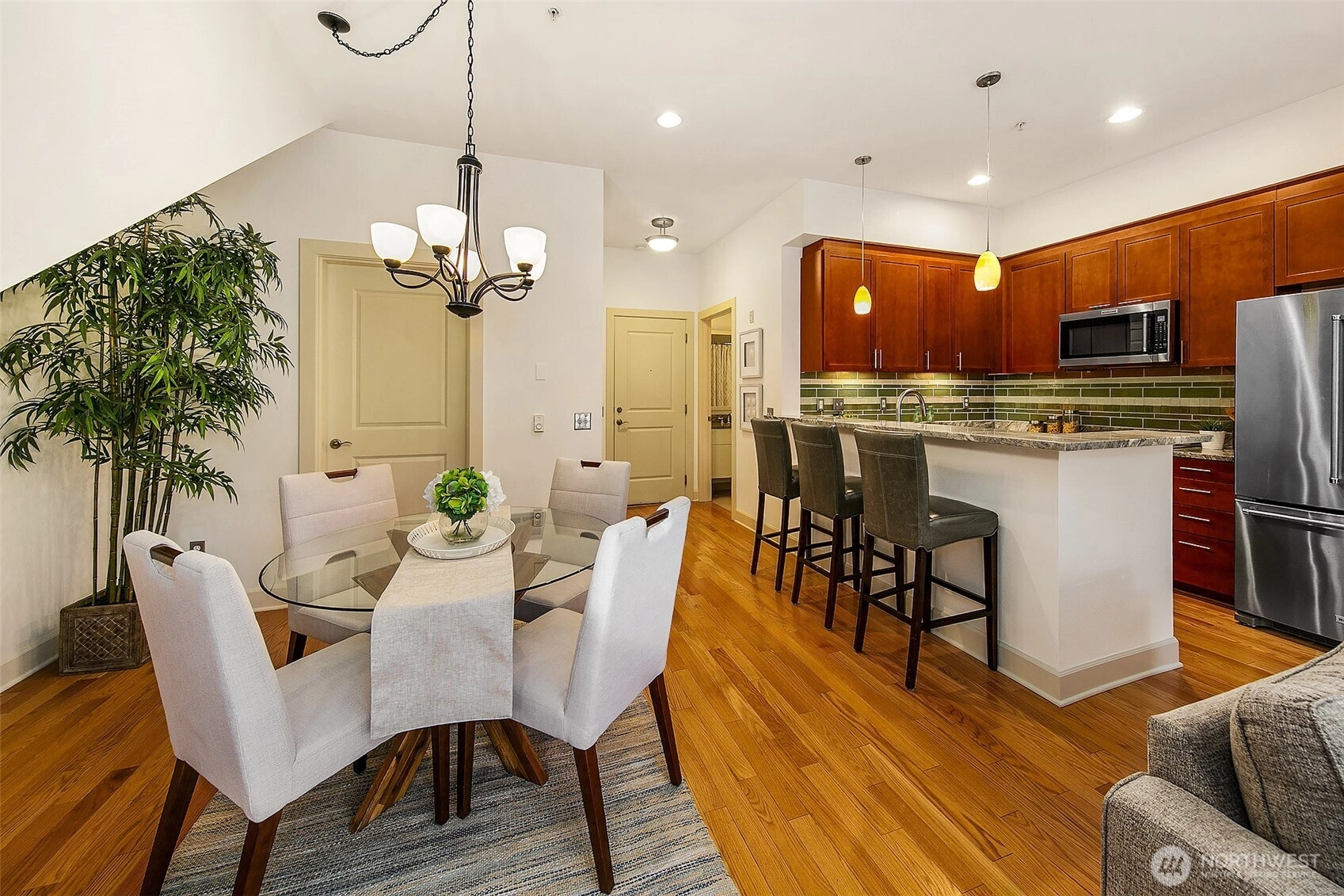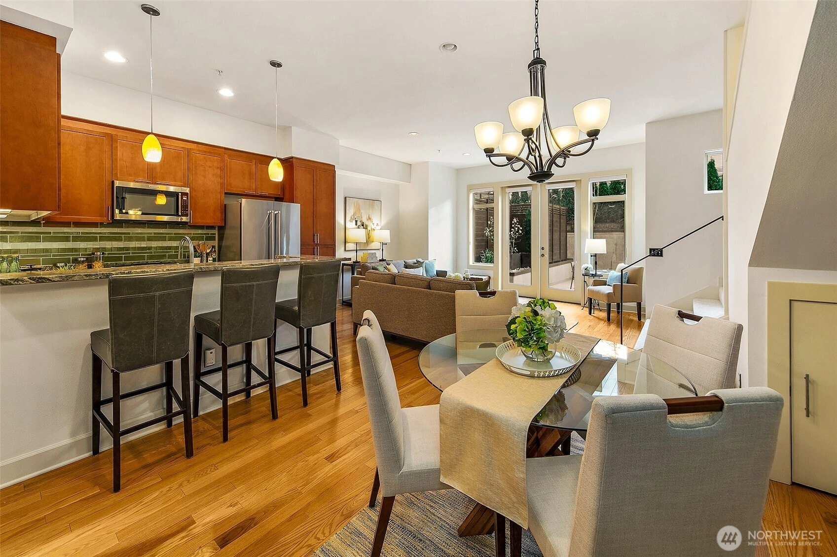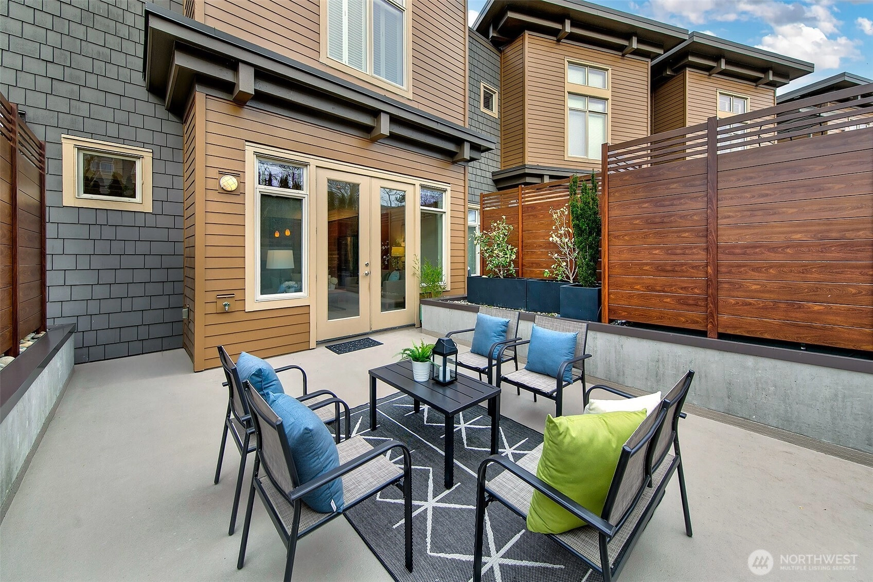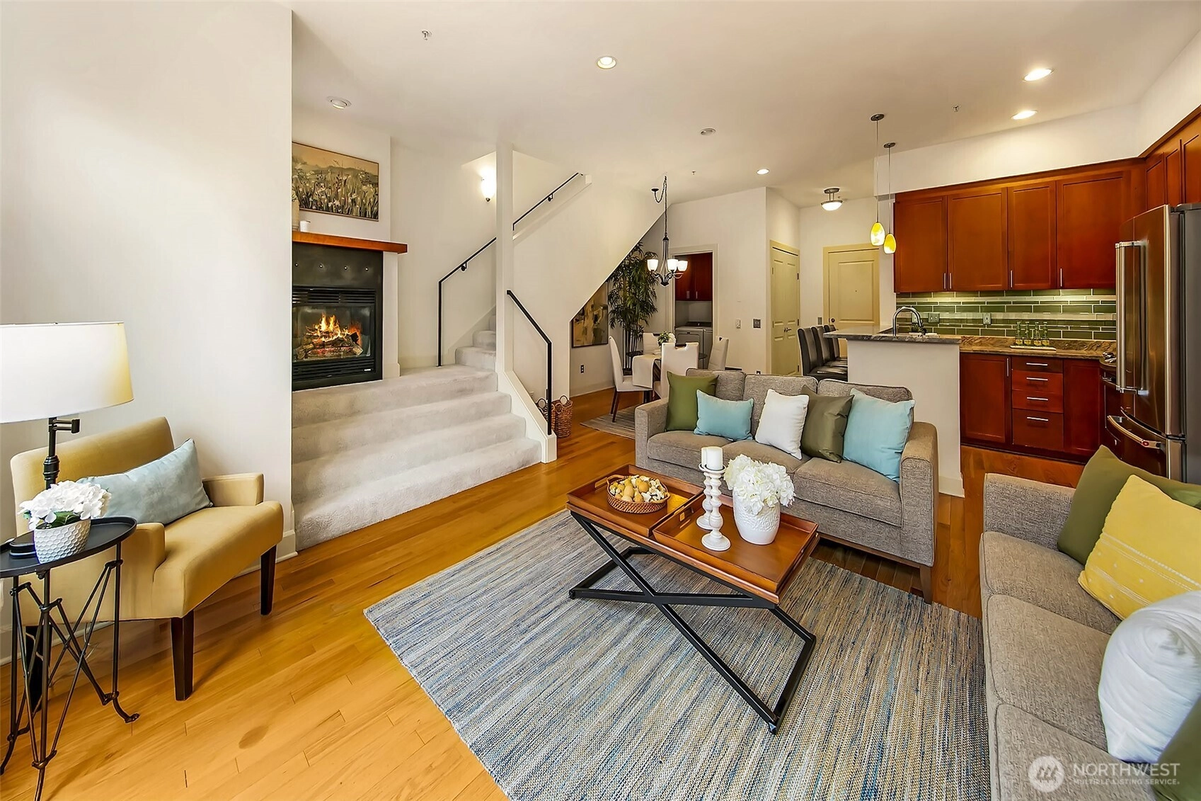 Welcome to your serene oasis in luxurious Point Edwards! Private and peaceful, light filled open layout features living and dining space, with wide plank cherry floors and cozy elevated fireplace. Gourmet kitchen boasts gorgeous granite countertops, shaker cabinets with storage galore, and stainless appliances. French doors open to your personal and expansive, Southern facing patio where you can soak up the sun or dine al fresco in your exclusive outdoor sanctuary. Upper level hosts Primary suite, with custom walk-in closet, plus light and bright Primary 3/4 bathroom. Find guest bedroom, with vaulted ceiling, huge windows, ceiling fan and custom walk in closet, as well! Landing has charming office or library nook! Just minutes from Downtown Edmonds restaurants, beaches and ferries yet nestled amongst the resort like amenities of Point Edwards, including 34 seat theater, fitness center, pools, hot tubs, clubhouse and guest suites, you get the best of both worlds! With 2 parking space, a pet friendly and well run community and gorgeous grounds and gathering spaces, you're going to want to call this beautiful home yours!
