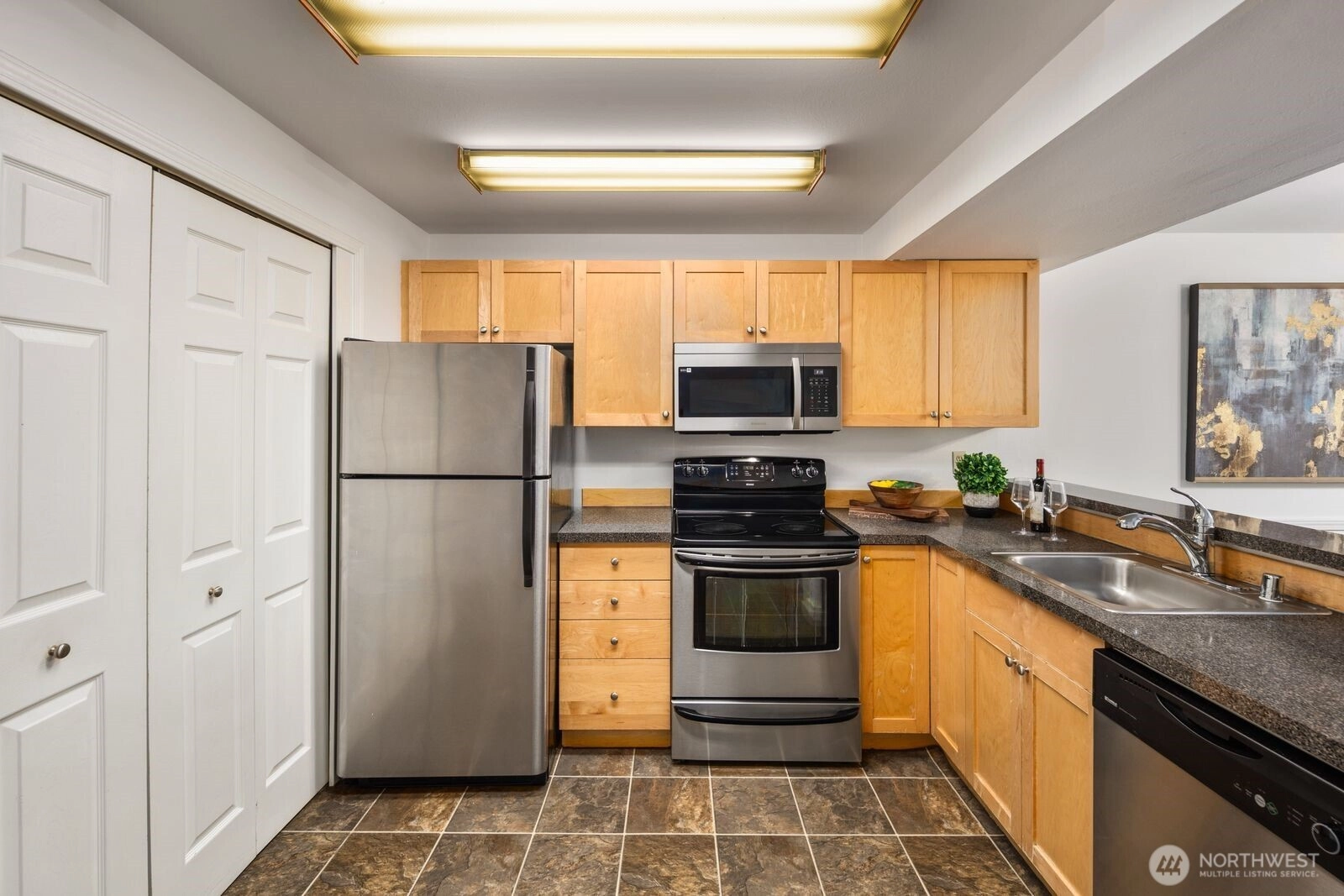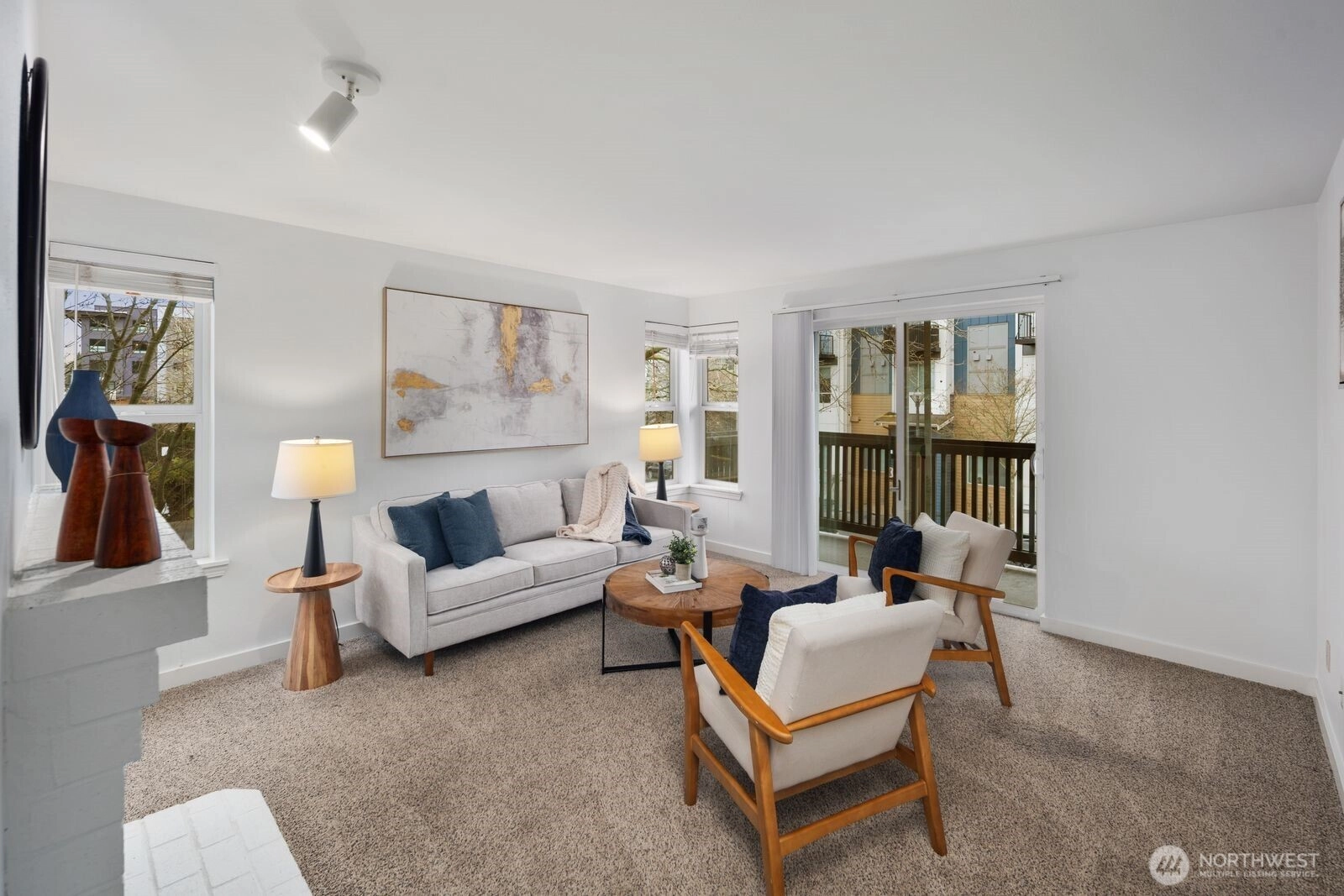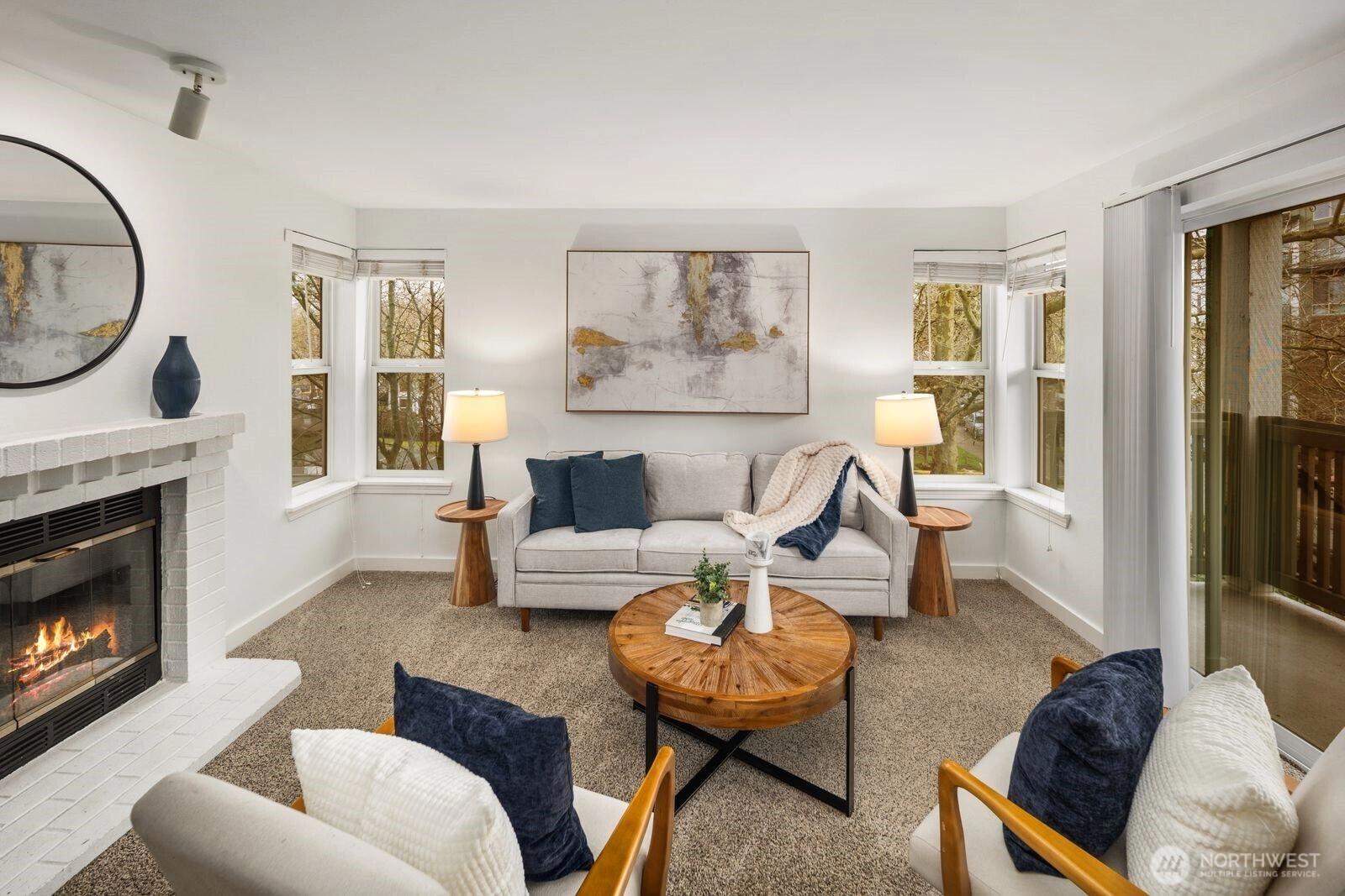 Discover this inviting 2-bedroom condo in the highly sought-after Coventry Place. Offering a perfect blend of comfort and convenience, this home is an incredible opportunity for homeowners and investors alike, thanks to the no rental cap policy. The interior is bright and move-in ready, featuring fresh interior paint throughout. The functional floor plan includes a spacious living area centered around a cozy wood-burning fireplace, while the private deck offers a quiet outdoor retreat and a convenient storage closet. For ultimate ease, the kitchen features stainless steel appliances, and a washer and dryer are included in-unit. Ideally located just off Bothell Way, this home puts you minutes away from premier shopping, dining, and the scenic shores of Lake Washington. Enjoy easy access to waterfront parks, trails, and outdoor recreation. Residents benefit from a well-managed HOA, with dues conveniently covering water, sewer, and garbage (WSG). The community provides resort-style amenities, including a clubhouse with a party room, a fully equipped gym, and a sparkling outdoor pool for summer relaxation. With its prime location near the lake, fresh updates, and inclusive HOA, this condo offers effortless living at its best.