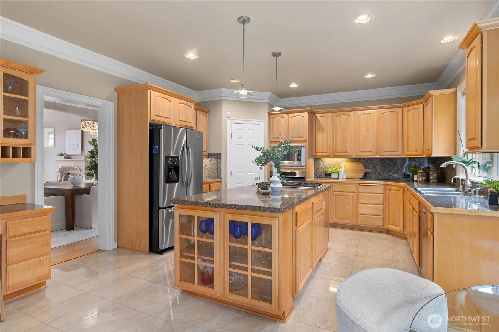 Set in the tranquil China Falls community, this 5-bedroom home offers space to grow and a location that elevates daily life. Soaring vaulted ceilings, a newer 2024 roof, and a thoughtfully refreshed exterior welcome you inside to a versatile main floor with formal living and dining areas, a dedicated home office, and an open-concept kitchen featuring stainless steel appliances and a large island with breakfast bar. The upper level hosts a private primary suite, three secondary bedrooms, and an oversized bonus room ready for work, fitness, or movie nights. Outside, enjoy a fully fenced backyard with room to relax or entertain, plus a 3-car attached garage and generator wiring for added security. Walk to China Falls Park and Redman Park, or hit the Cougar Mountain trail system just a block away. Minutes to I-90, I-405, shopping, dining, and golf, and located within the Issaquah School District—this is a home that supports both daily ease and long-term value.