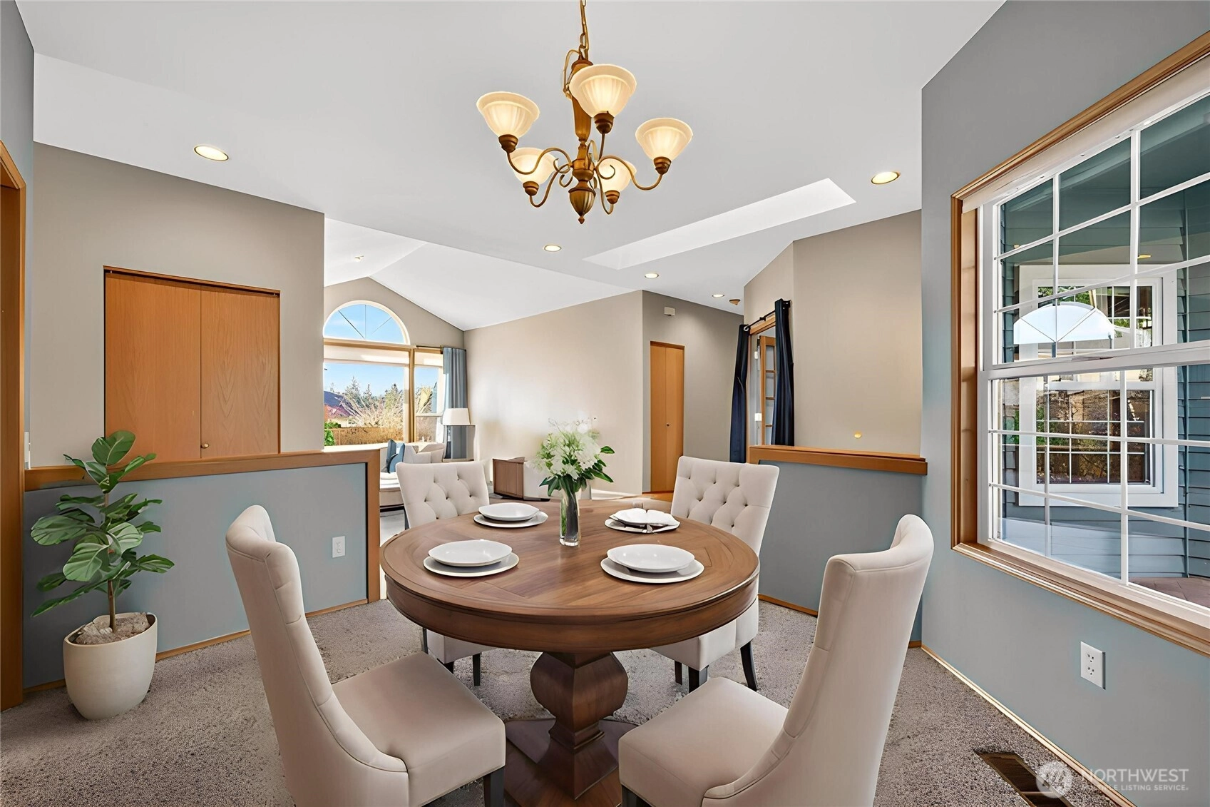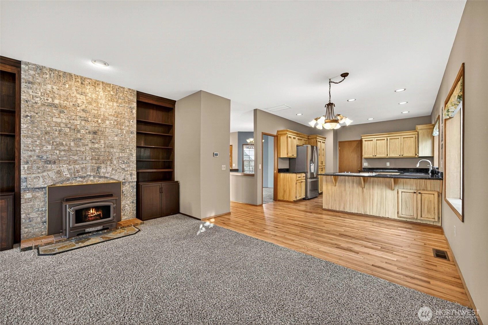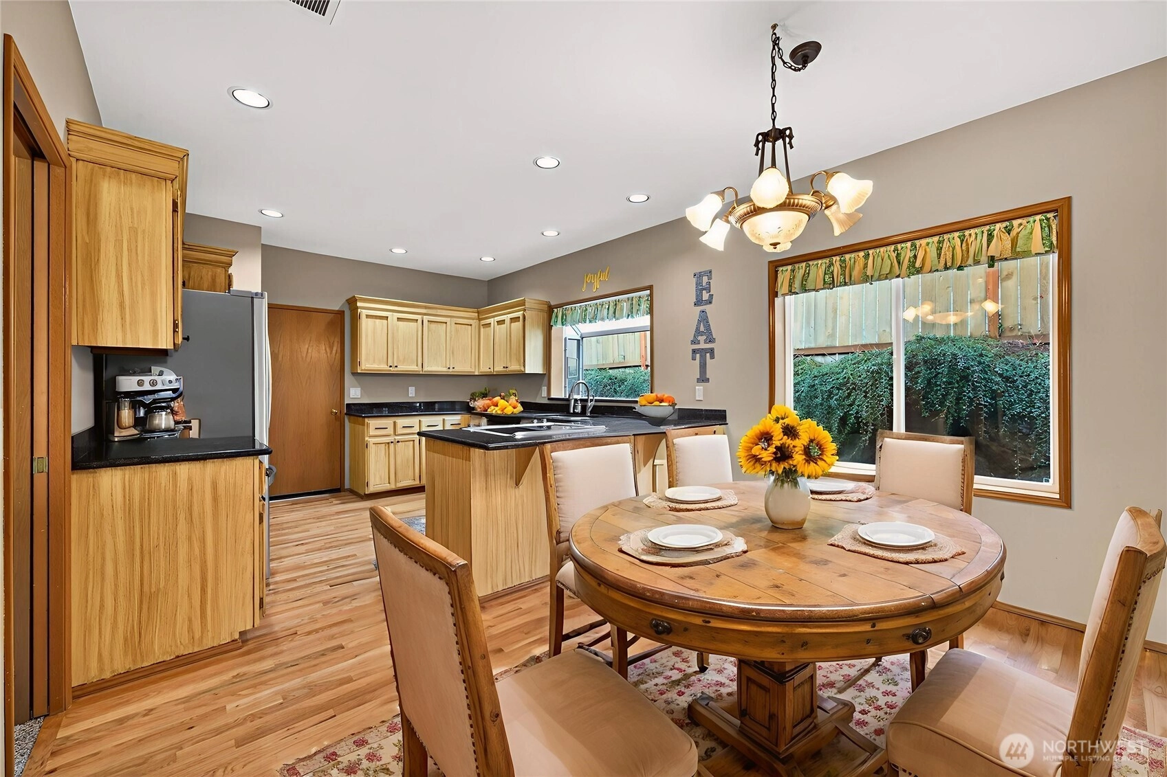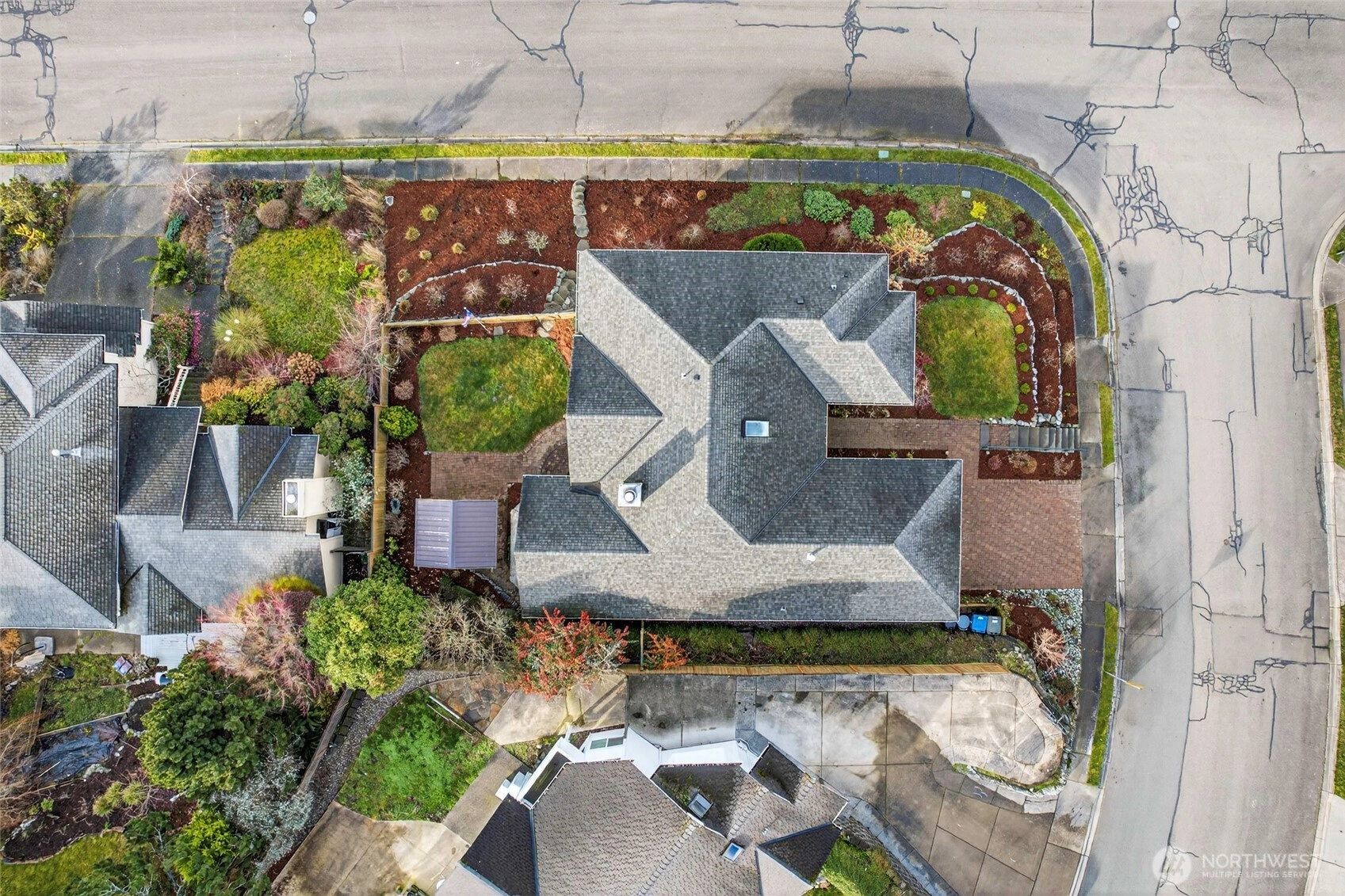 Commanding attention from a spacious corner lot w/ mature tiered gardens & a custom paver driveway, this Blue Ridge home is perfectly positioned to maximize sunlight & views. The functional single-level layout is bright, airy & inviting - an entertainer's dream! Vaulted ceilings, hardwood floors & abundant windows greet you, leading you into living spaces that flow effortlessly together for day-to-day ease or hosting gatherings of any size. Cooking is a joy in the spacious kitchen, equipped w/ granite countertops, newer stainless steel appliances, lots of storage space & bar seats to watch the chef at work. 3 bedrooms include a stately primary & a 5-piece ensuite bath. No shortage of storage here: between the oversized garage & all the smart built-ins throughout the home, everything has its place here. Outside, a large patio basks in sunshine & overlooks the tranquil fenced backyard. Abundant parking & GenTran generator make life easy while an efficient heat pump & A/C keep you comfortable. Quiet, peaceful location moments away from parks, dining & amenities in both Lynnwood & Edmonds!