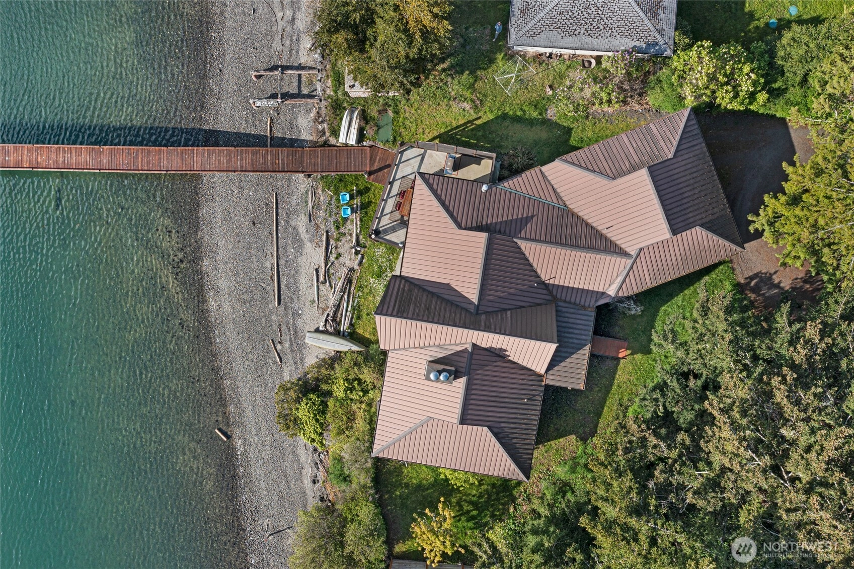 Elegant waterfront home on Mitchell Bay offering breathtaking views and a serene island lifestyle. This 2-bedroom, 2.5-bath residence features vaulted ceilings, exposed beams, and expansive windows that fill the space with natural light and frame the bay. The open layout flows seamlessly to an outdoor patio—perfect for relaxing or entertaining. Enjoy a private deep-water dock with low-bank beach minutes from Snug Harbor and State and National Parks. Ideal location for boating enthusiasts, with some of the island’s best crabbing and fishing spots and quick boat access to British Columbia. Whether you’re seeking a full-time home or a vacation getaway, this is a rare opportunity on San Juan Island. Active vacation rental permit.