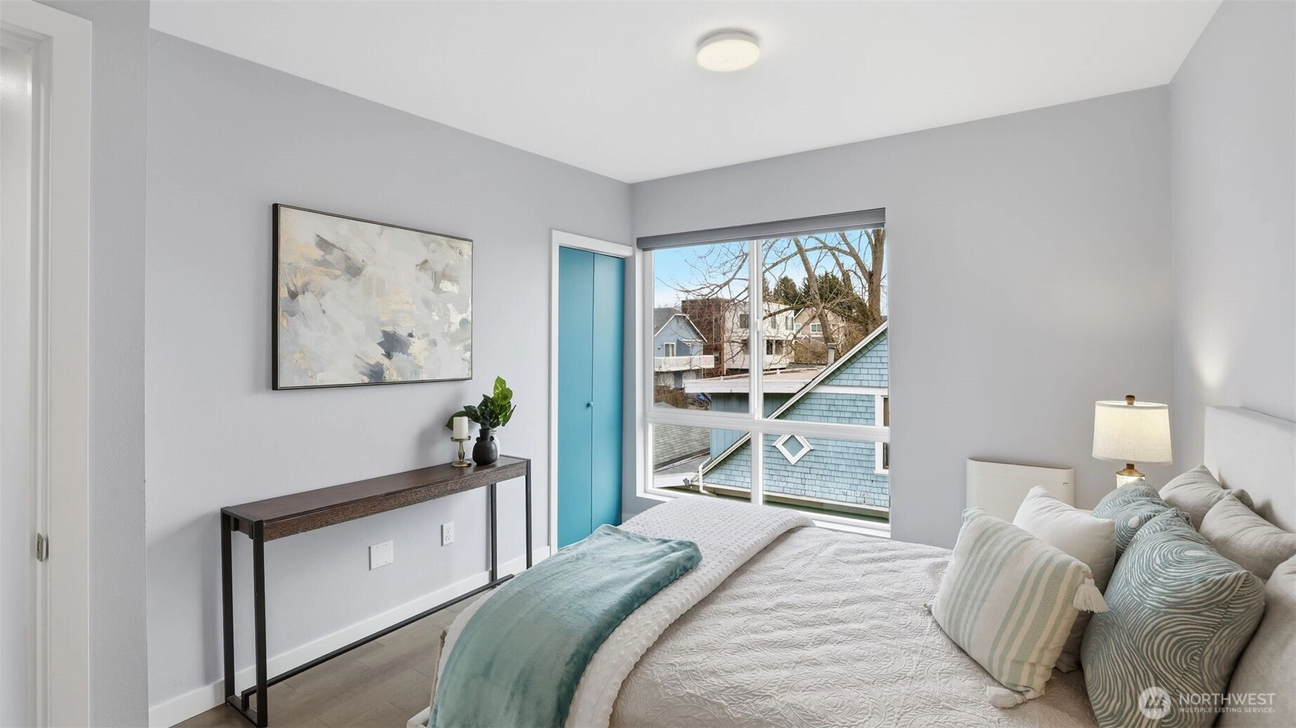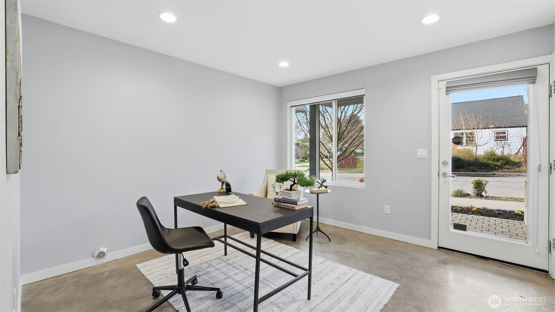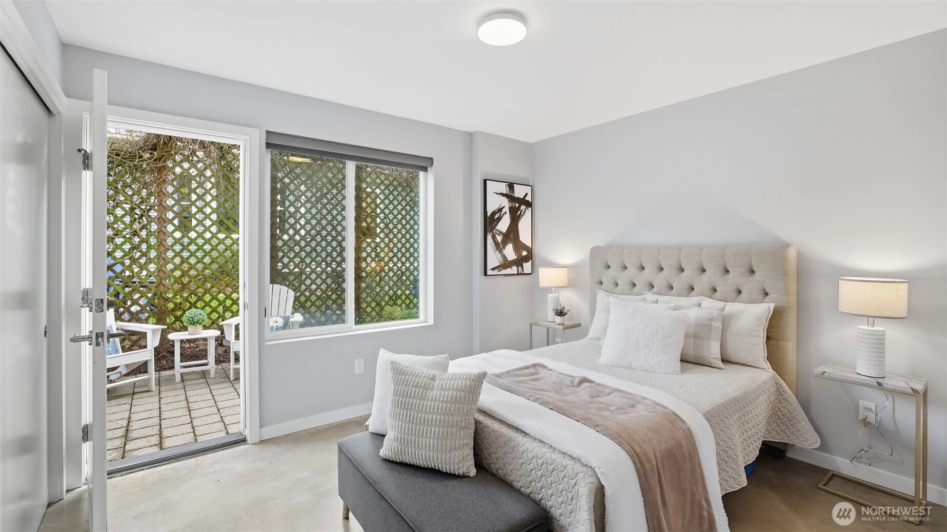 This roomy 3 level townhome is well located between Ballard and Loyal Heights just off 24th Ave NW. The 1440 SF of living space is expanded with an upper level 206 SF deck area providing an area for al fresco dining, entertaining or simply offering a private area with a view of DT SEA, Lk Union and Mt Rainier. The street level entry opens to a roomy den and a large BR with priv. patio. A full BA serves both areas. The 2nd level serves as the main living area with a "great room concept" combining the kitchen with counter seating, a dining area and living room area offering a spacious gathering area. The primary suite is located on the upper level with ensuite BA. One private parking spot with plentiful off street parking available. There is no HOA.