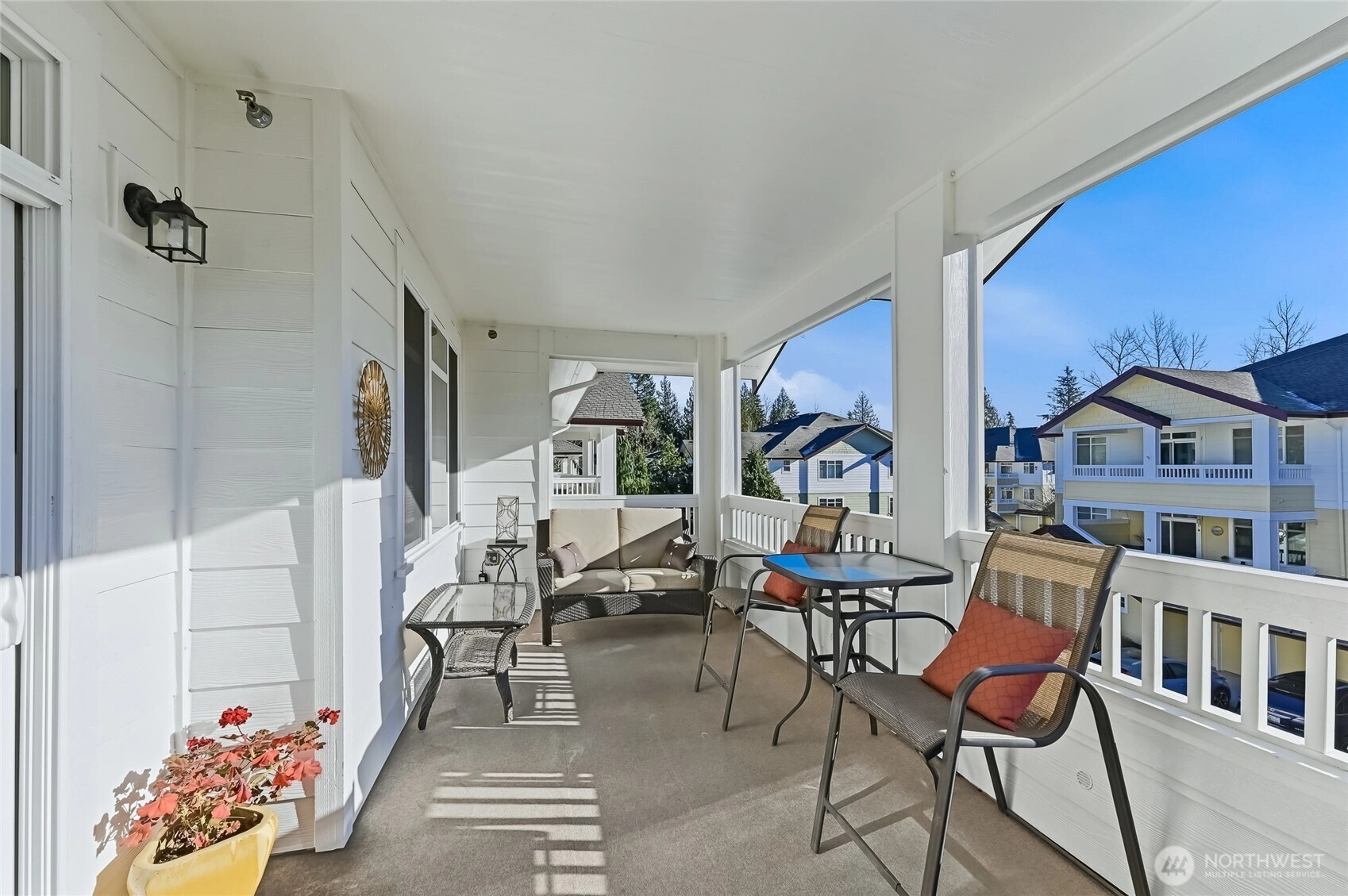 BETTER THAN NEW! Beautifully updated in 2022 this 3-bedroom top floor, corner unit is freshly appointed with today’s hottest finishes, designer colors and quality appliances. Gorgeous Luxury Vinyl Plank flooring and new paint flow throughout this light filled home (no carpet). The updated kitchen is truly a Chef’s Kiss with new quartz counters, custom backsplash, under cabinet lighting and newer SS appliances. Primary suite with beautiful, updated ensuite bath features a step-in shower, large vanity with quartz counters and a walk-in closet. The additional 2 bedrooms provide flexible bedroom, office or TV room options. They share a tastefully updated bath that can create a 2-bedroom guest suite for your long, or short term, guests. The spacious, south facing covered deck with sweeping territorial and big sky views is ideal for year-round BBQs, outdoor dining or just relaxing on a summer afternoon. In-unit laundry center with full sized, newer W&D. Private garage with direct access into the secure building plus an additional outdoor parking space. Elevator building has ZERO STAIRS. Meticulously maintained complex with plenty of guest parking and a lovely community garden and gathering space. HOA dues cover water, sewer garbage, building and elevator maintenance. Bring your four-legged friends, this is a pet friendly complex. Mere blocks to QFC, Starbucks, restaurants, shops, golf and the Redmond Ridge trail system. Sundance Glen is a 55+ community.