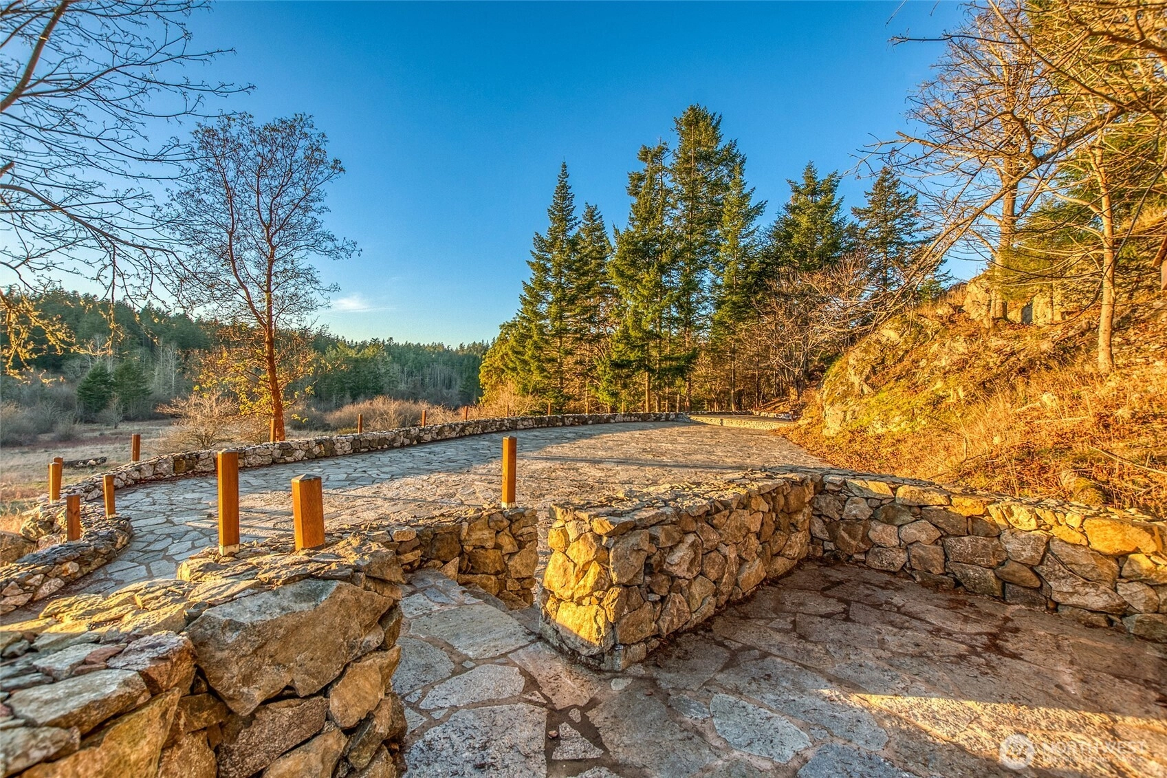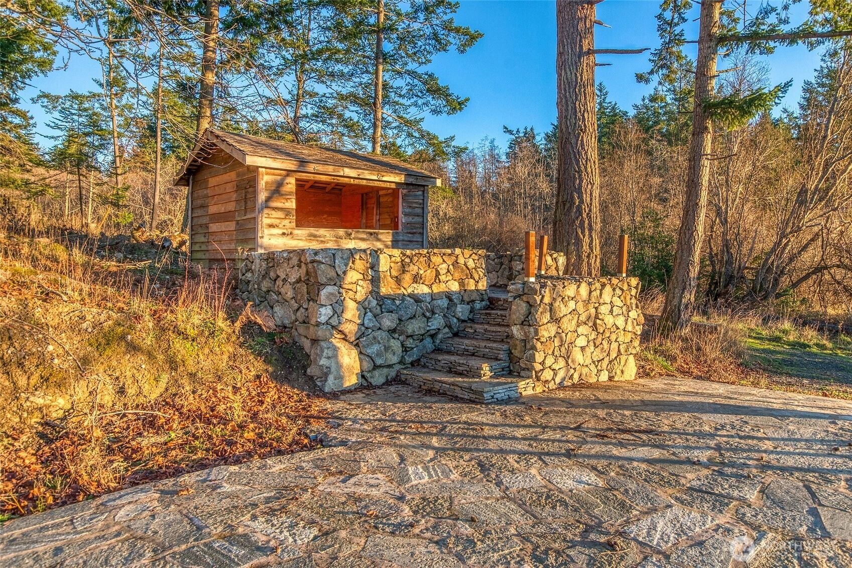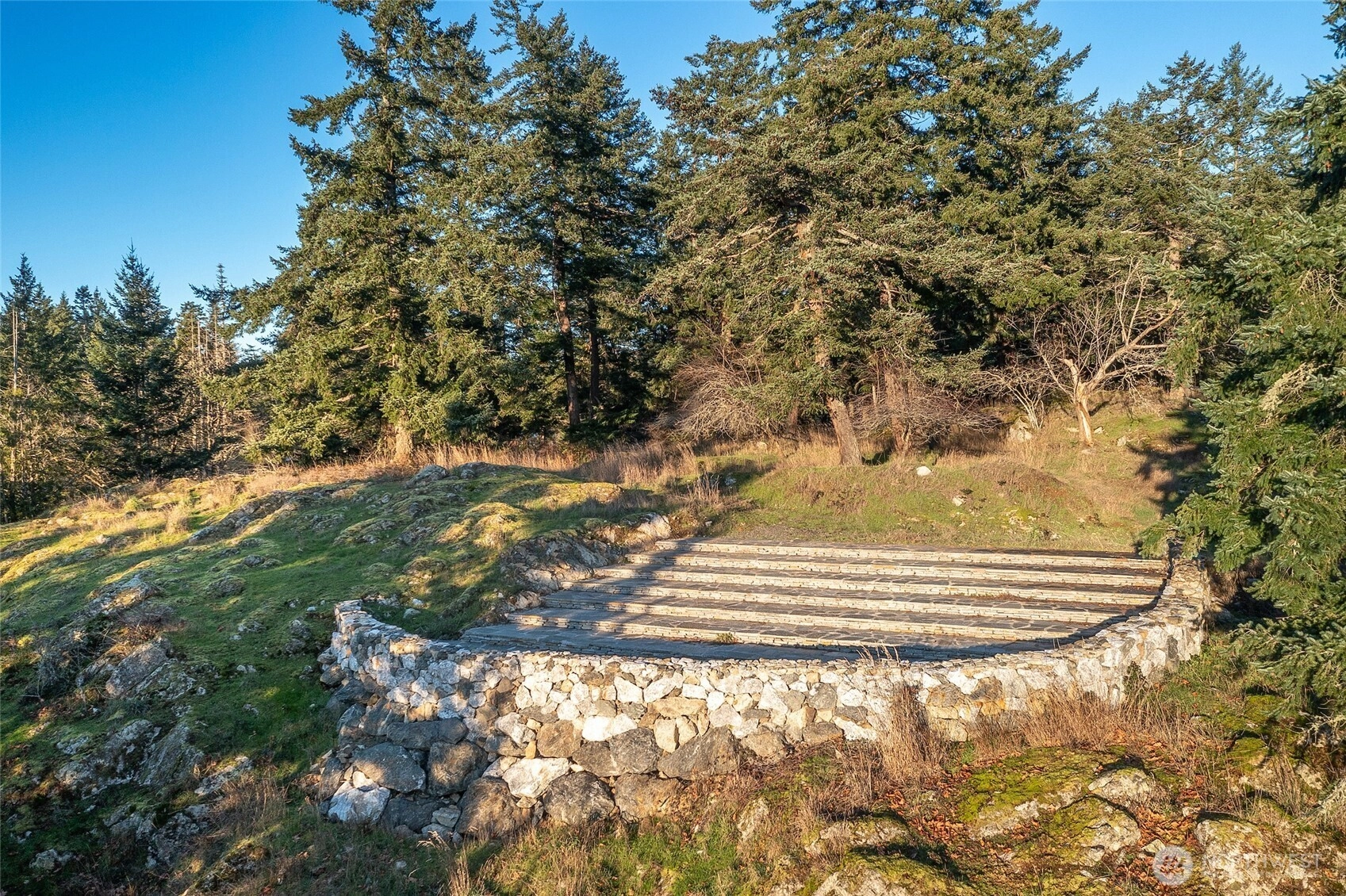 Rare 27+ acre waterfront offering in the heart of sunny Deer Harbor. This exceptionally private property features an elevated building site with commanding southwestern views over Cayou Valley and Deer Harbor. Approximately 1,500± feet of estuary waterfront plus tidelands are complemented by surrounding forestland and open grassy areas. Craftsman-built stone walls frame the entrance and patio areas, including a beautifully constructed stone terrace designed to take in sweeping estuary and meadow views, ideal for outdoor gathering and entertaining. Power is available on the property, along with water from a shared, highly productive well. A San Juan County Land Bank conservation easement protects this iconic and historically significant property while allowing for construction of a single-family residence or multi-room inn on the expansive plateau. Enjoy majestic sunsets, abundant wildlife, hiking opportunities, access to marinas and seasonal seaplane service, all via county-maintained Deer Harbor Road. Adjoining property to the south is in conservation and not buildable (not included).