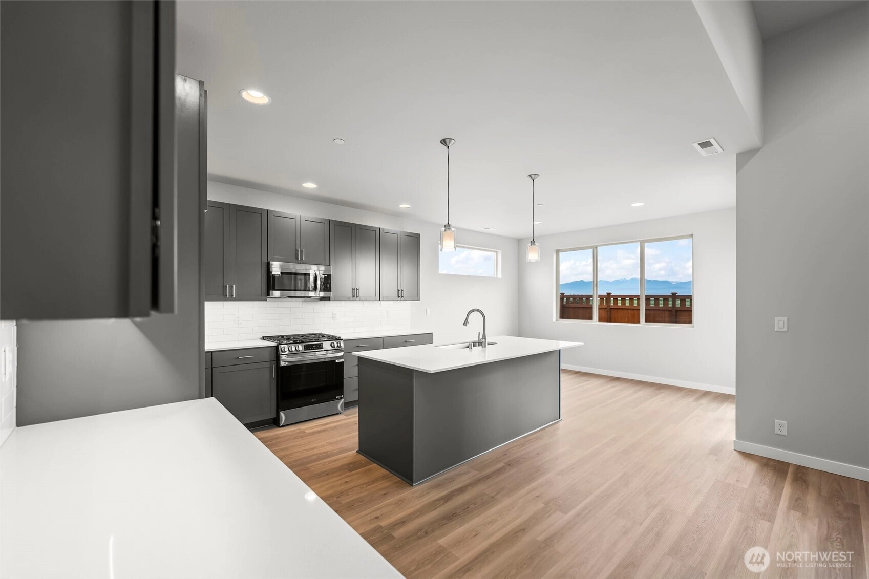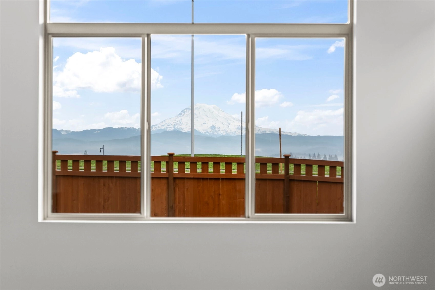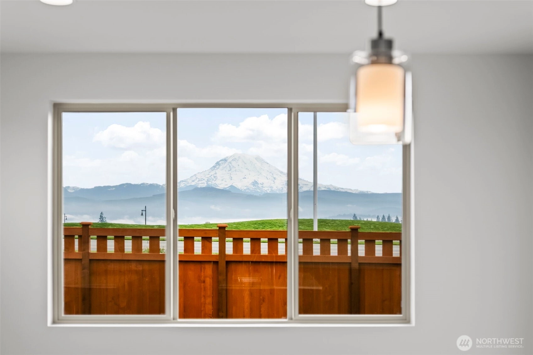 Welcome to the Junco Plan by Conner Homes - where sweeping Mt. Rainier views greet you at the door & extend throughout the main living areas. This thoughtfully designed 4-bedroom, 2.75-bath home offers a desirable main-level bedroom w/¾ bath—ideal for guests, multi-generational living or a private home office. Open-concept great room showcases soaring 12-ft ceilings, expansive windows framing the mountain & floor-to-ceiling tile linear electric fireplace. The kitchen features stainless steel appliances including a 5-burner gas range, quartz counters, full-height tile backsplash, under-cabinet lighting & a spacious walk-in pantry. Upstairs, an oversized loft provides flexible space for recreation or relaxing. The primary suite is a true retreat w/unobstructed Mt. Rainier views, offering peaceful mornings & unforgettable sunsets. The attached bath includes dual undermount sinks, a freestanding soaking tub, tile shower & walk-in closet. Residents enjoy access to the newly completed clubhouse w/fitness center, pools, hot tub & 24+ acres of parks & walking trails. Experience the Conner Difference—exceptional move-in-ready homes w/impeccable craftsmanship, designer finishes & premier view locations. Locally owned & operated, Conner Homes has been building quality homes in the Pacific NW for over 65 years. Smart Savings Event! $30K Incentive w/Trusted Lender on Move-in ready homes. Must close by March 31st to receive the incentive, Ltd time, subj to change, terms/conditions apply.