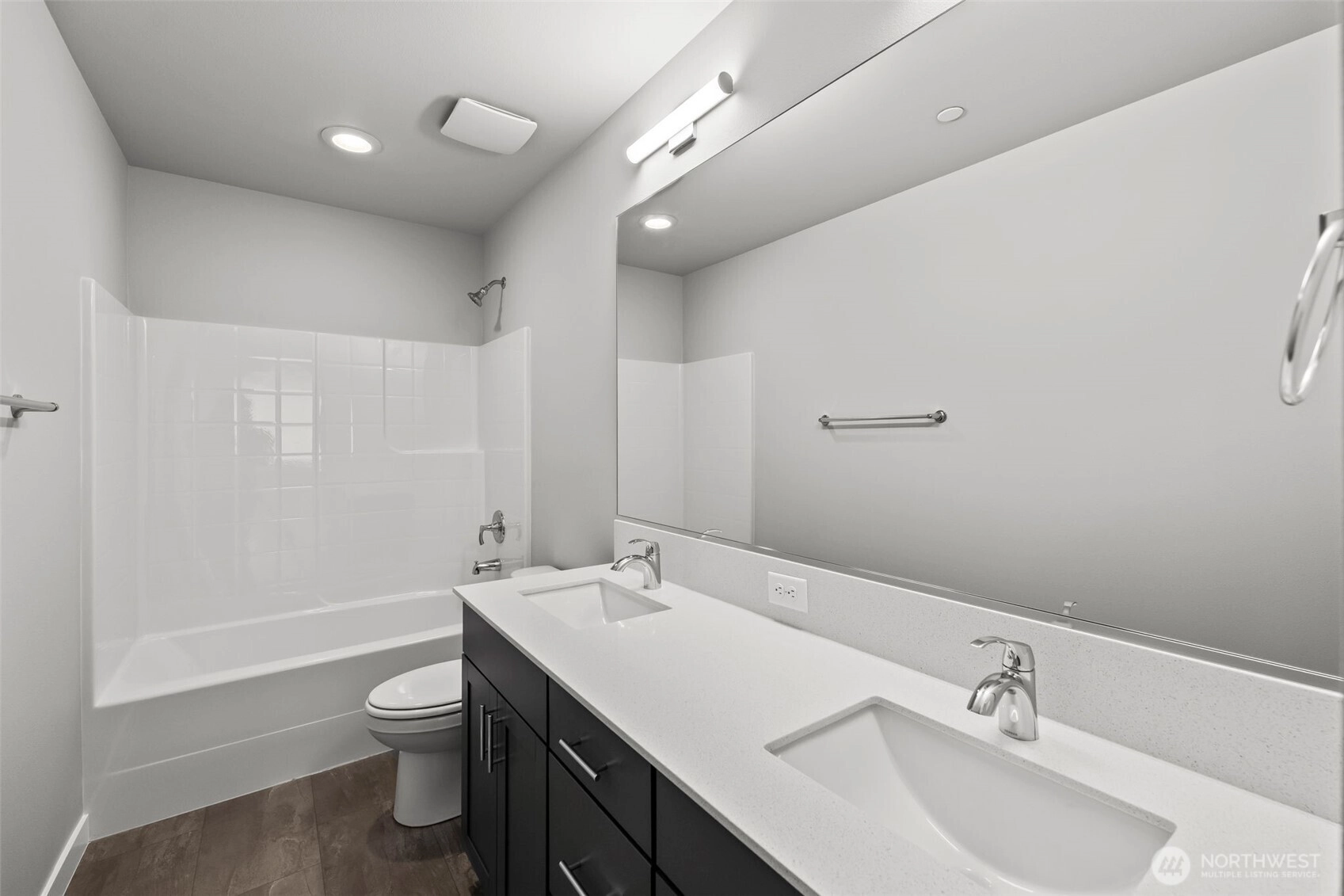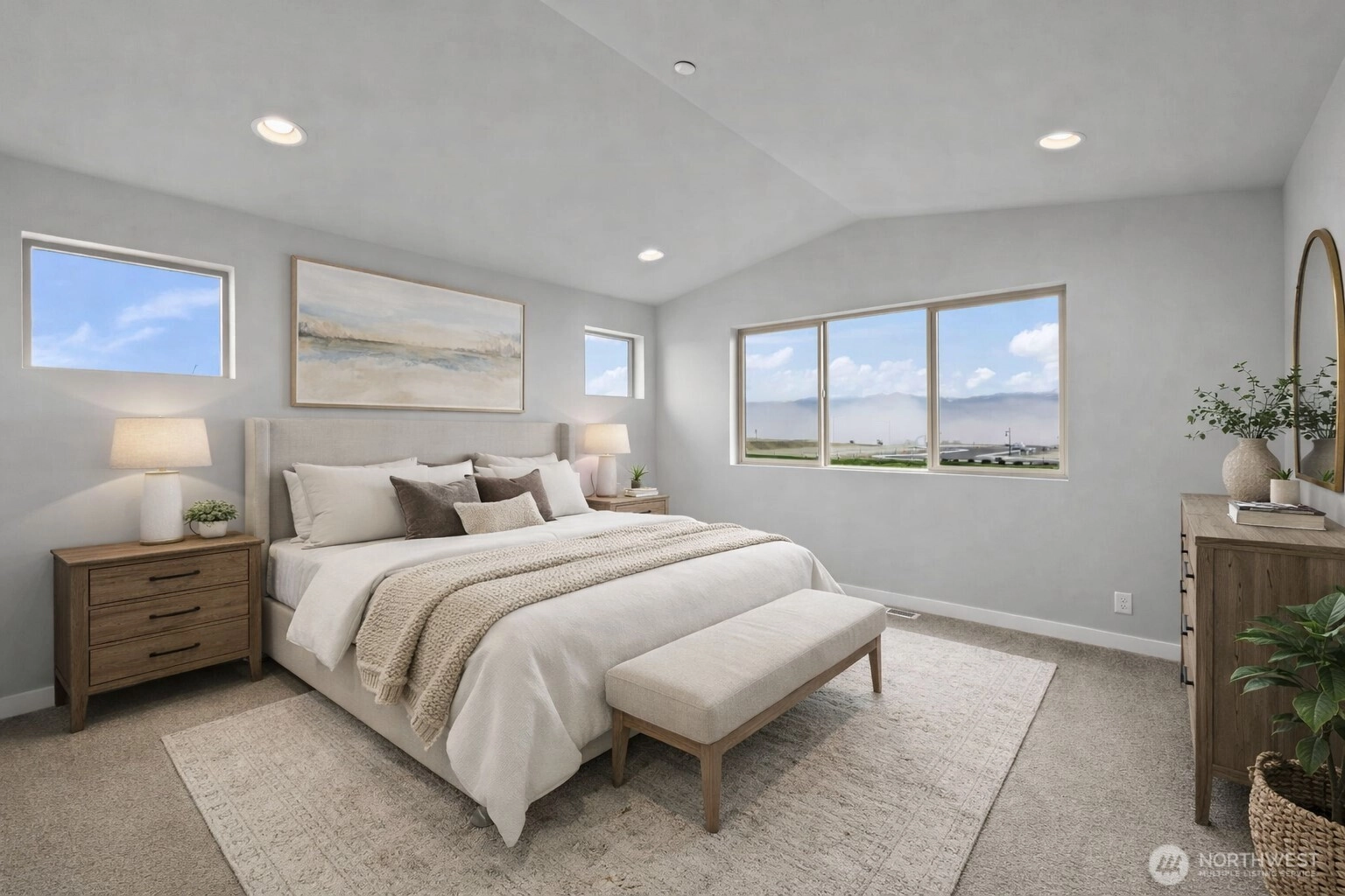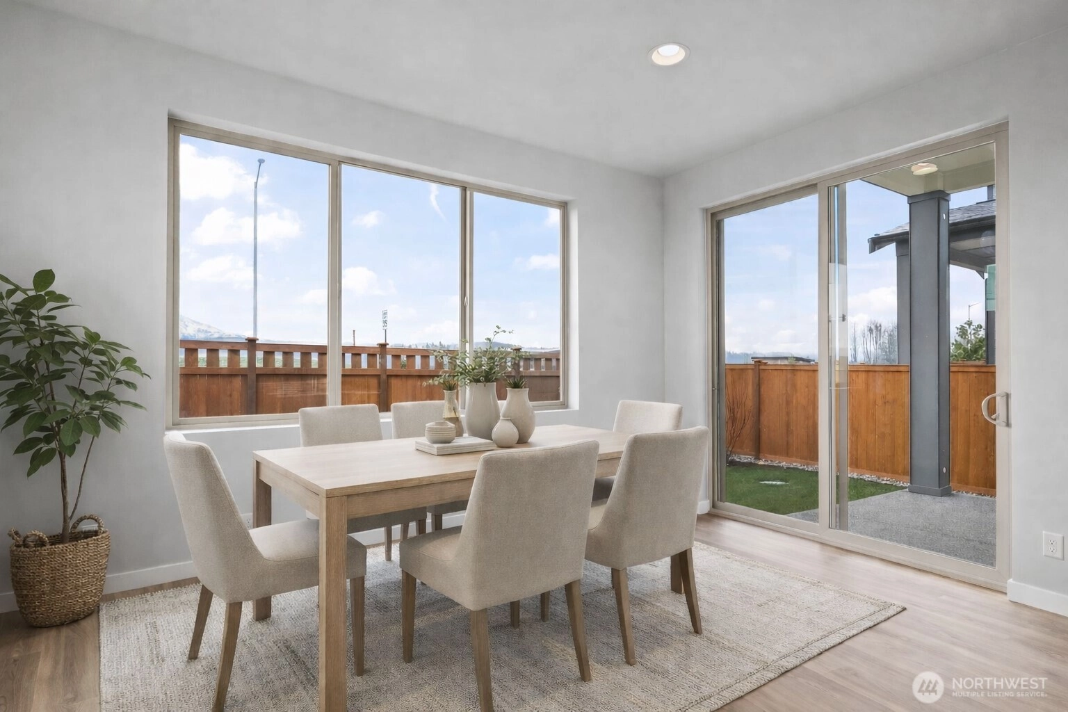 Welcome to the Junco Plan by Conner Homes - where sweeping Mt. Rainier views greet you at the door & extend throughout the main living areas. This thoughtfully designed 4-bedroom, 2.75-bath home offers a desirable main-level bedroom w/¾ bath—ideal for guests, multi-generational living or a private home office. Open-concept great room showcases soaring 12-ft ceilings, expansive windows framing the mountain & floor-to-ceiling tile linear electric fireplace. The kitchen features stainless steel appliances including a 5-burner gas range, quartz counters, full-height tile backsplash, under-cabinet lighting & a spacious walk-in pantry. Upstairs, an oversized loft provides flexible space for recreation or relaxing. The primary suite is a true retreat w/unobstructed Mt. Rainier views, offering peaceful mornings & unforgettable sunsets. The attached bath includes dual undermount sinks, a freestanding soaking tub, tile shower & walk-in closet. Residents enjoy access to the newly completed clubhouse w/fitness center, pools, hot tub & 24+ acres of parks & walking trails. Experience the Conner Difference—exceptional move-in-ready homes w/impeccable craftsmanship, designer finishes & premier view locations. Locally owned & operated, Conner Homes has been building quality homes in the Pacific NW for over 65 years. Smart Savings Event! $30K Incentive w/Trusted Lender on Move-in ready homes. Must close by March 31st to receive the incentive, Ltd time, subj to change, terms/conditions apply.