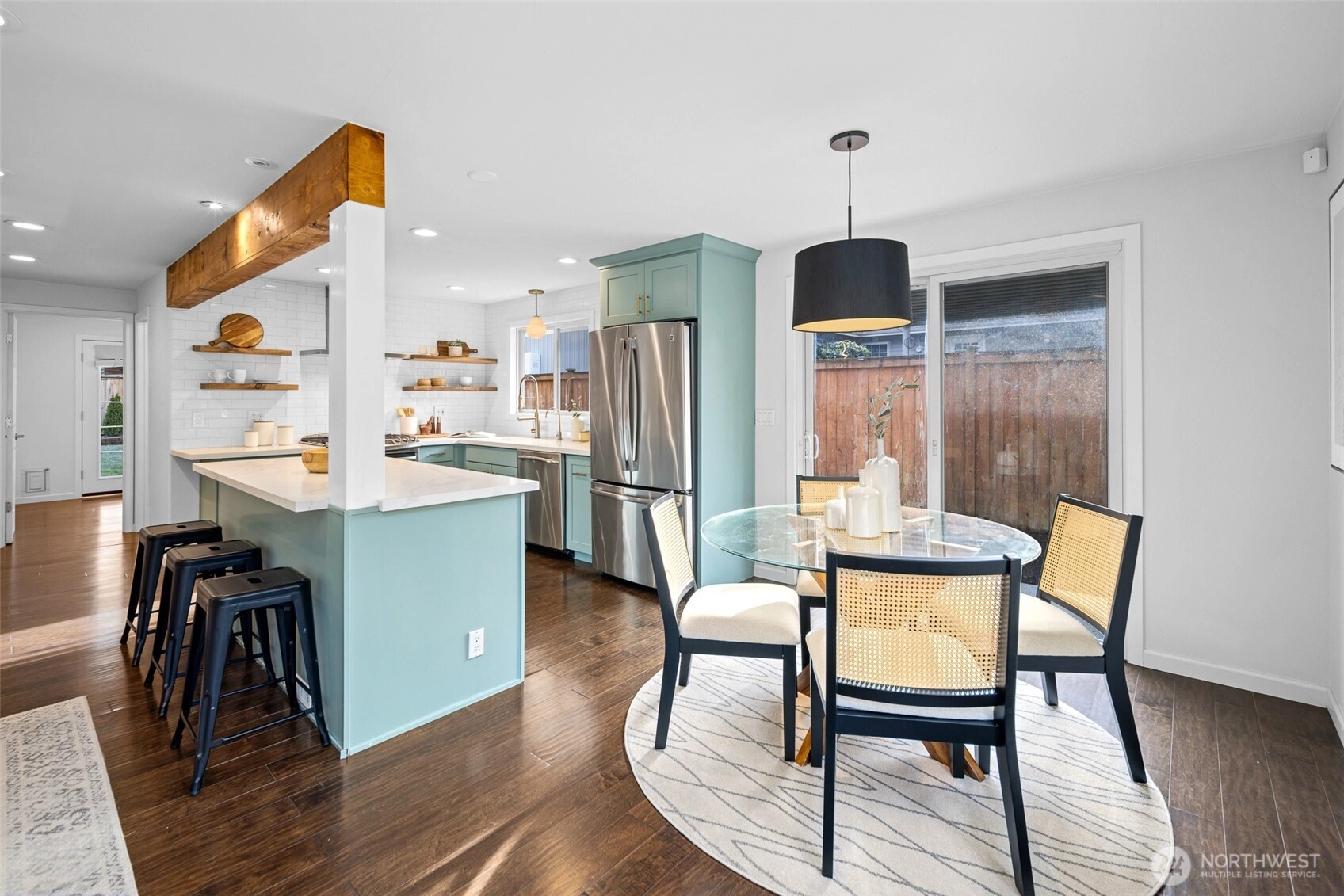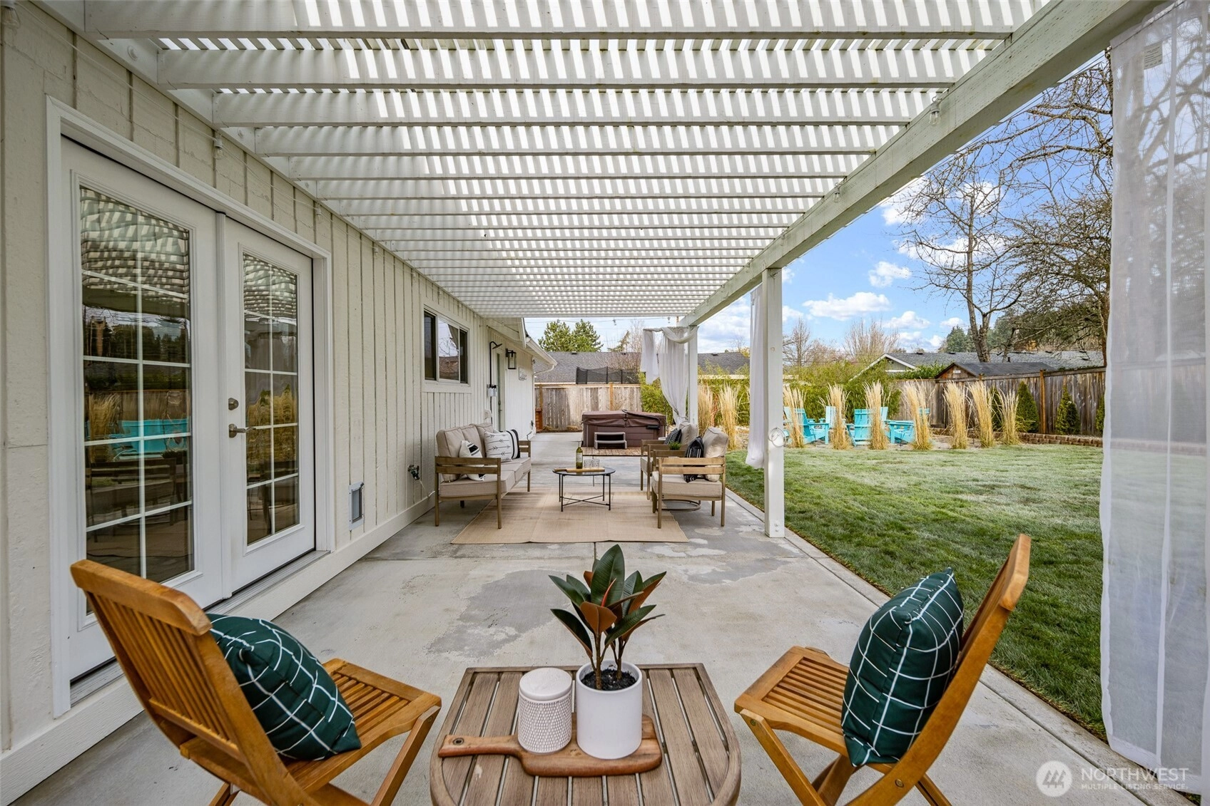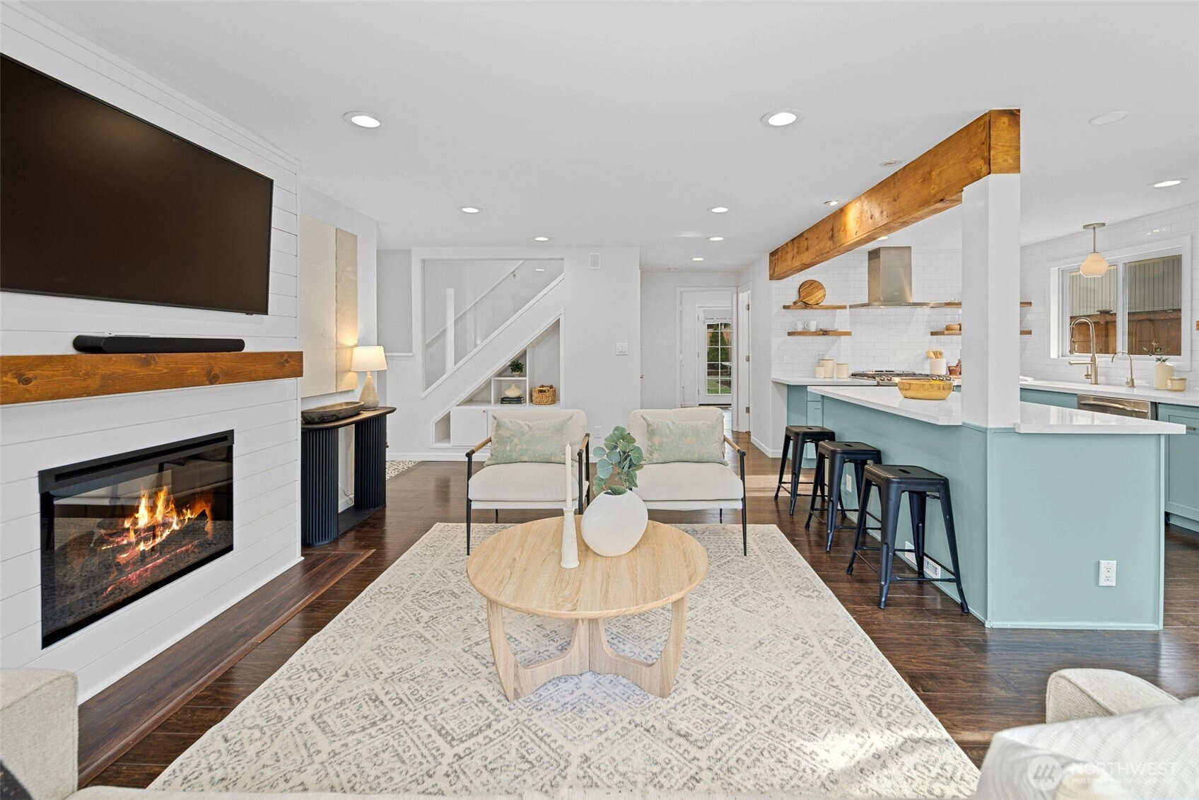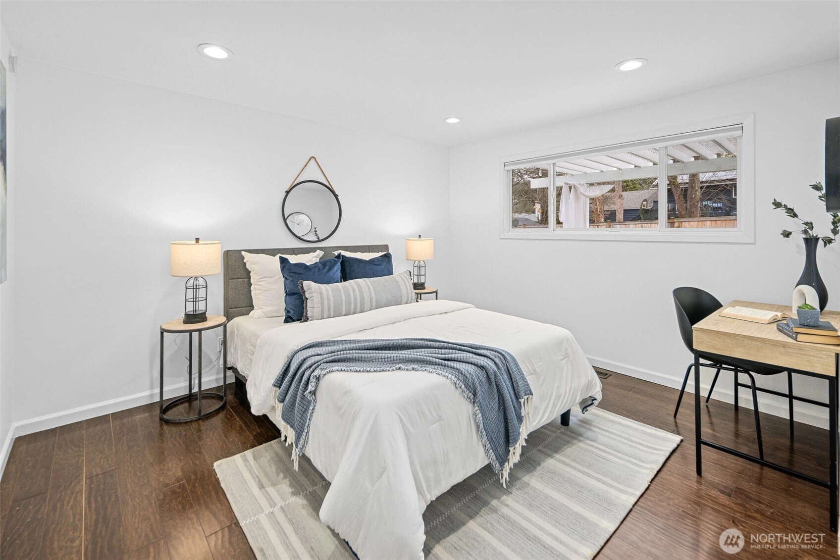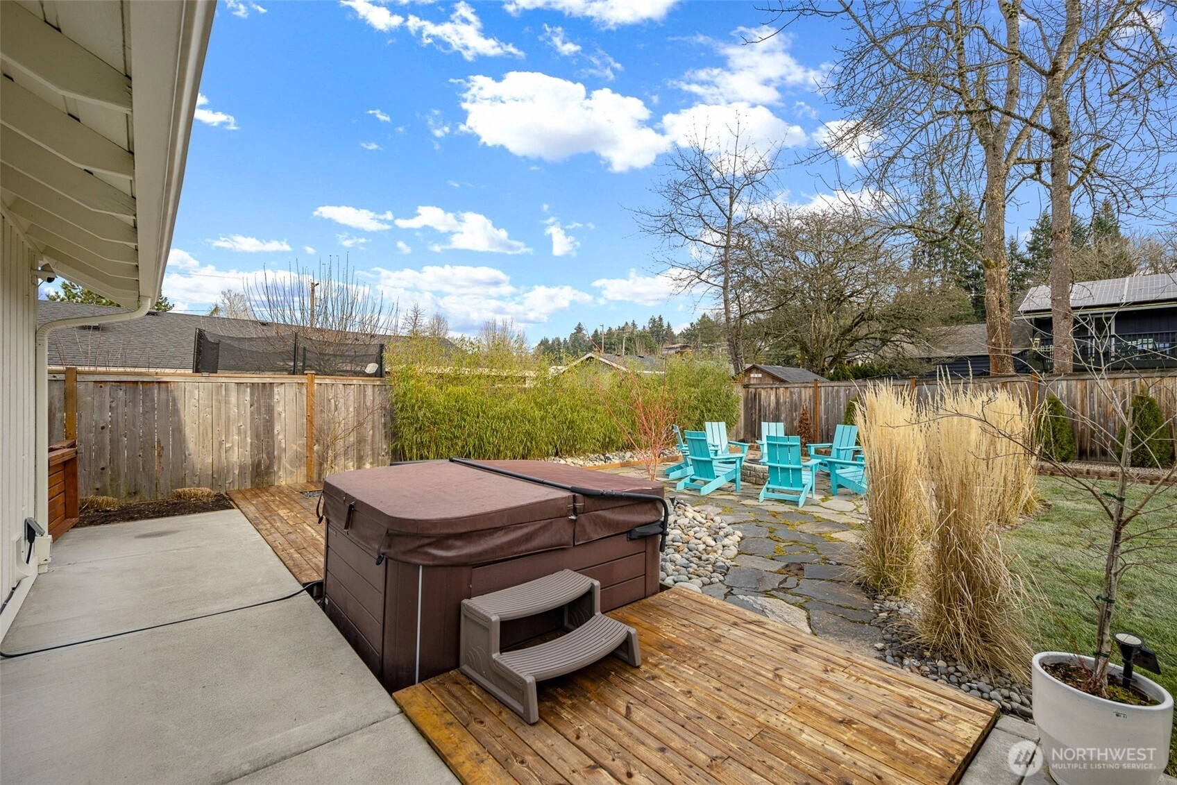 This beautifully finished Mercer Island home delivers an exceptional blend of light, space, and livability. Extensively updated for modern living, this home features two main floor bedrooms and two upstairs bedrooms, with a convenient 3/4 bathroom on each floor. The open-concept kitchen, living, and dining areas create a seamless flow that works equally well for everyday living and entertaining. French doors from one of the main floor bedrooms and sliding doors from the dining area extends the living space outdoors to a thoughtfully designed private and fully fenced backyard, level lawn, trellised patio, fire pit, and hot tub, ideal for gatherings or quiet evenings at home. The primary suite upstairs features soaring vaulted ceilings that add volume and character, while natural light fills the home throughout the day. Every space feels intentional, balanced, and comfortable, with a layout that truly lives larger than the square footage suggests. The front yard is beautifully manicured and complemented by a wraparound deck that enhances both curb appeal and usability. Located just steps away from Mercerdale Park with playground and tree lined walking trails, a short walk to bus stops, and just minutes from downtown Mercer Island, with access to top-tier schools, this home offers a rare combination of privacy, style, and location in one of the island’s most desirable settings. Offers reviewed Thursday February 4th at 2pm. Inspection available.