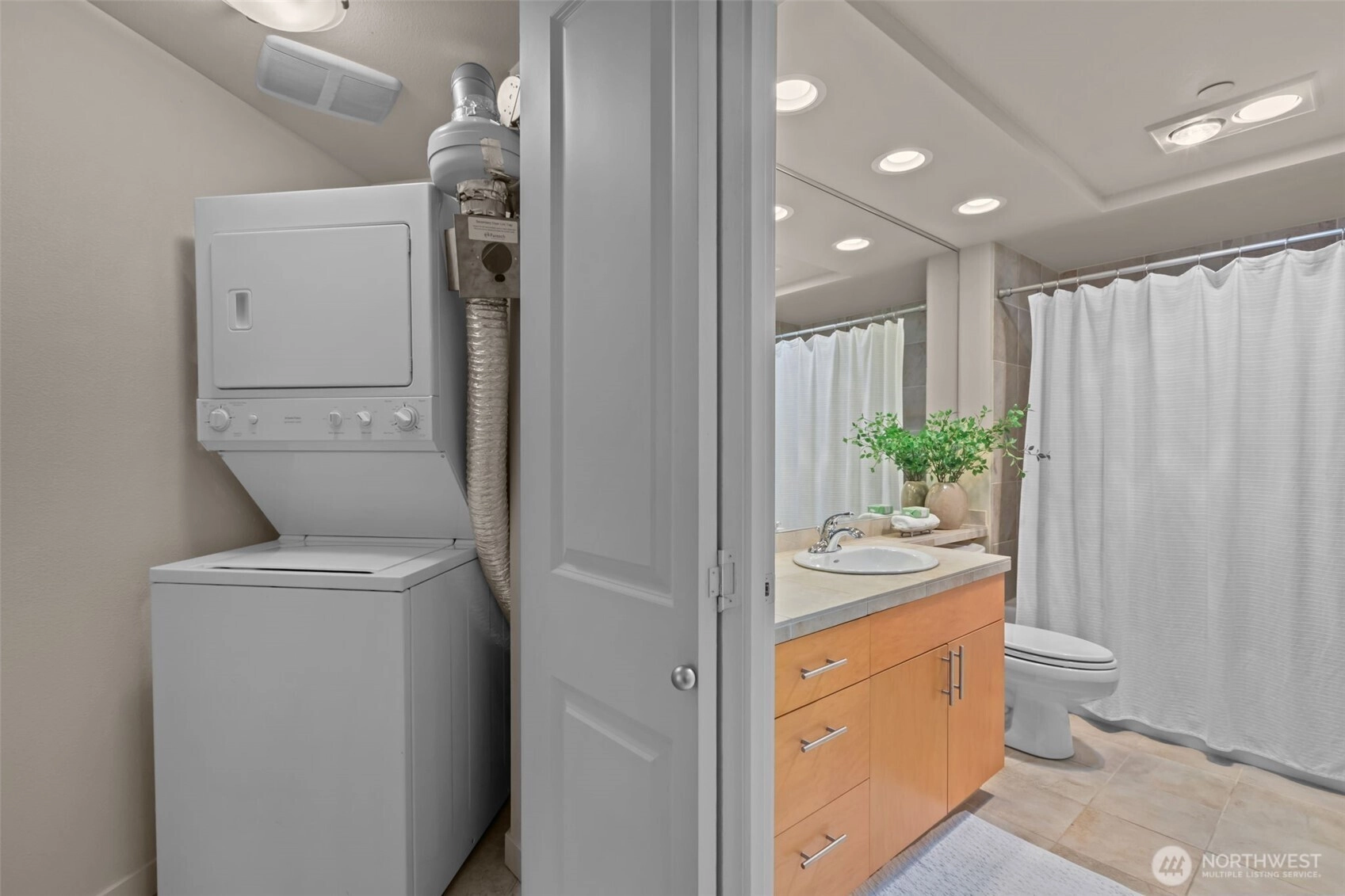 Oh hi! I’m your front-row seat to the quintessential Ballard lifestyle. You’ll find me 4 floors high in Canal Station, where coffee shops, iconic dining, cute boutiques, and the Sunday Farmers Market are just steps away. My bright open living space welcomes you home after a day of urban exploration. Enjoy an en-suite primary bath, walk-in closets in both bedrooms, and a spacious kitchen with stainless steel appliances and bar seating. Westerly light pours in, leading to my private balcony. I’m freshly updated with new carpet, offer in-unit laundry, and great storage! With a Walk Score of 97, you can leave the car in my conveniently located garage space on P1. Live easy in a well-run, pet-friendly HOA complete with a concierge, fitness center, jacuzzi, and sauna. Having no rental cap (90 day minimum lease term) and well-funded reserves means you have the ultimate flexibility and peace of mind. I can't wait to meet you!