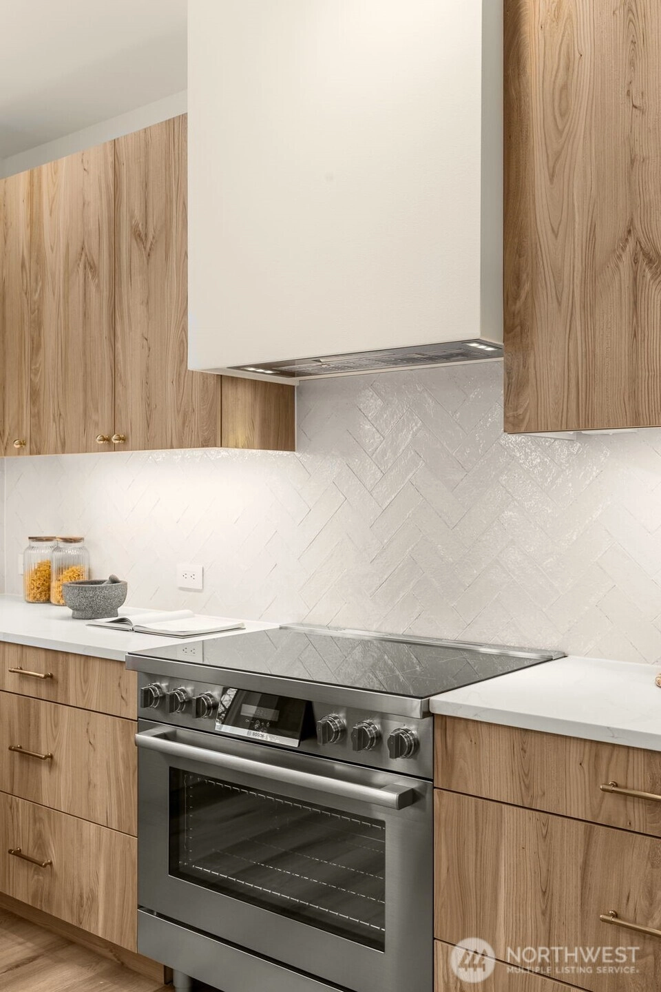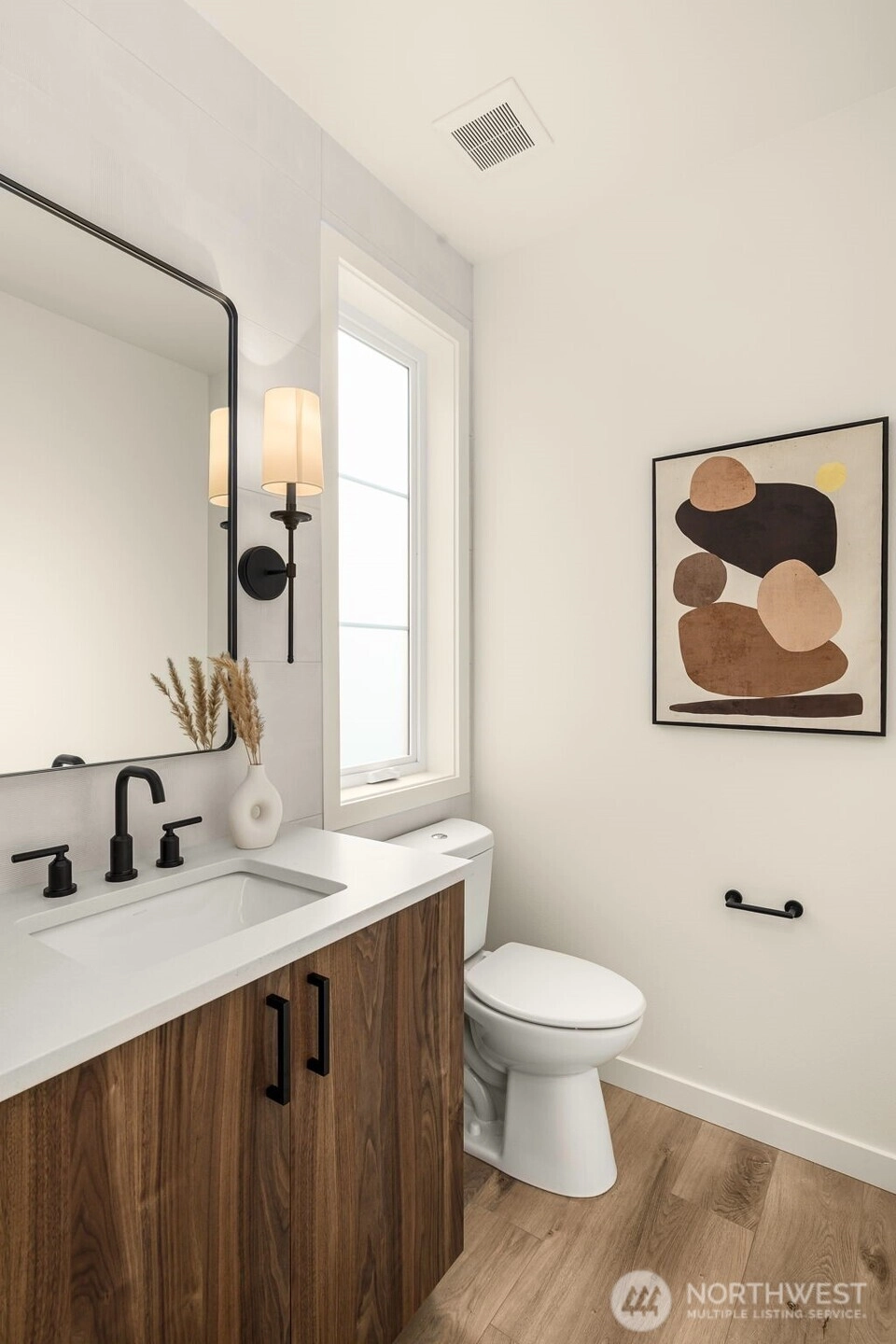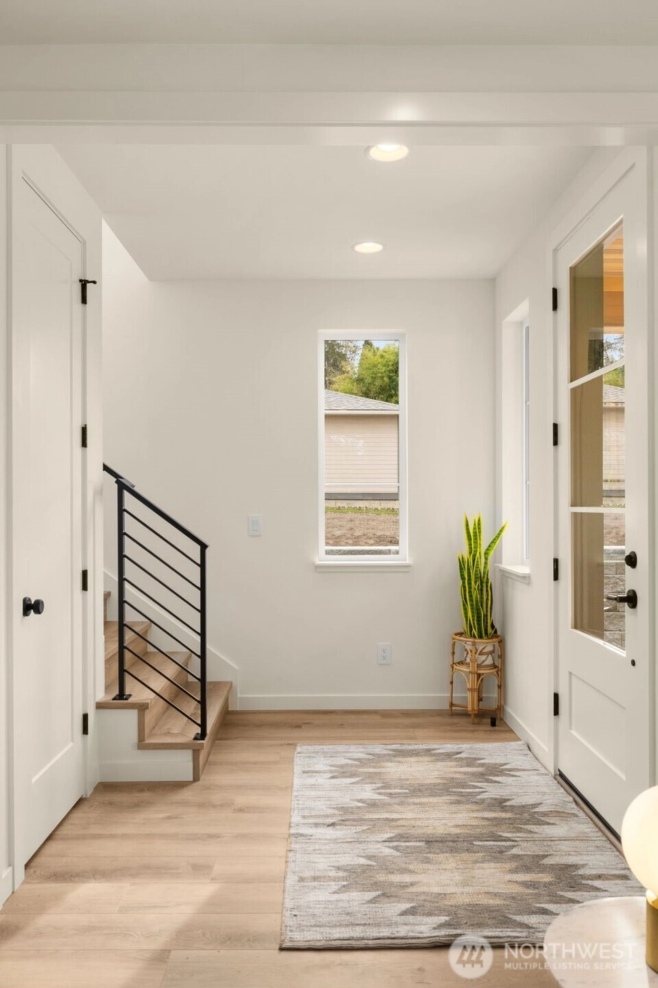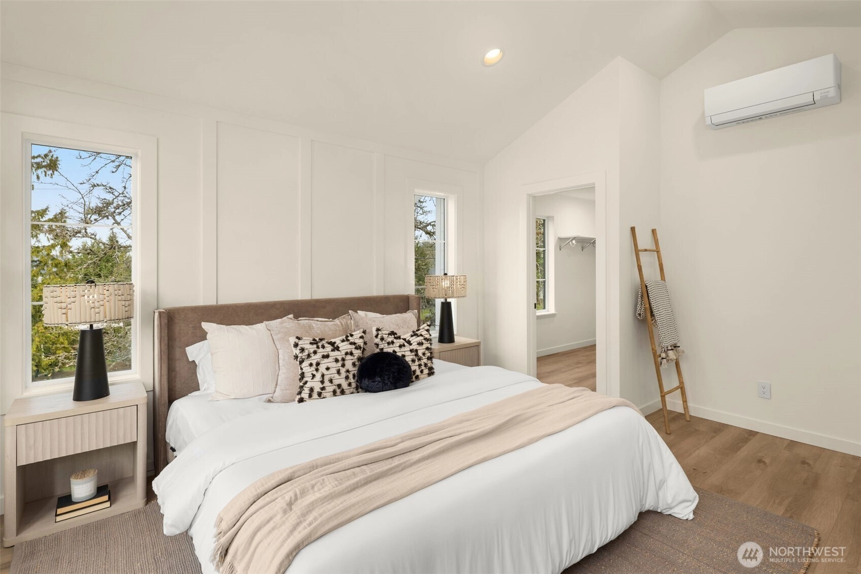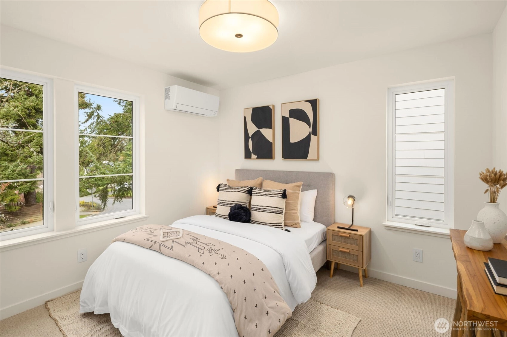 Modern design meets thoughtful craftsmanship in this newly built home by Mirra Homes, offering a bright, open layout designed for both everyday living and entertaining. The main level flows seamlessly from the living and dining areas into a kitchen, creating a space that feels open, functional, and inviting. Wide-plank hardwoods, clean architectural lines, and curated finishes carry throughout the home, reflecting quality construction and attention to detail. The kitchen serves as the heart of the home, featuring a generous island, Calacatta quartz countertops, custom Bellmont cabinetry, and Bosch appliances, including a 36” induction range. A dedicated wine and beverage center adds both style and convenience, making the space ideal for hosting, casual gatherings, or quiet evenings at home. Upstairs the primary suite offers a peaceful retreat with designer finishes, a spacious closet, and a spa-inspired bath with heated floors and thoughtfully selected tile. Two additional bedrooms provide flexibility for guests, a home office, or creative space, while a full bath and upper-level laundry room add everyday ease. Outside, enjoy the outdoor patio area perfect for relaxing or entertaining. Includes a 1-car garage and one designated parking space plus both parking garage/space are EV ready. Located minutes from DT Kirkland, parks, dining, waterfront access, major commuter routes, this home modern living with an established neighborhood feel.