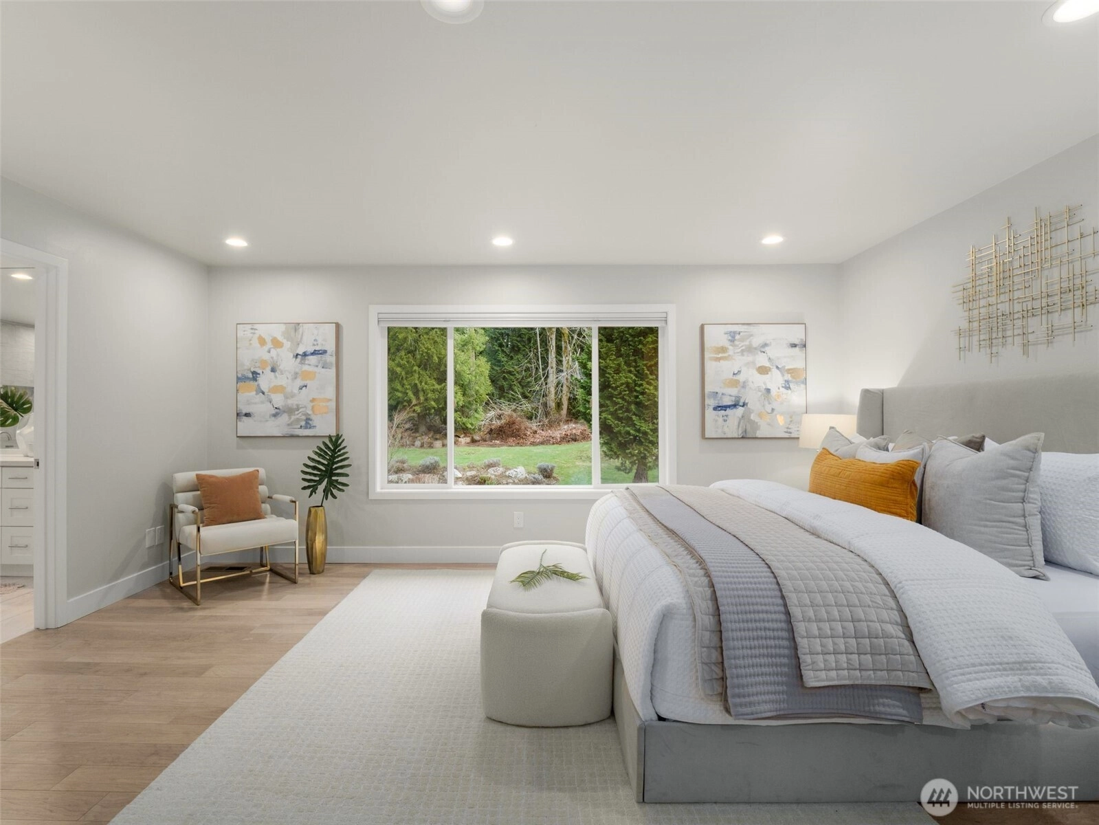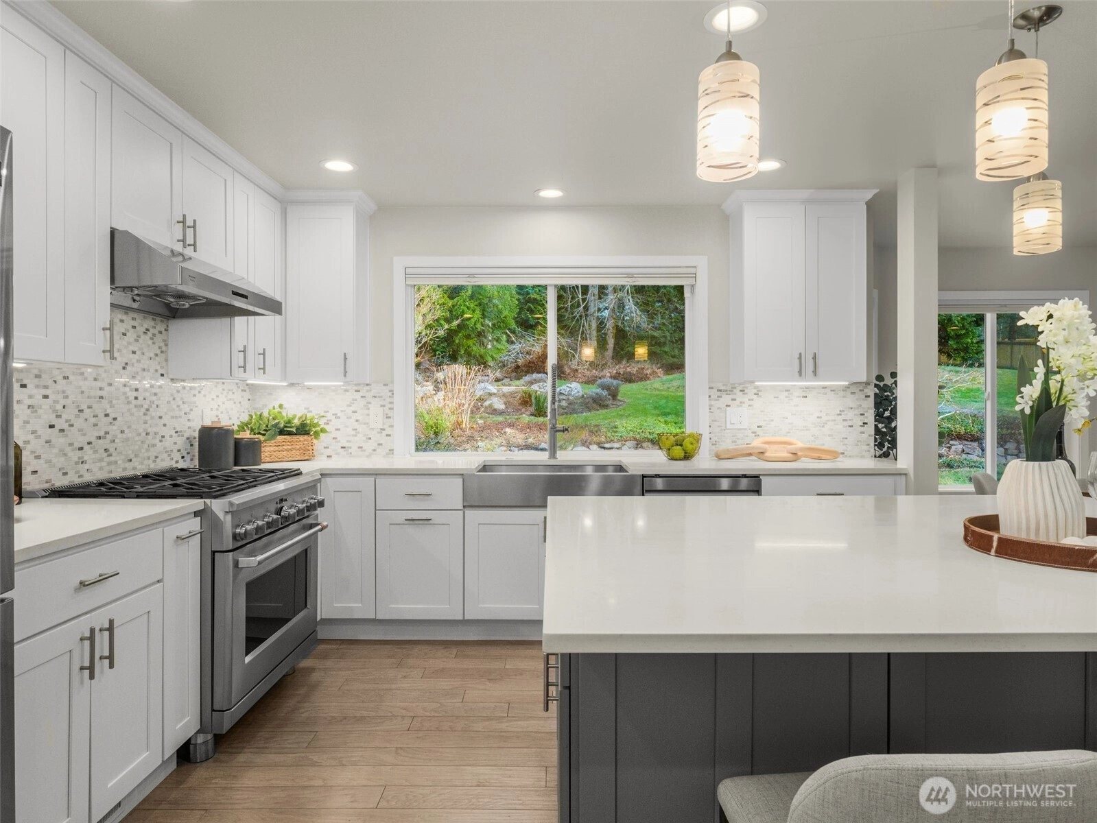 Exquisitely and completely remodeled luxury residence in coveted Westchester Park, set on a remarkably private and sun-filled .80-acre cul-de-sac estate. Surrounded by evergreens, this home offers a rare combination of privacy, serenity, and refined modern living. A grand entry introduces soaring ceilings, elegant millwork, and abundant natural light. Multiple living areas provide comfort and sophistication, including beautifully updated fireplaces and seamless garden views. The chef’s kitchen features an oversized island with seating, quartz counters, custom cabinetry, stainless appliances, designer lighting, and effortless flow into the family room—ideal for entertaining and everyday living. Formal dining with tray ceilings and wainscoting adds timeless elegance, while a main-level den with adjacent 3/4 bath offers flexibility for guests or home office use. Upstairs hosts four generously sized bedrooms, including a tranquil primary suite overlooking lush grounds, complete with a spa-inspired five-piece bath featuring a freestanding soaking tub, oversized walk-in shower, and dual vanity. A sunlit bonus room provides versatile space for media, play, or relaxation. Step outside to a true park-like retreat with lawns, mature landscaping, expansive patios, organic raised garden beds, fruit trees, lilies, berry bushes, and a charming chicken coop. Central A/C. Newer Presidential roof and siding. Spacious 3-car garage and expansive driveway. Pre-inspected. Truly move-in ready.