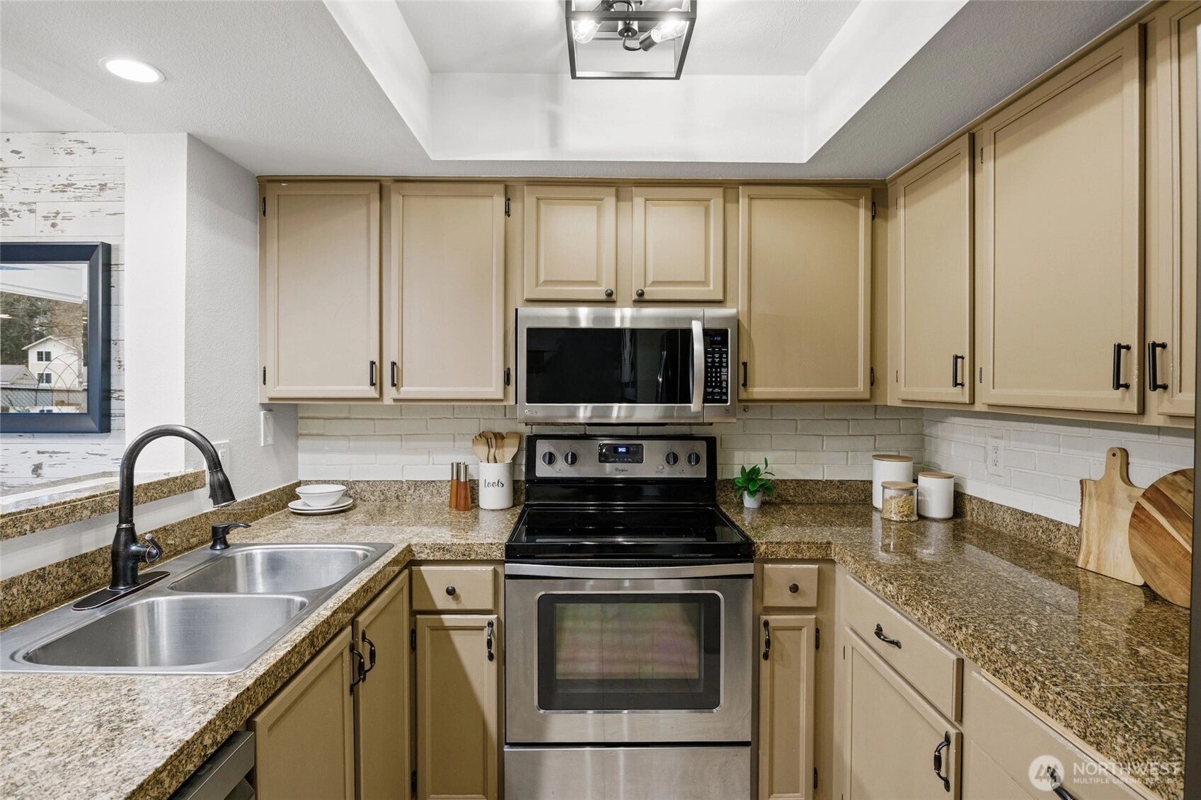 Welcome to this beautiful ground-floor condo in the highly desirable Totem Lake neighborhood. Enjoy effortless, no-stairs living and your own private backyard in a home that perfectly balances style and convenience. Many updates in 2025 including fresh paint, new flooring, and a modern kitchen with stainless steel appliances. The open-concept layout flows seamlessly from the kitchen to the living area—ideal for entertaining or relaxing. The primary suite includes a private en-suite bathroom, while a second bedroom and full bath are conveniently located down the hall. With ample storage, thoughtful upgrades, and a prime location just minutes from Totem Lake Village shopping and I-405, this condo offers modern living with ease and comfort.