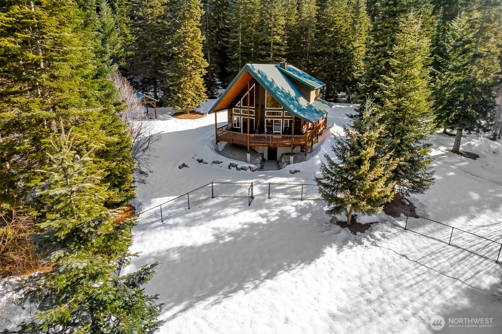 Tucked away on 2.5 secluded acres, this crafted mountain cabin offers privacy, quality & a true Pacific Northwest setting. Custom built by Rumann Homes, it backs directly to DNR land, creating a peaceful, protected backdrop & sense of seclusion. Inside, the home features hardwood floors, quartz countertops, rustic alder cabinetry & solid alder wood doors. The open living area is anchored by stunning blue pine tongue & groove vaulted ceilings, while heated bathroom floors add everyday luxury. The functional layout includes two bedrooms, a loft, generous storage, & a private primary suite. Outdoor living is a highlight. A wrap-around deck is complemented by concrete/paved walkways that frame the cabin, with river rock landscaping set over fabric for clean lines and low-maintenance living (firewise). Thoughtfully designed landscape lighting includes concrete/paved path lighting around the cabin & to pavilion, along with uplighting that accentuates several mature trees, creating a warm and inviting evening setting. A custom-built pavilion with flagstone floor & matching metal roof offers space for entertaining, gathering, or relaxing in the mountain environment. The property also includes a fenced dog run & a flat gravel area prepped for a future garage. Located just minutes from Leavenworth and Stevens Pass, this private retreat offers the ideal balance of mountain seclusion and convenient access. Perfect as a full-time residence, weekend escape, or legacy cabin. Sold Turnkey