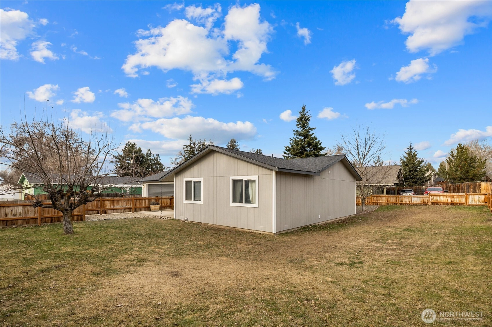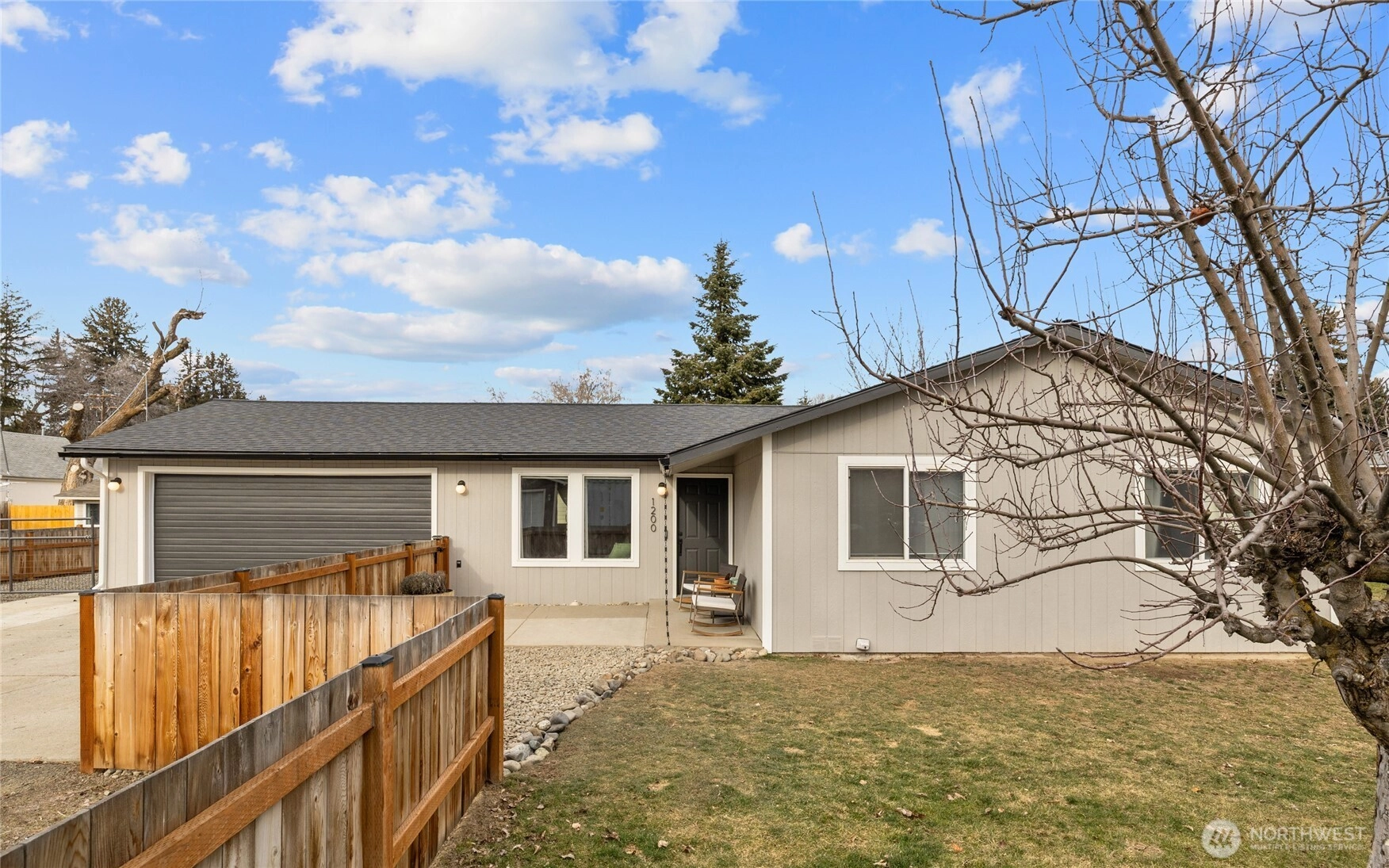Well-located and thoughtfully updated, this 3-bedroom, 1-bath home offers privacy, space, and convenience on an oversized city lot in Ellensburg. Set back off the road on a 11,365 sq ft fully fenced lot, this 1,188 sq ft home feels tucked away while still being close to town amenities.Recent updates include a new roof, recent exterior paint, a refreshed kitchen, newer LVP flooring, and fresh interior paint in select areas, making this home move-in ready. The functional floor plan offers comfortable living spaces filled with natural light.Outdoor features truly set this property apart. Enjoy a private backyard with a garden area, mature landscaping, and a back deck ideal for relaxing or entertaining. The yard is equipped with an in-ground sprinkler system and features mature fruit plants, adding charm and usability to the space.Parking is easy with a 2-car garage plus additional driveway space. The home’s setback location provides a quiet, private feel rarely found this close to town.A great opportunity for buyers seeking a manageable home with outdoor space, key updates already completed, and a location that balances convenience with privacy.