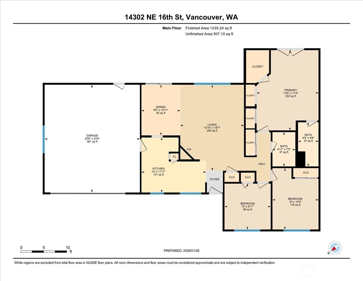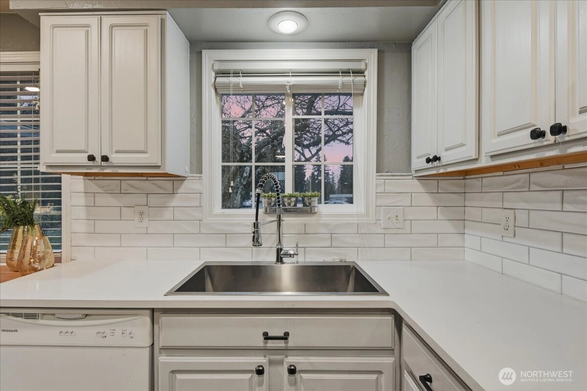 Be the next lucky homeowner to call this stylishly upgraded 3-bed 2-bath ranch your new home! Nestled in east Vancouver's Scarborough Estates, this bright one-level gem with attached 2-car garage is absolutely dialed in, both inside & out! The kitchen features generous butcher block and quartz countertops with cupboard & cabinet space galore. The open living room leads to a dining nook with a view and sliding door to the landscaped backyard and patio. An electric fireplace in the living room ensures that relaxing and cozy vibes are always ready for full effect. Upgrades include LVP through the kitchen, living & dining areas. Both bathrooms have been revamped. The primary bedroom is spacious, with an ensuite bathroom, vaulted ceilings, and a walk-in closet. French doors in the primary offer a calming view and access to the patio & fire pit. The backyard is fenced, and includes a shed and raised bed. Clean, clever landscaping out back create a true extended living space. Location, tasteful upgrades, and main-level living make this darling ranch an incredible opportunity to be at home!