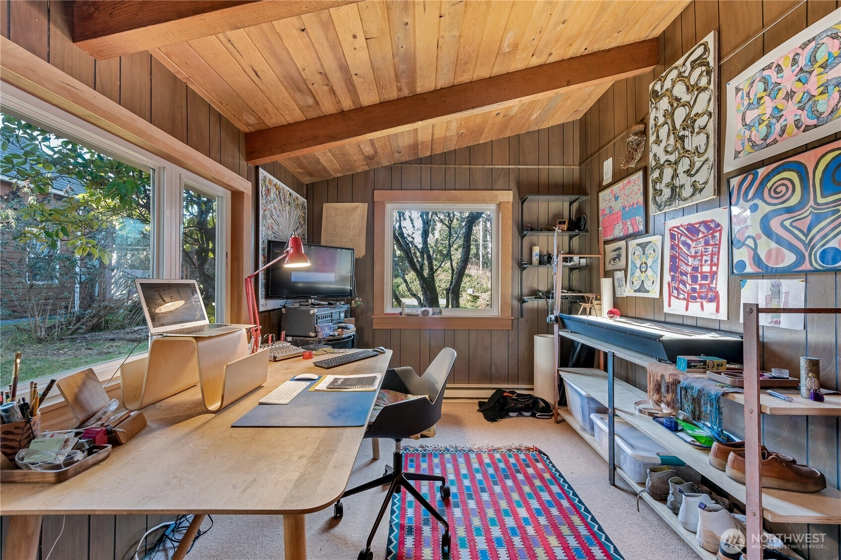 "The Painters House", where Sunset Living meets mid century modern style in the heart of Seaview, Washington. Formerly the residence of famed water color artist, Charles Mulvey. Built in 1970, this 5 bedroom, 3 bath home sits on an extended double lot with an open concept living space that accommodates large gatherings. A new high efficiency German engineered wood stove keeps this home cozy and warm. The primary bedroom and bathroom is upstairs allowing for privacy. Downstairs has the remaining bedrooms, plus 2 bathrooms, one with a soaking tub. There is a large office and spacious den, plus laundry room on the main floor. Another amazing feature is the artist studio/workshop with power, water and a wood stove. The yard boasts a large garden shed with power, plus fruit trees, blueberry bushes, vegetable and mushroom gardens. Walking distance to a pedestrian beach trail, grocery store, historic hotel, galleries and numerous renowned eateries. Come live a beautiful life on Washington's Discovery Coast!