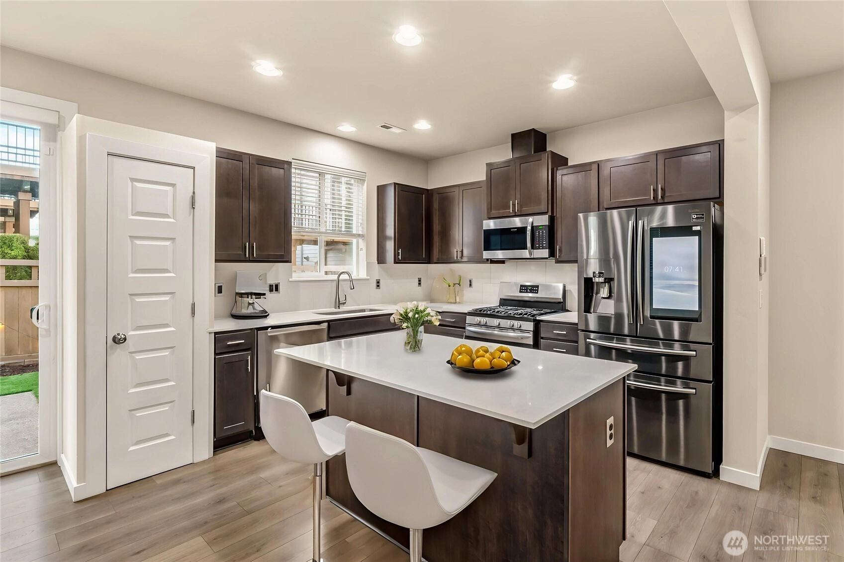 Stunning East-facing 2019 townhome in one of North Bothell's most sought-after - the Central Park community! Whether you are seeking excellent schools, or wanting convenient commuter access, or desiring contemporary comfort in a vibrant community under a million, this home delivers on all fronts. Meticulously maintained, open-concept living with laminate floors throughout, kitchen boasts slab quartz countertops, center island, tile backsplash, stainless steel appliances, and upgraded pantry storage. Upper level offers 3 spacious bedrooms plus versatile Loft ideal for office, play, or media. Luxurious spa-inspired primary suite with expansive walk-in closet. Centralized AC included. Fully fenced backyard provides privacy & security. Zero-maintenance Backyard perfect for entertaining or pets. Premium 2-car garage with epoxy floors & convenient EV charging port—rare find! Future Owners will enjoy the proximity to top-rated Fernwood Elementary and Award winning North-Creek High School, making morning routines stress-free. Neighborhood Big Park + Mins to other parks, trails, shopping, dining, plus easy I-405/Hwy 9 and major commuter routes. Strong rental potential at $3,500+ monthly. Neighboring new construction single-family homes selling in $1.2M+ quickly------Don't miss this exceptional value and rare opportunity to own a like-new move in ready home in Northshore School District. Schedule your private showing today!