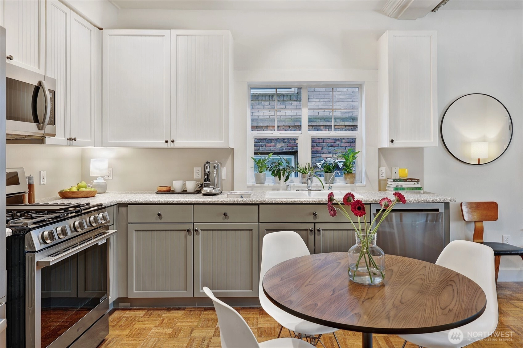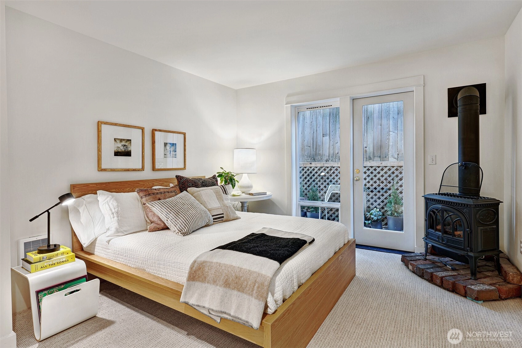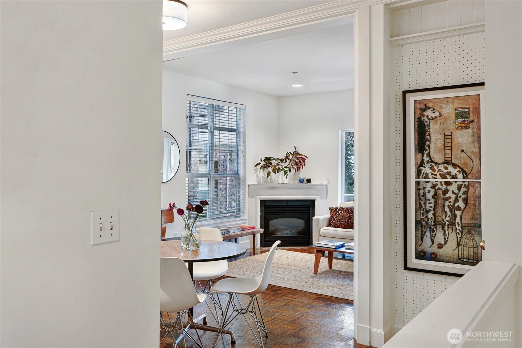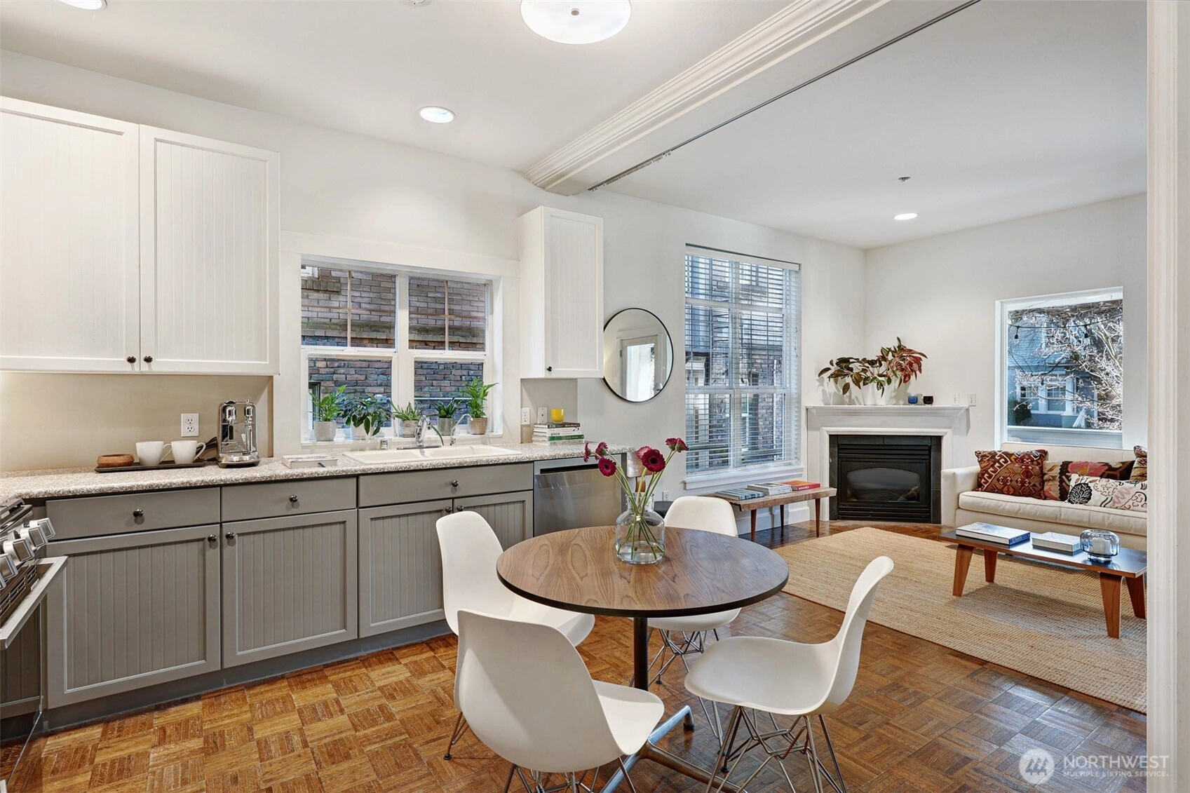 Charming 2-bedroom condo on wonderful Malden Avenue East, just one block from the cafes and shops of vibrant 15th Avenue E on Capitol Hill. Located in a boutique condo complex, Unit B enjoys a welcoming front porch deck/entry to home. Fresh and fun interiors including all new stainless kitchen appliances and new washer/dryer. Hardwood floors on main, gas fireplace in living room and free-standing gas cast-iron fireplace in primary bedroom. Lower level has lovely new carpet, two bedrooms both with access to back patio, good closet space in bedrooms and extra storage in lower hall. This unit has TWO secured parking spaces!! Spacious common deck off the back door – leads to carport. Minutes to both downtown Seattle and University of Washington. Water/sewer/garbage/gas included in monthly HOD.