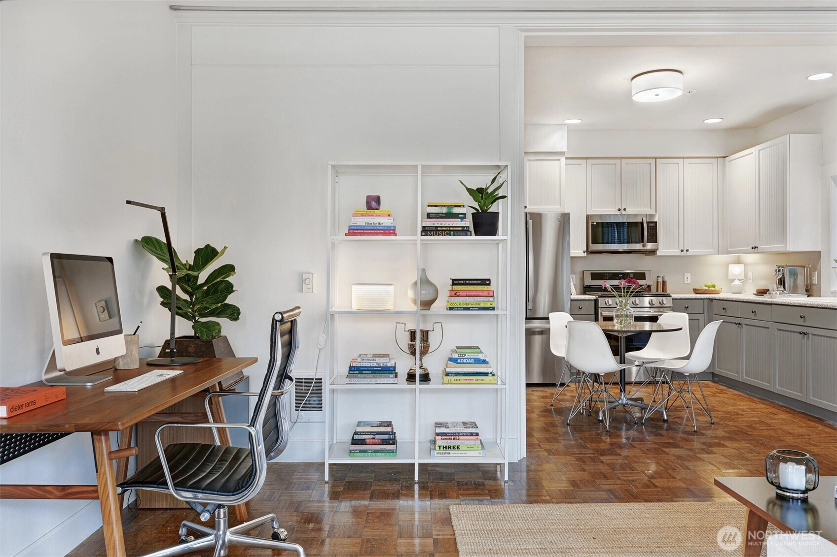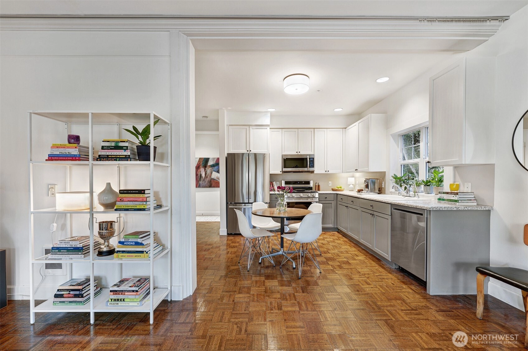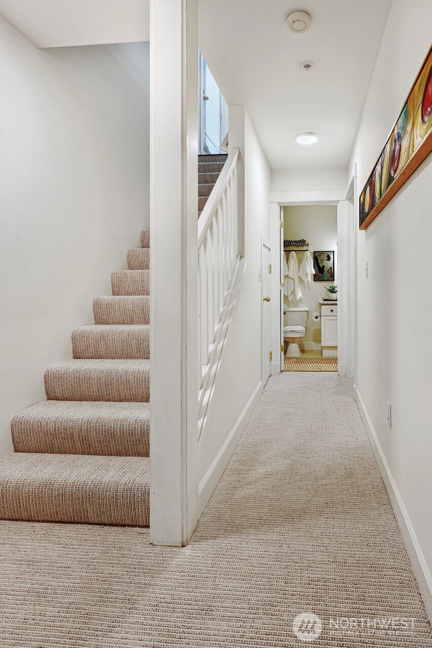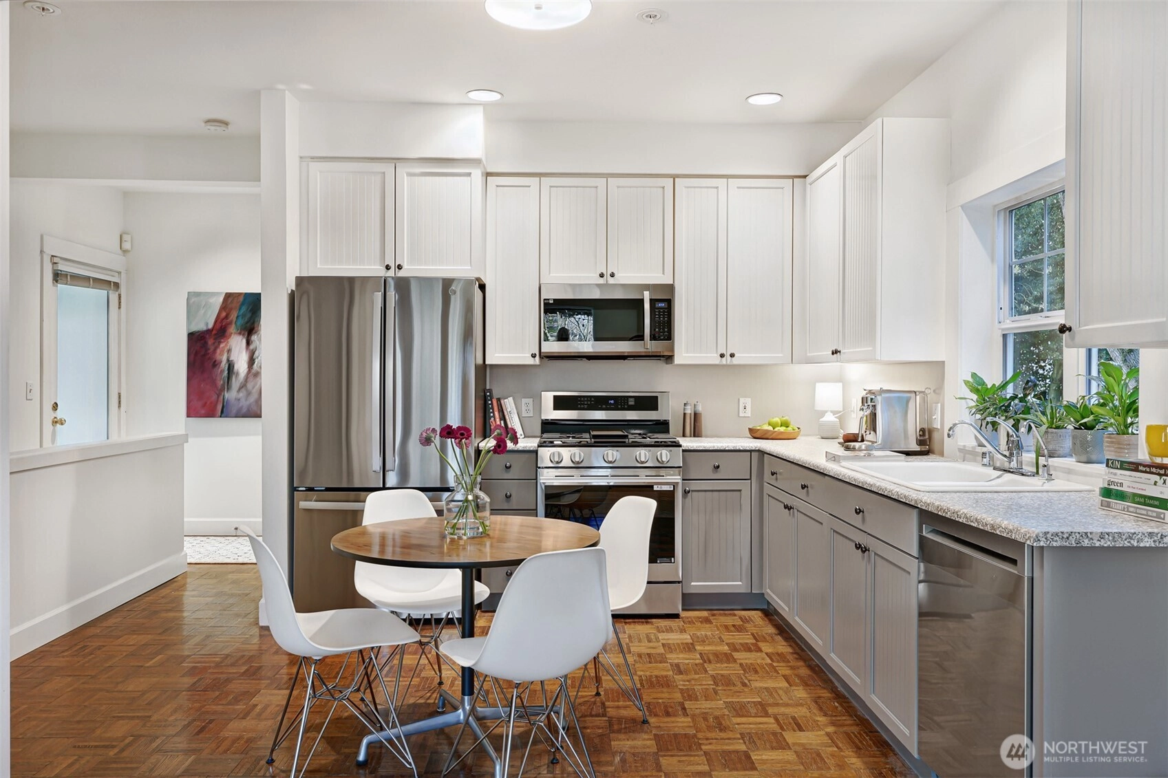 Charming 2-bedroom condo on wonderful Malden Avenue East, just one block from the cafes and shops of vibrant 15th Avenue E on Capitol Hill. Located in a boutique condo complex, Unit B enjoys a welcoming front porch deck/entry to home. Fresh and fun interiors including all new stainless kitchen appliances and new washer/dryer. Hardwood floors on main, gas fireplace in living room and free-standing gas cast-iron fireplace in primary bedroom. Lower level has lovely new carpet, two bedrooms both with access to back patio, good closet space in bedrooms and extra storage in lower hall. This unit has TWO secured parking spaces!! Spacious common deck off the back door – leads to carport. Minutes to both downtown Seattle and University of Washington. Water/sewer/garbage/gas included in monthly HOD.
