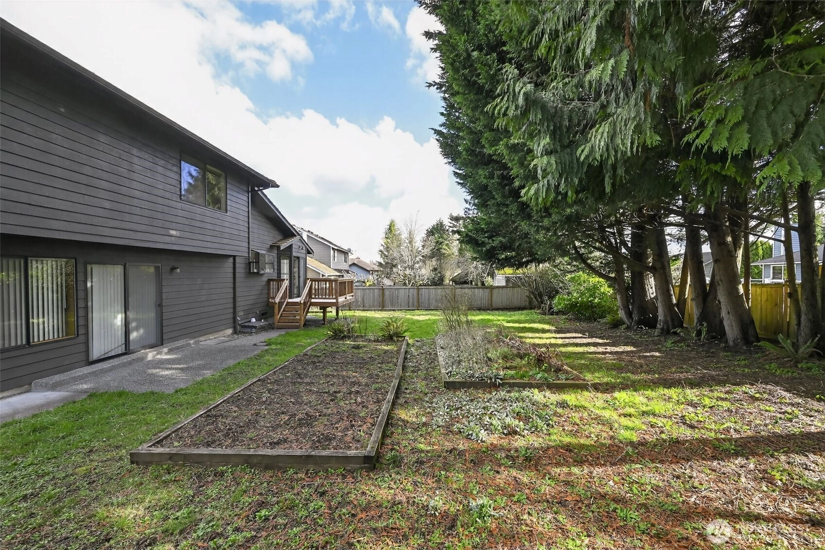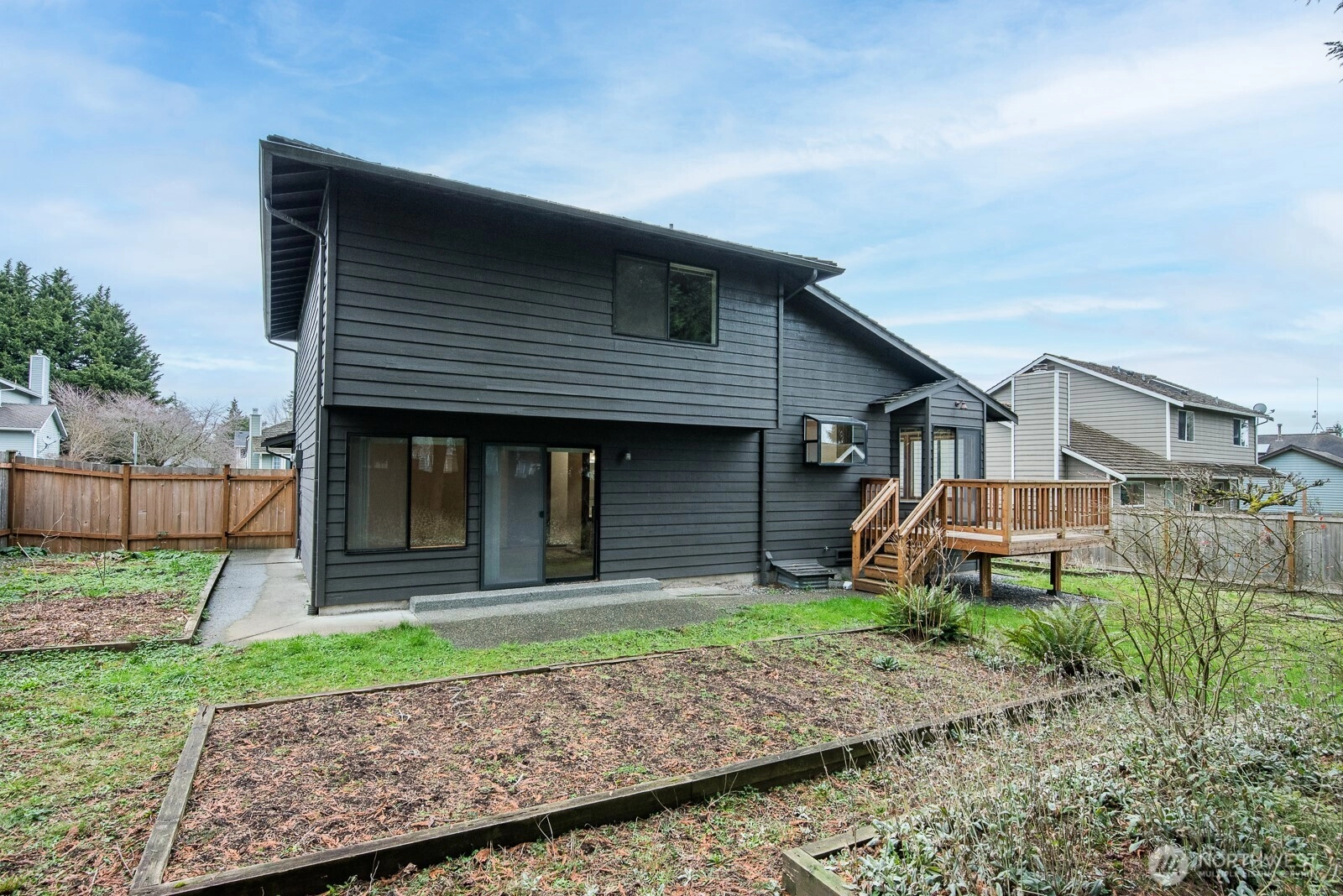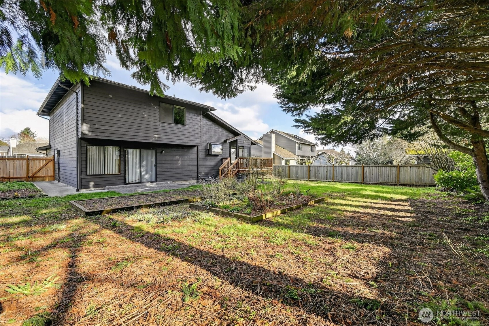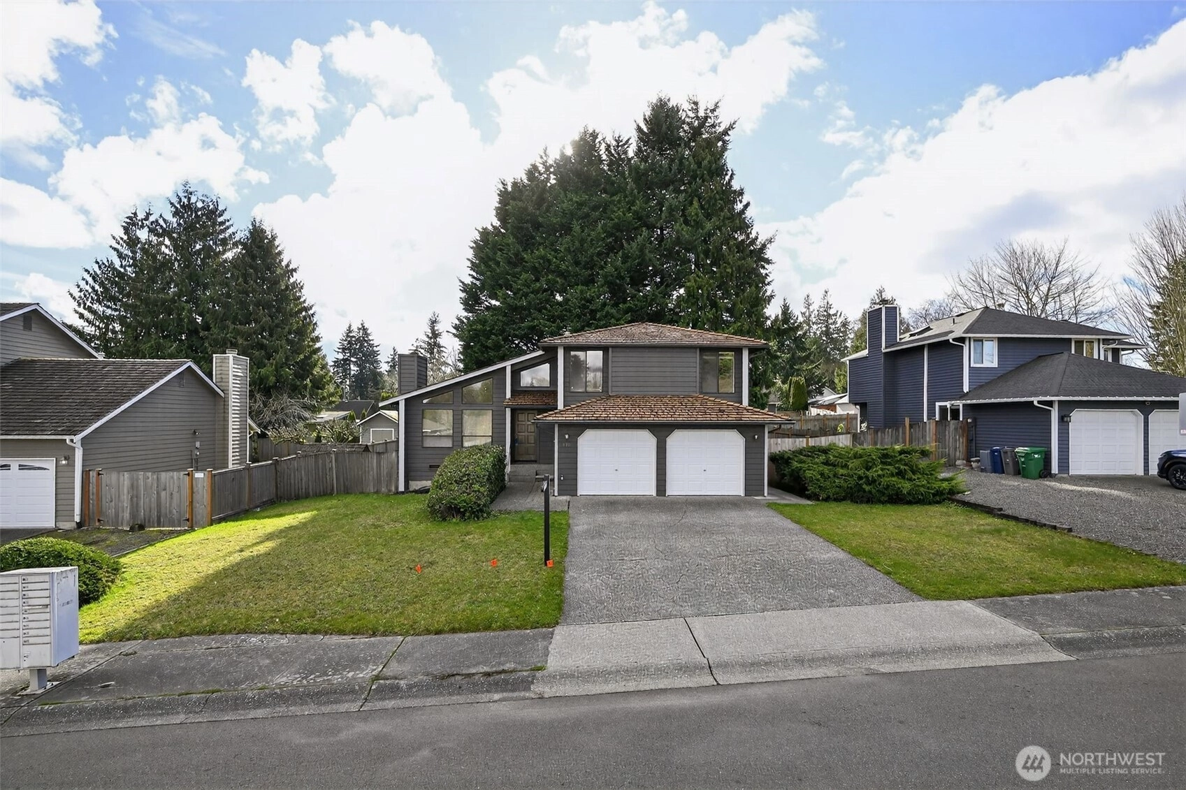 Great neighborhood and location! Solid home built in 1988. Huge lot and fully fenced with gate. Newer cedar deck, carpet and interior paint. Nice layout with open floor design & vaulted ceilings. Kitchen has plenty of cabinet space and garden window. Living area with wood fireplace opens to dining room with slider. Lower level has a half bath, laundry room and additional living space. With another slider to access back yard and patio. Upstairs are 3 bedrooms, including primary with its own full bath. Another full bath here too. 2 car garage with plenty of work space. Close to I-5, Millcreek town center and Martha Lake.