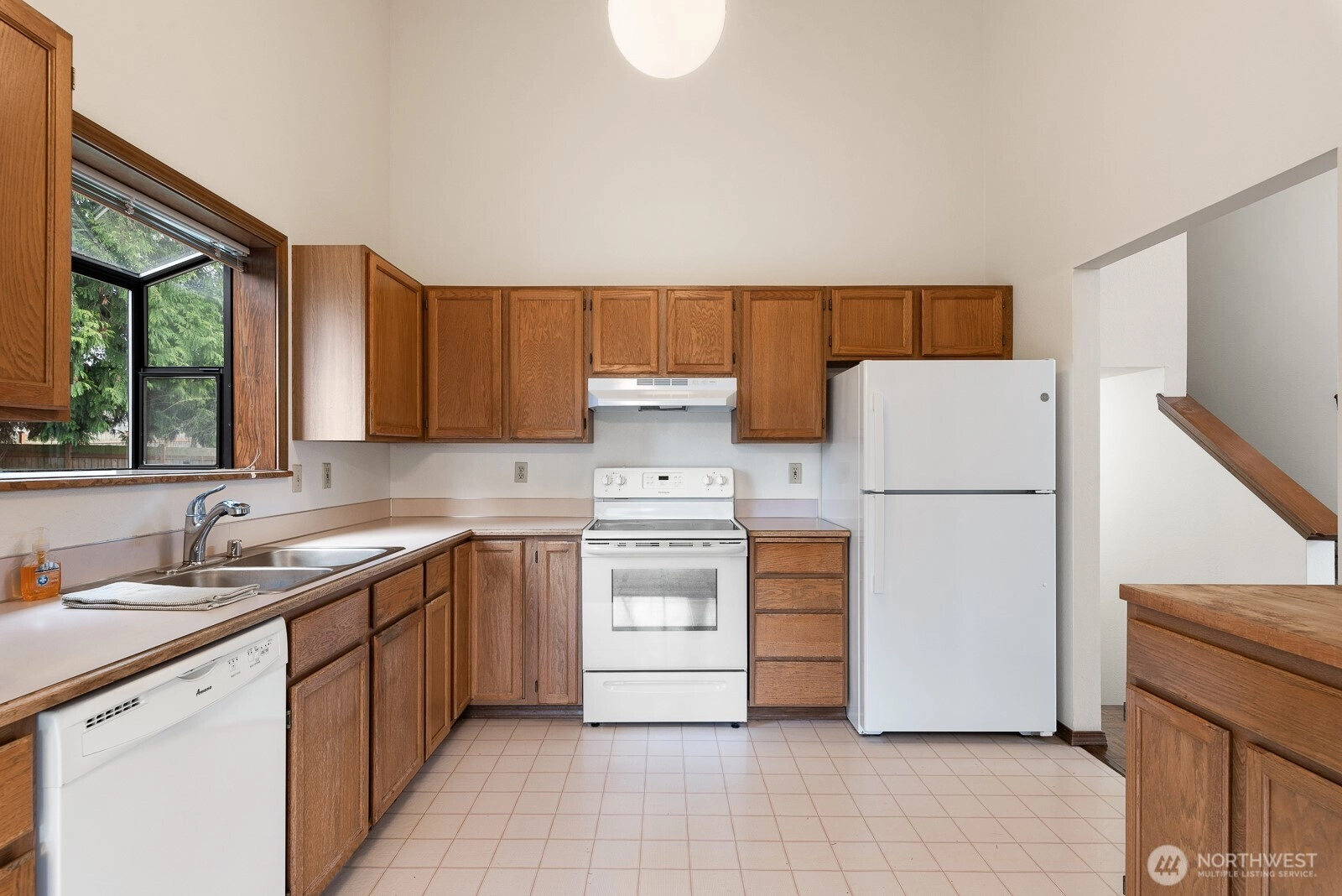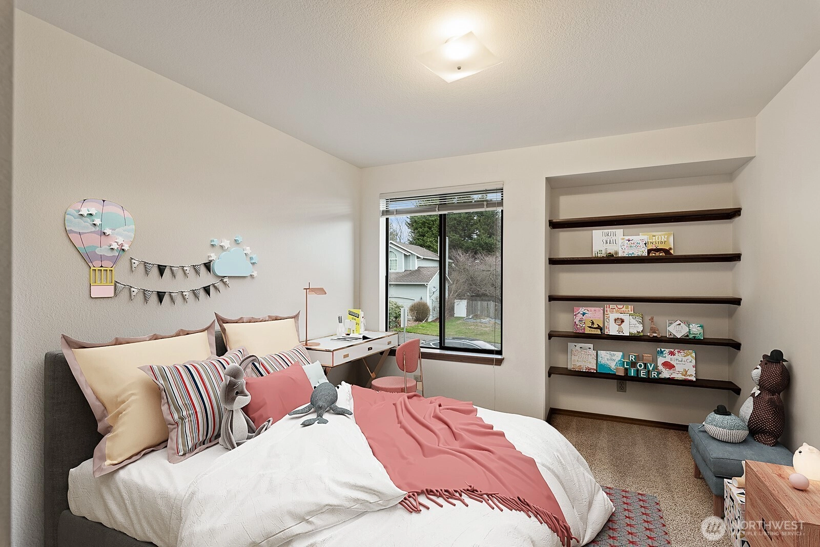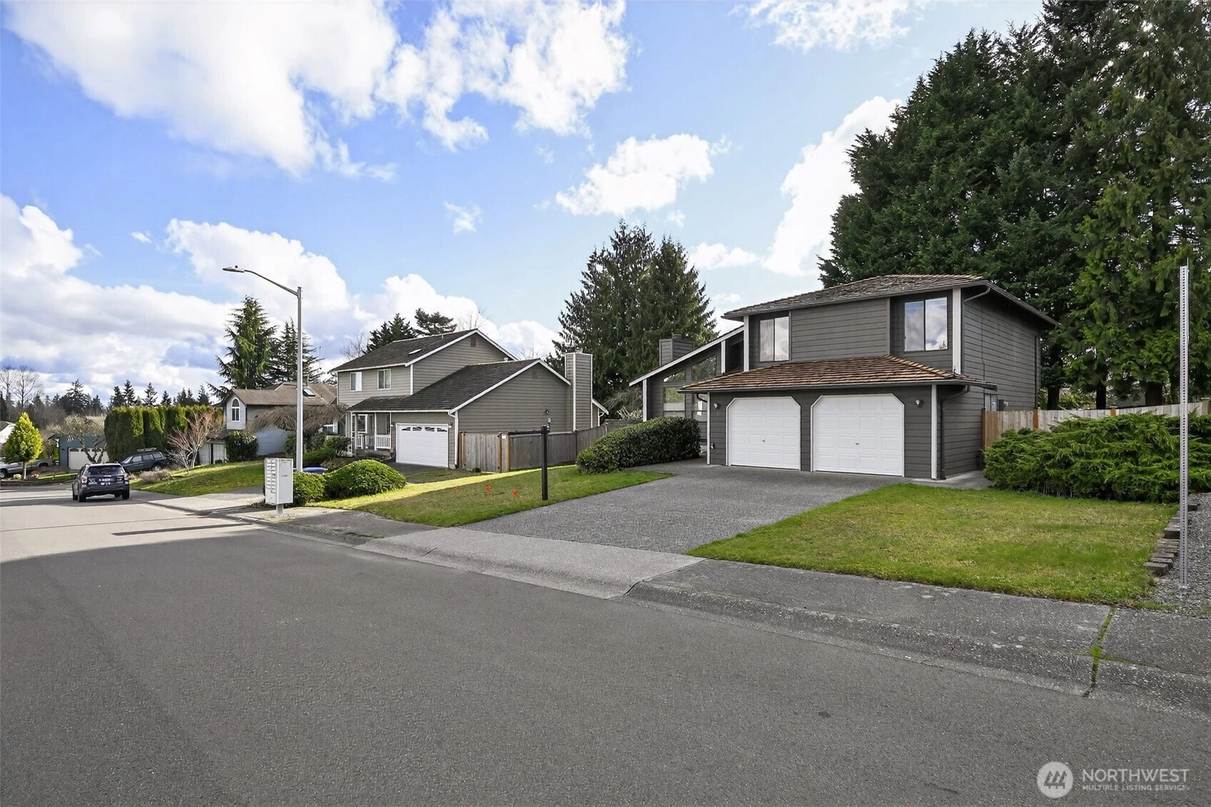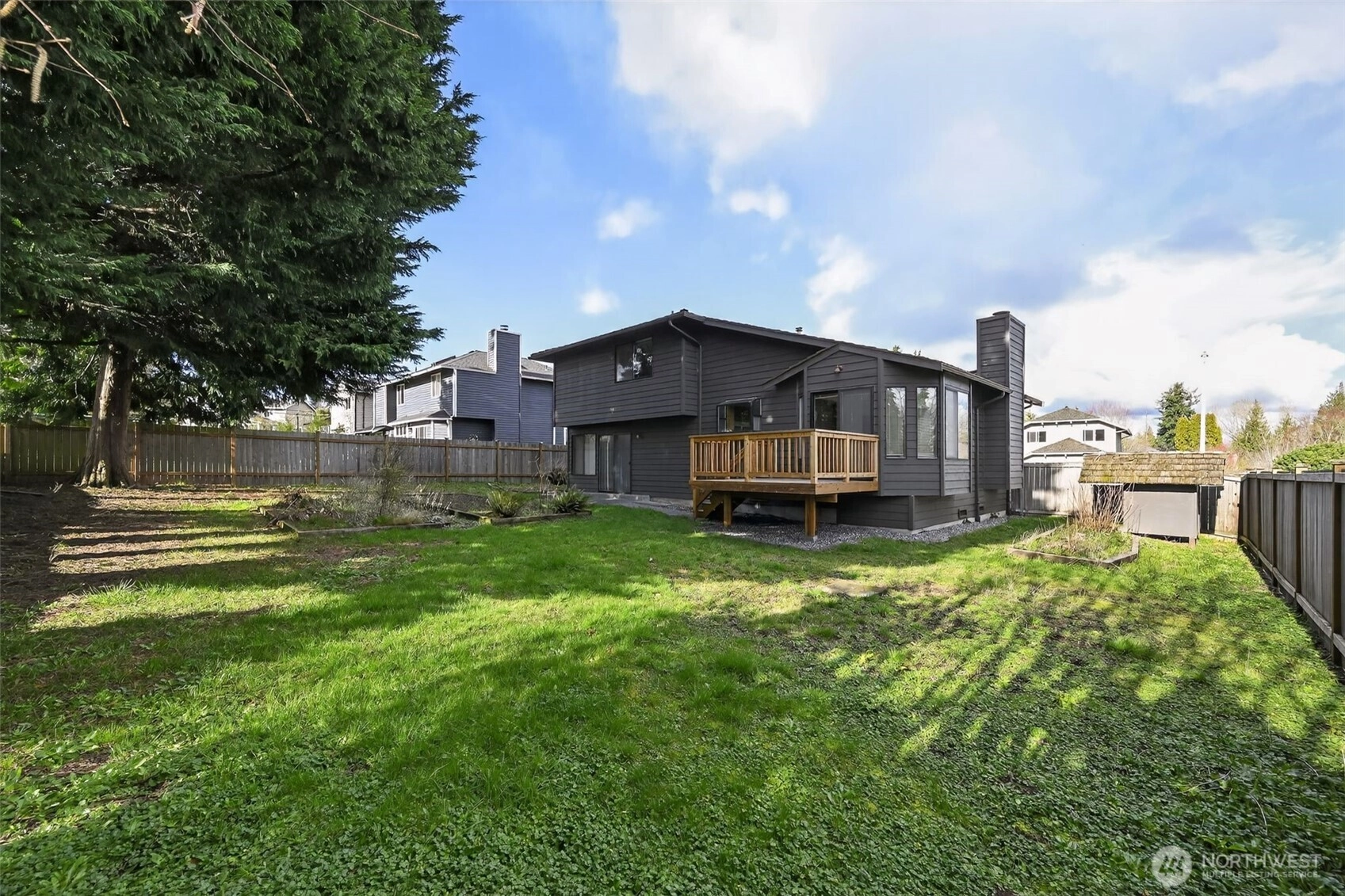 Great neighborhood and location! Solid home built in 1988. Huge lot and fully fenced with gate. Newer cedar deck, carpet and interior paint. Nice layout with open floor design & vaulted ceilings. Kitchen has plenty of cabinet space and garden window. Living area with wood fireplace opens to dining room with slider. Lower level has a half bath, laundry room and additional living space. With another slider to access back yard and patio. Upstairs are 3 bedrooms, including primary with its own full bath. Another full bath here too. 2 car garage with plenty of work space. Close to I-5, Millcreek town center and Martha Lake.