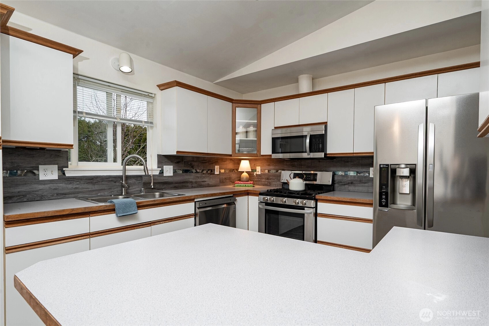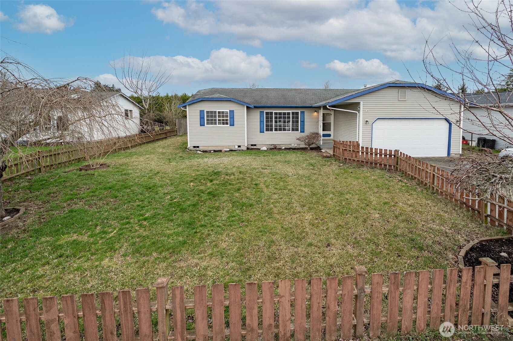 Mount Baker views from this 3 bedroom, 2 bath single story home with 1,380 square feet. Open floor plan with vaulted ceilings. Luxury vinyl plank and tile flooring throughout. Kitchen includes stainless steel appliances. Primary bedroom has a private bath and generous walk-in closet. Two additional bedrooms and a full second bath. Large, flat, fully fenced lot suitable for outdoor use and entertaining. Located close to schools, parks, and local amenities.
