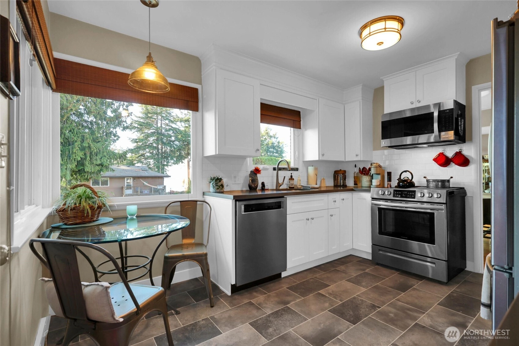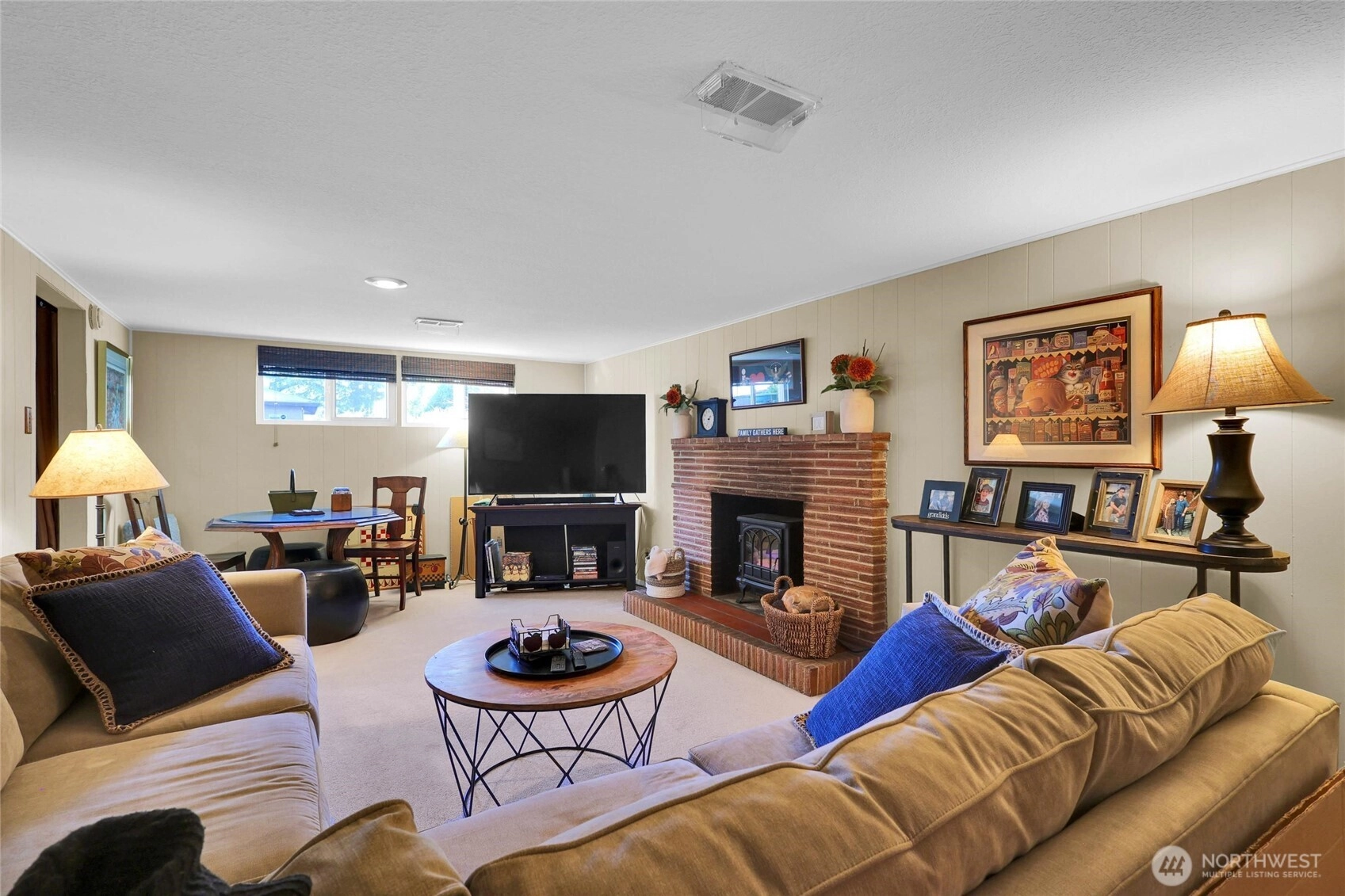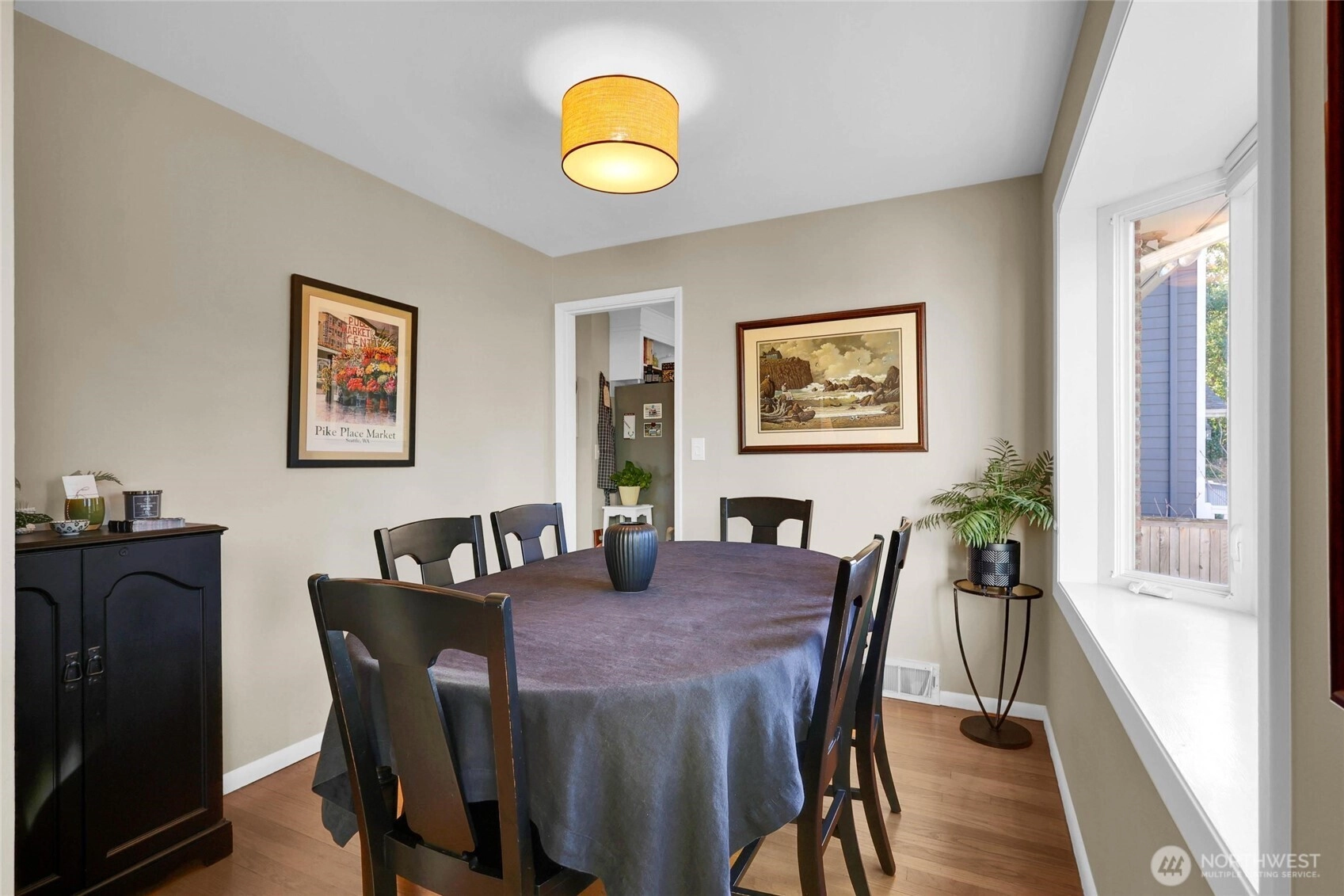 Excellent water view home in Richmond Beach. Three bedrooms, one and three quarter baths. Living room with gas fireplace for those CHILLY NW nights! Large patio for entertaining and a large yard for fun and games. Large downstairs family room with wood burning fireplace. Enjoy water views and sunsets from the living room, dining room and kitchen. New triple pane window were installed last year on the westside of the house. All this and a 5 minute walk to Richmond Beach Park.